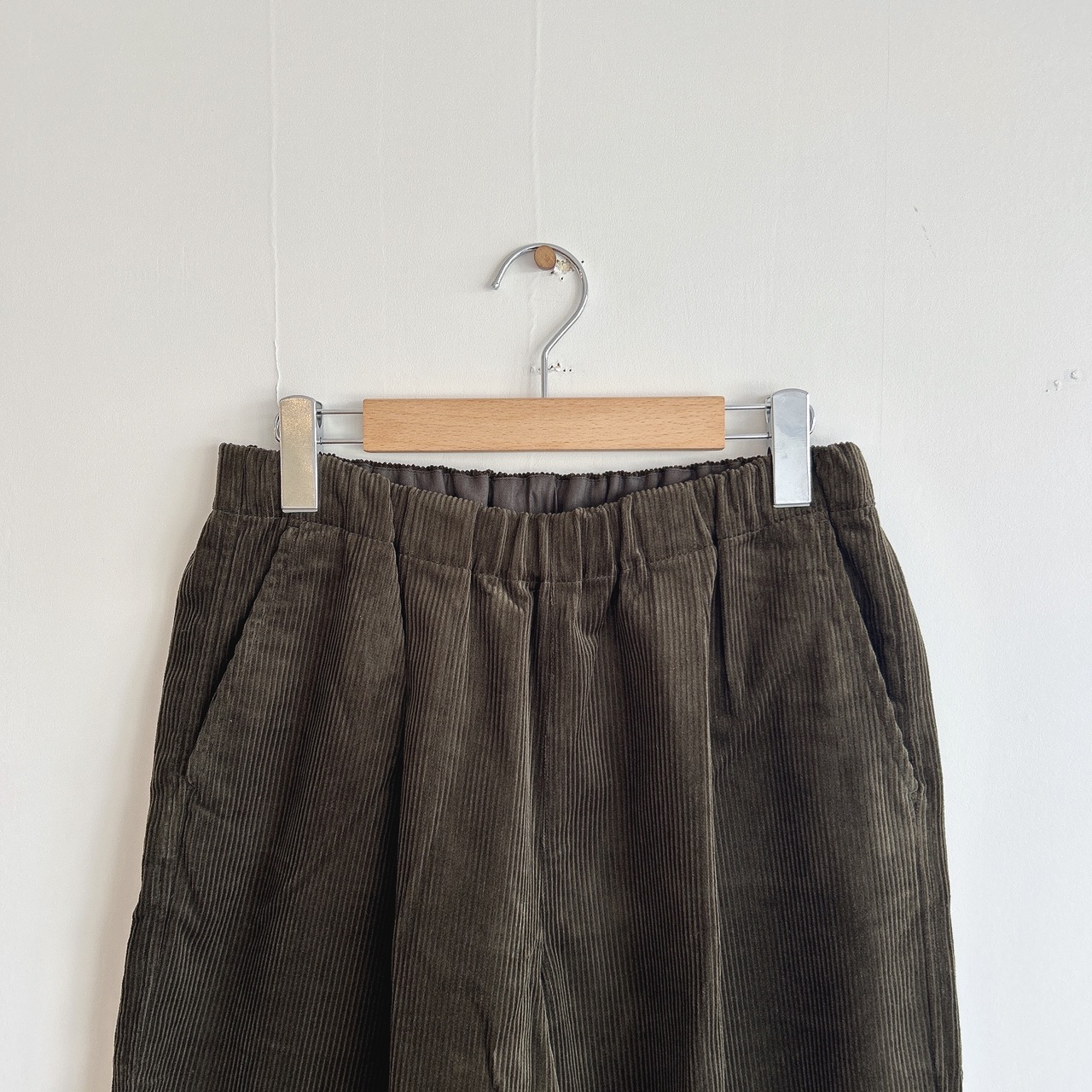 ウエストはイージーパンツ仕様なのでリラックスして穿いていただけ、シルエットもバランスの取れた落ち着いた雰囲気のワイドパンツかと思います。
