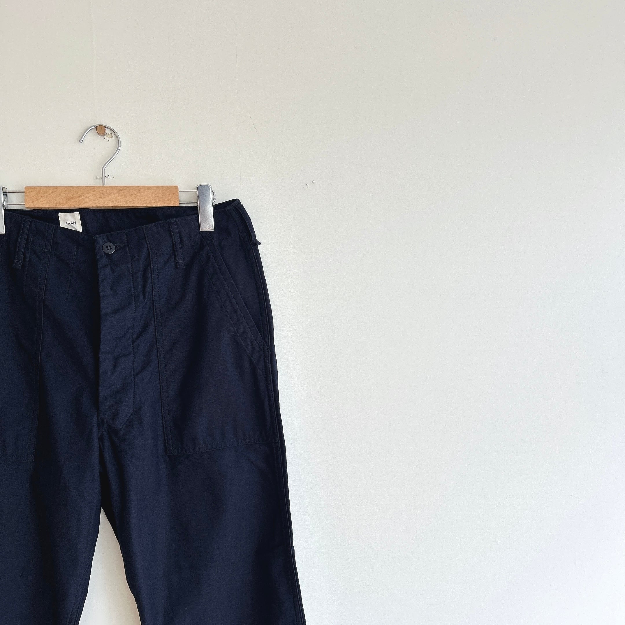 フロントとバックの大きめなポケットにフロントのボタンフライ、ウエストの調整としてサイドタブが付いた仕様です。