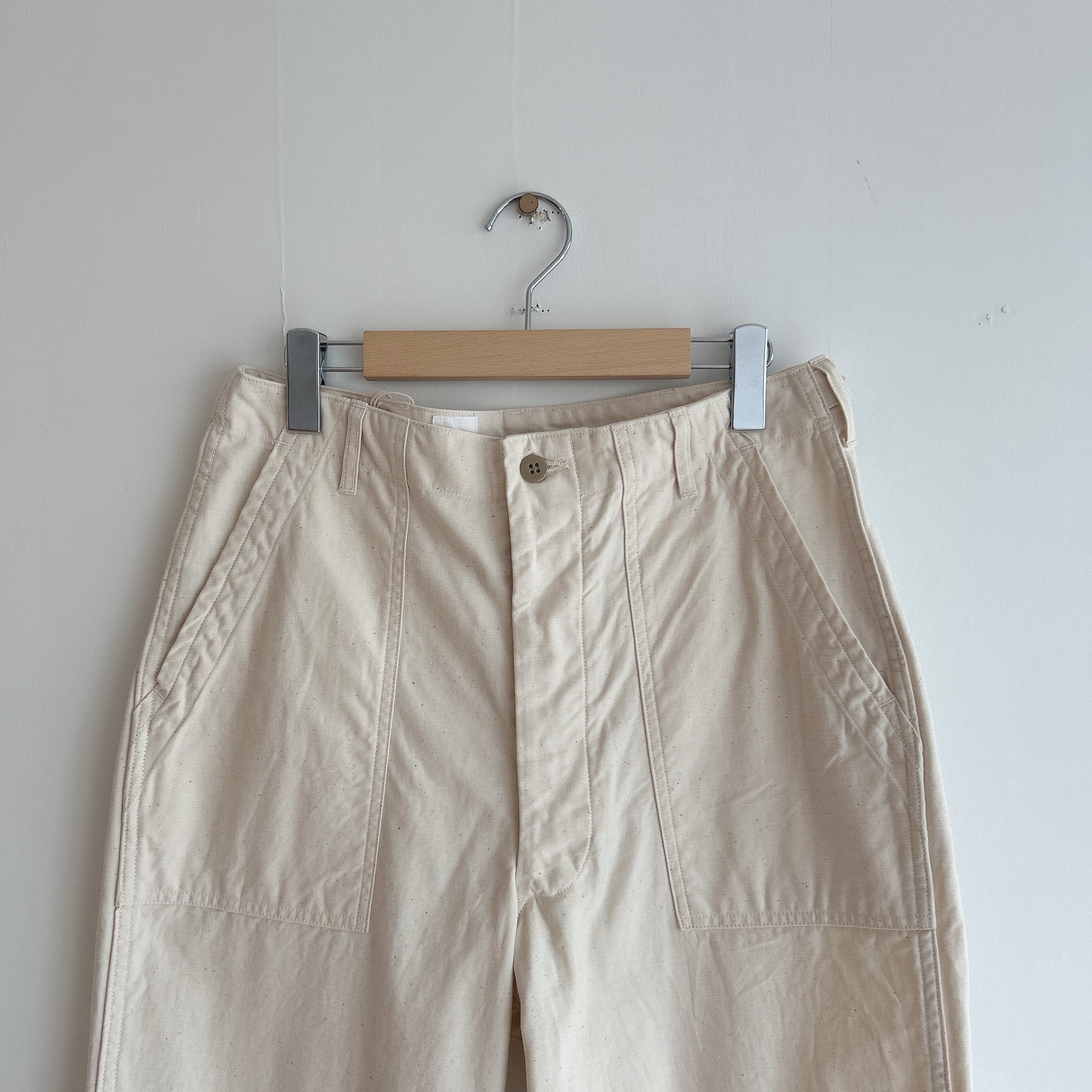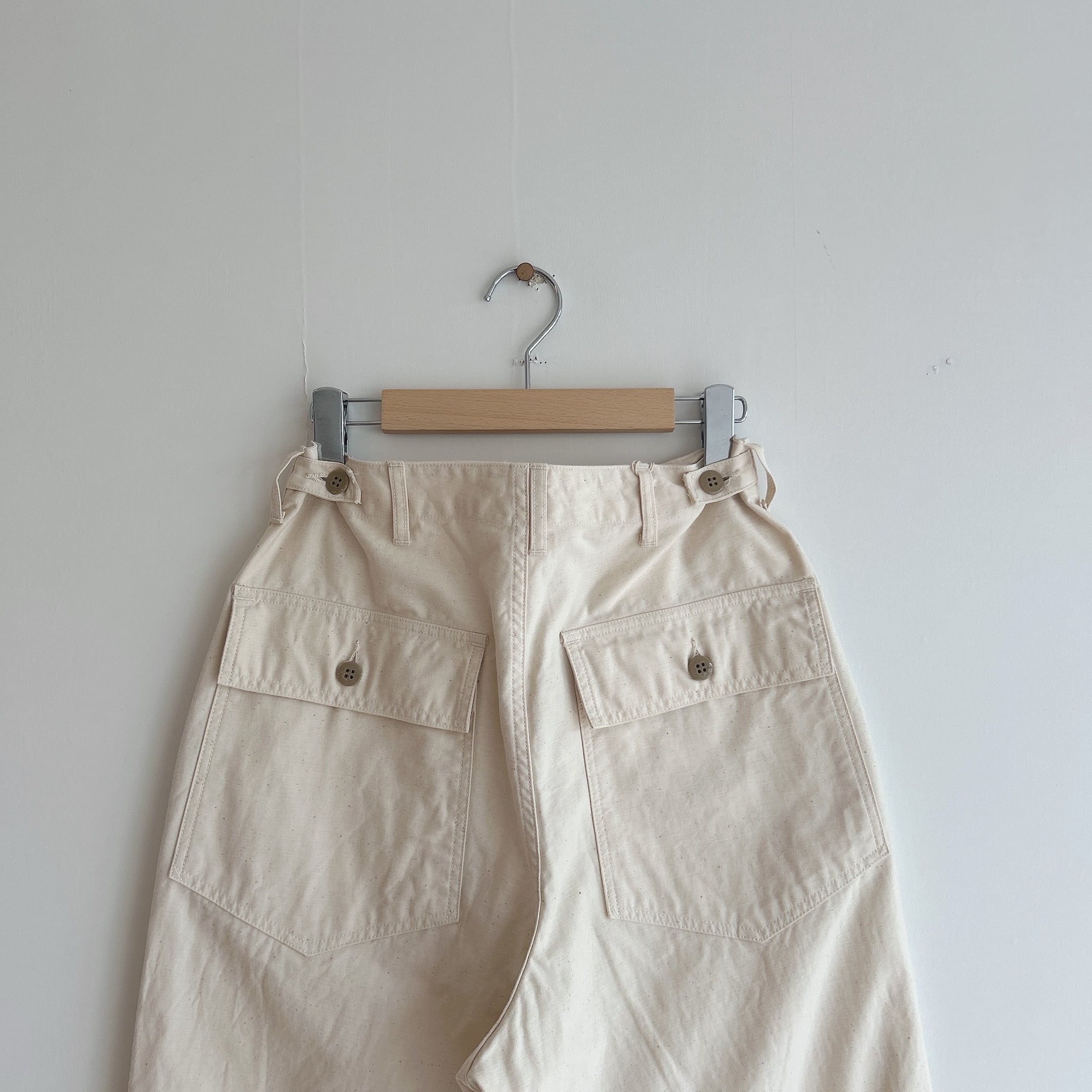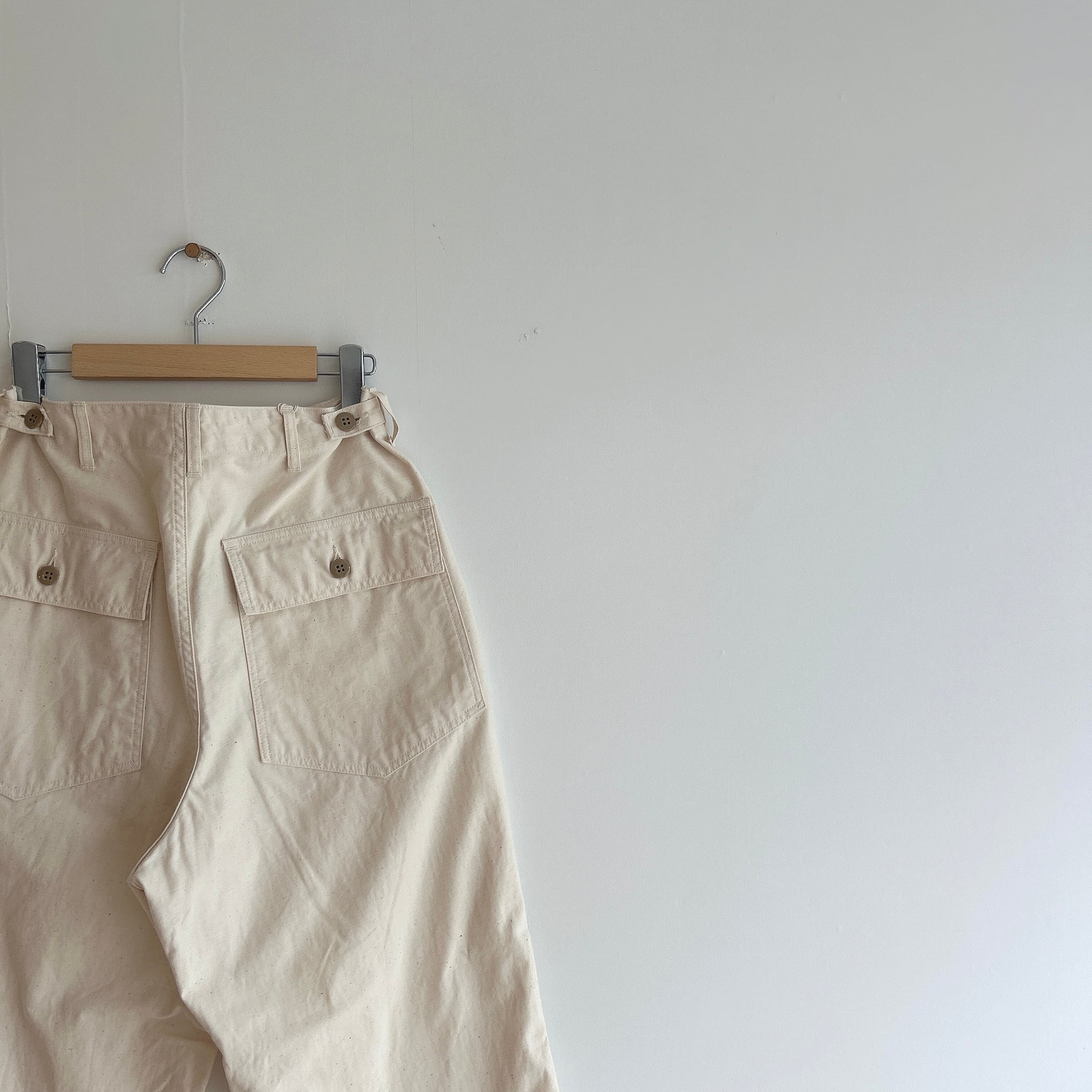 今季のファティーグのECRUは例年入荷しているタイプとは違い、ルーズフィットなシルエットに。ルーズとはいってもバランスの取れた型に仕上がっています。
