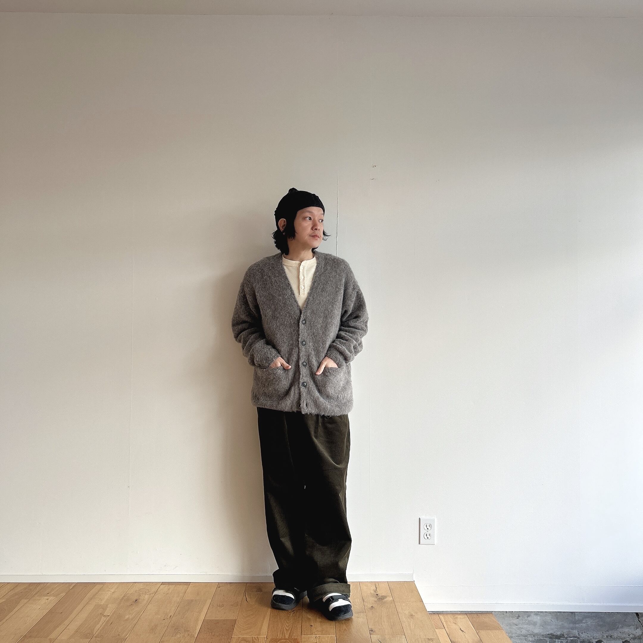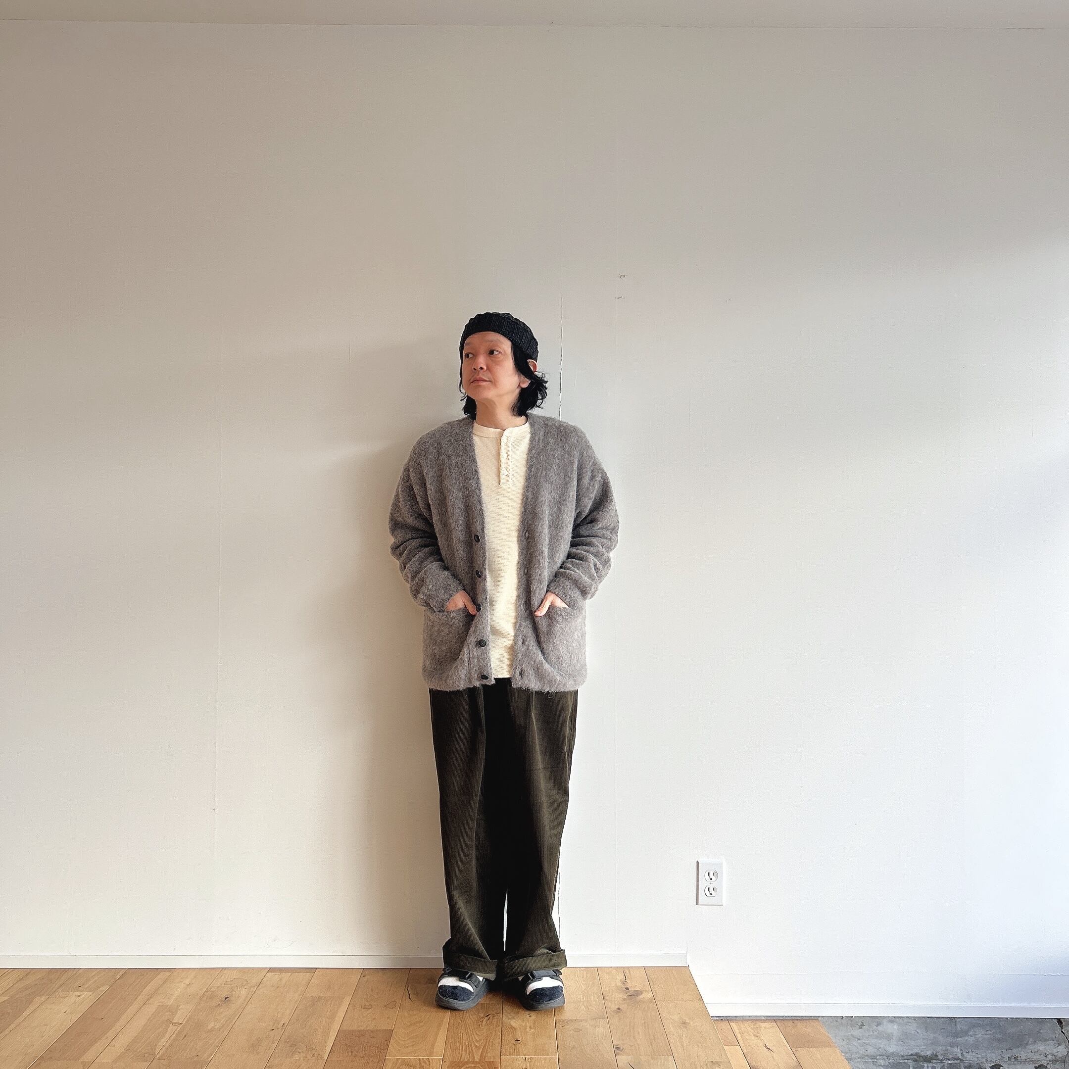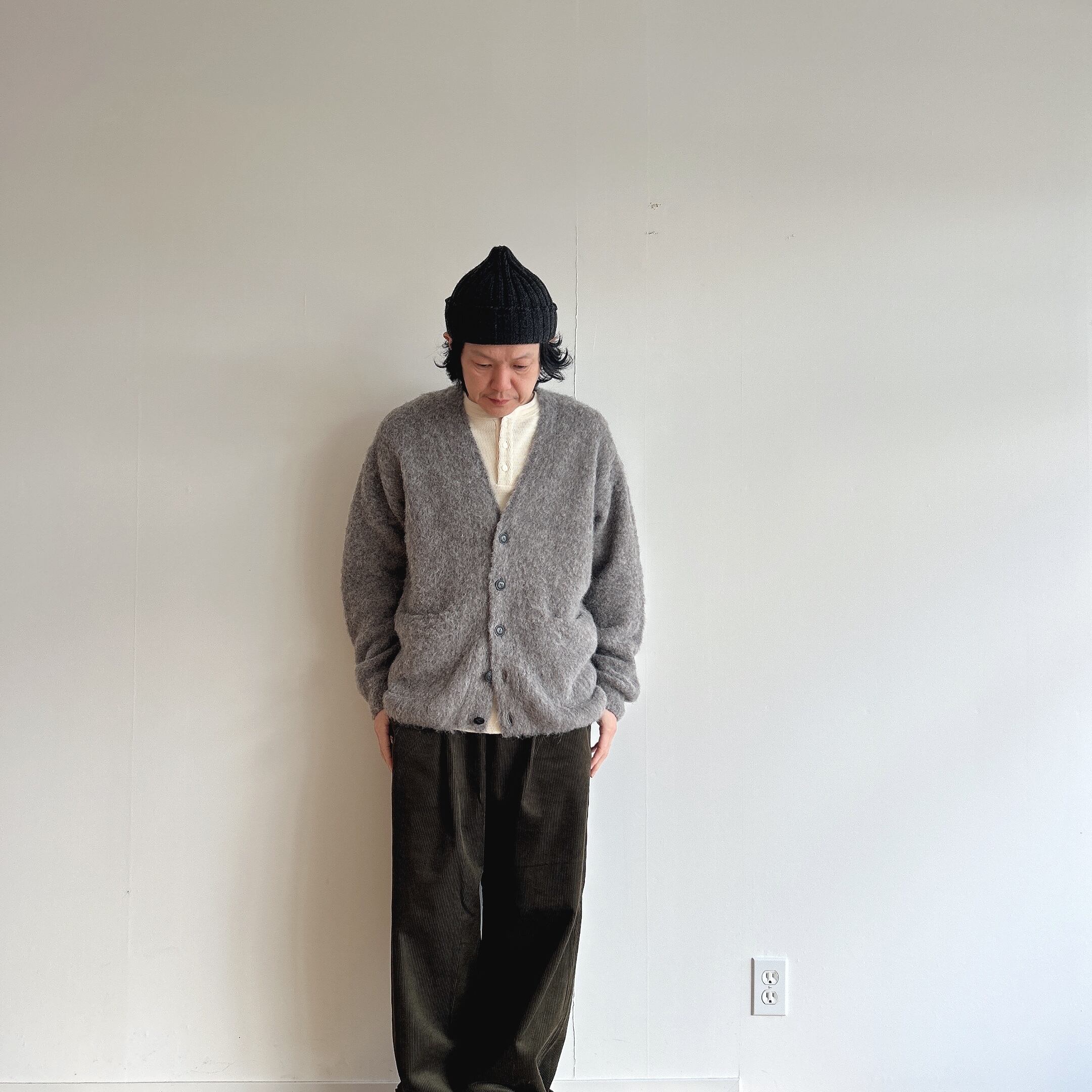 触れていただくと分かる生地の上質さ、軽さ、暖かさ、特別感のあるカーディガンです。