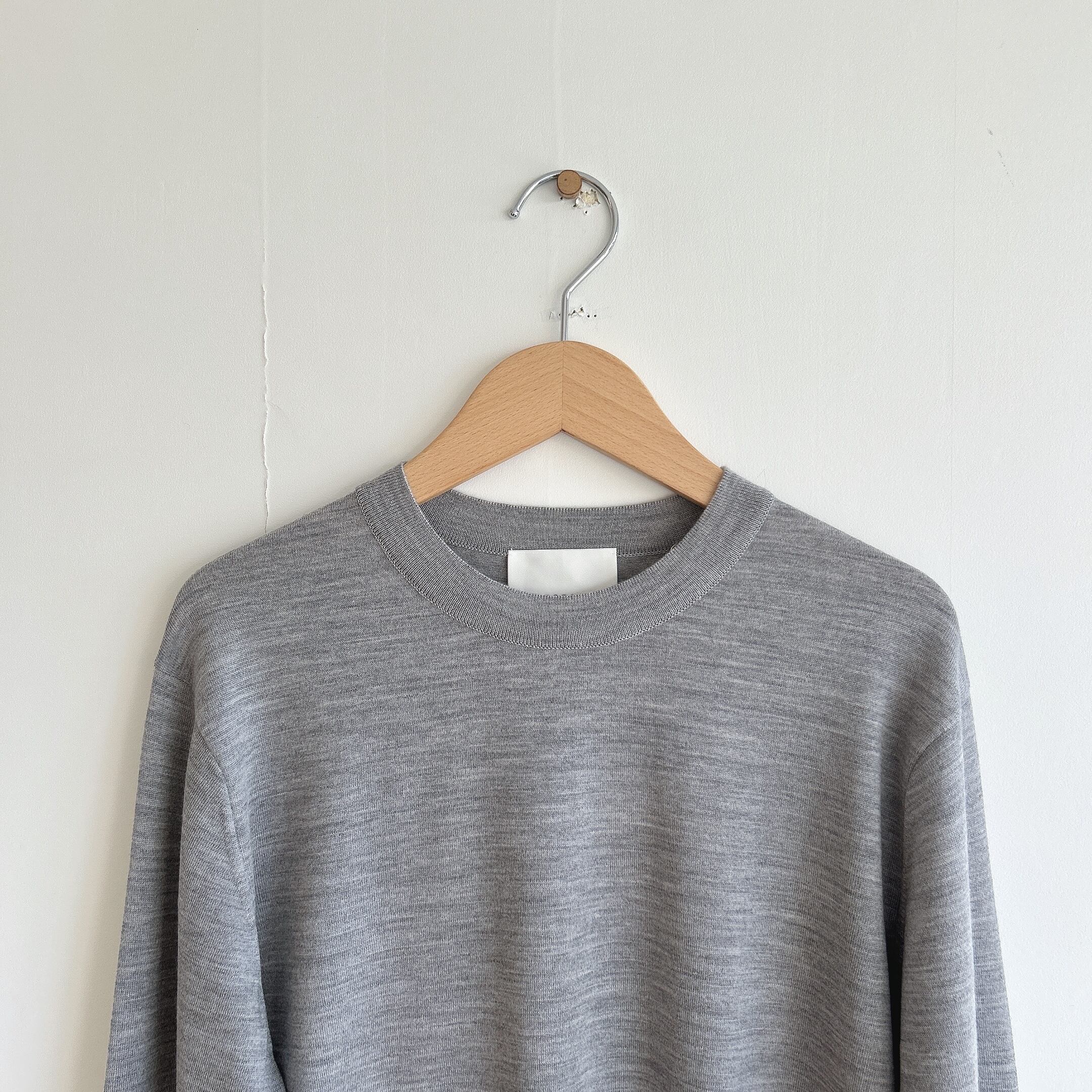 世界に数台しかないドイツ・シェラー社製の編み機で編み立てられたフルファッションニットのクルーネックセーター。
