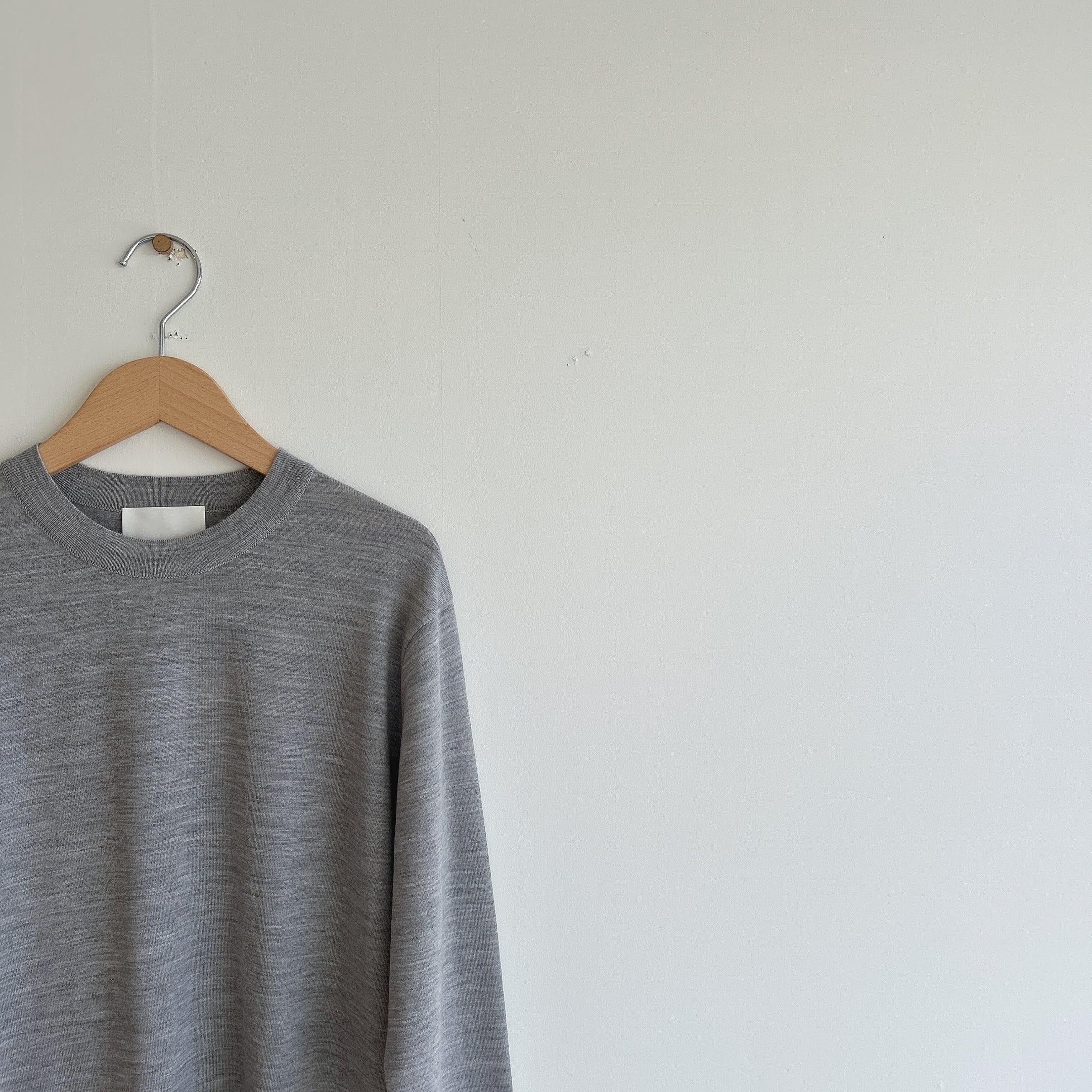 紡績の前段階で染色しているので、様々な濃淡のグレーカラーが混ざり合い、単色ではない深みのある色味が特徴です。