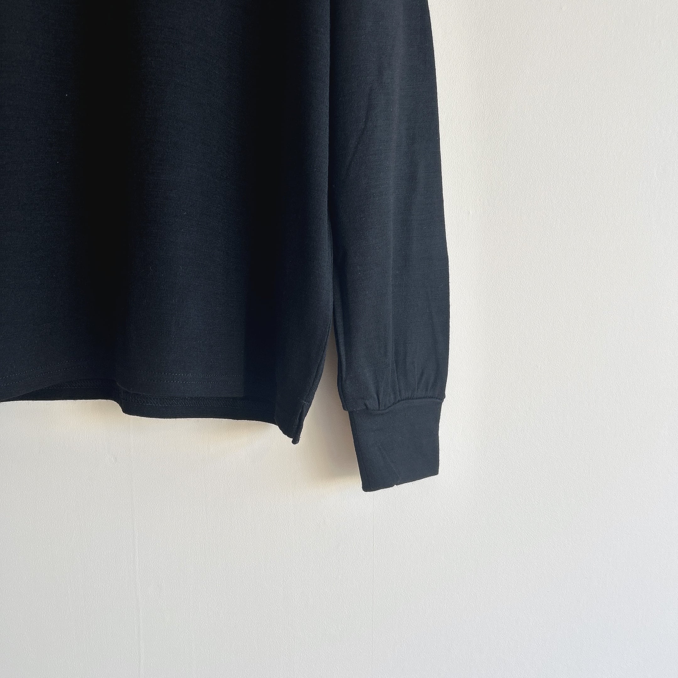 素材にはSuper 100'sというスーパーファインメリノといわれる極細繊維の素材をジャージ生地用に超極細番手に梳いた糸を使用して編み上げたスペシャルなウールインナーカットソー。