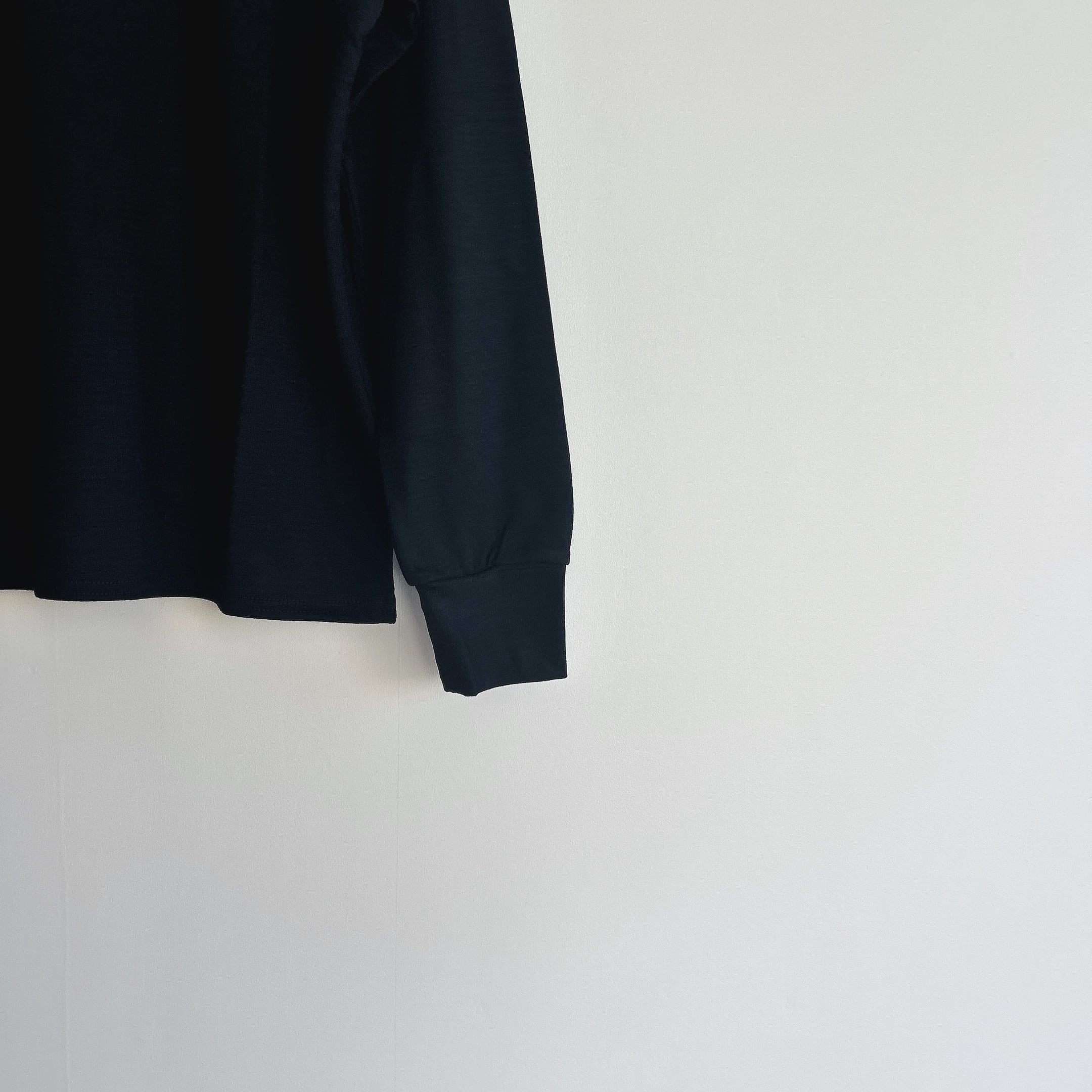 素材にはSuper 120'sというスーパーエクストラファインメリノといわれる超極細繊維の素材をジャージ生地用に超極細番手に梳いた糸を使用して編み上げたスペシャルなウールインナーカットソー。