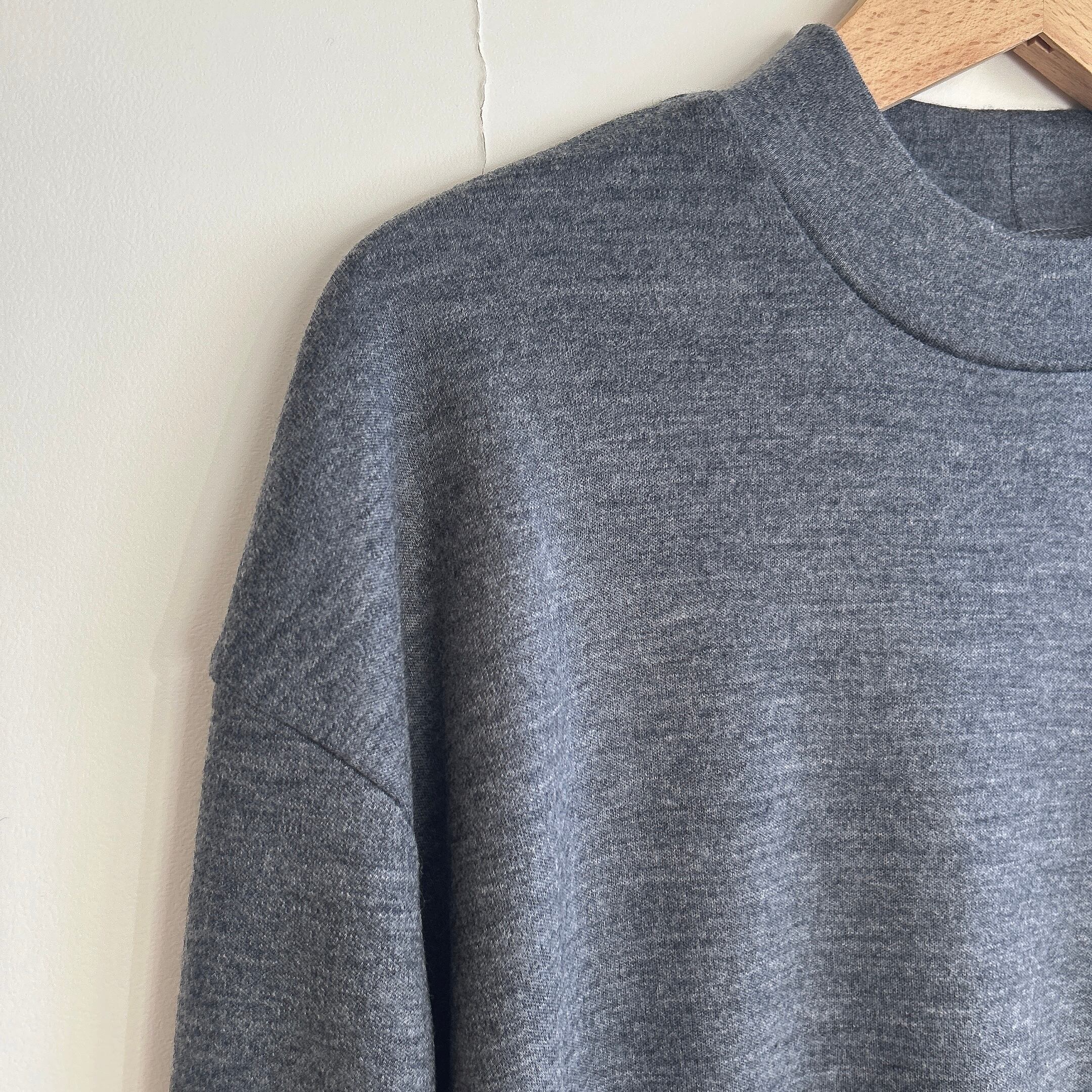 ウォッシャブル加工と毛羽をそぎ落とす加工をしており、ニットウェアとはまた別の肌触りな1着です。