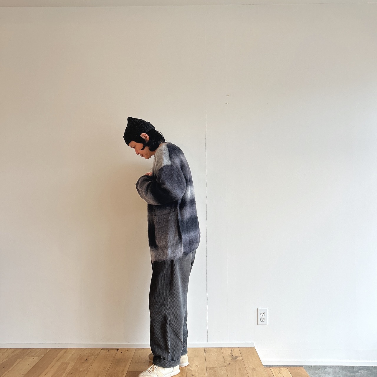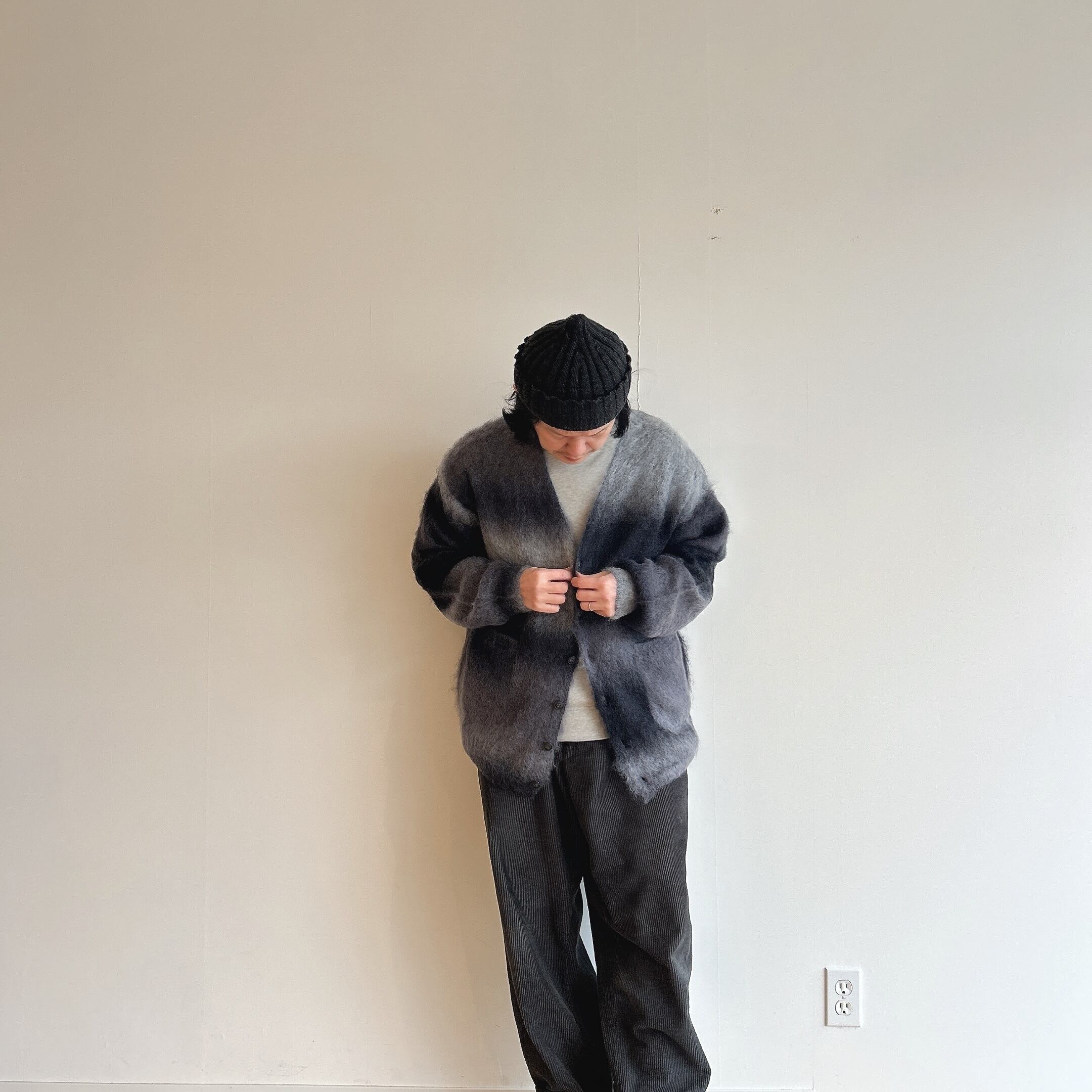 コムアーチでは珍しい多色使いなニットですが、1点1点、全く同じ配色に仕上がらないのもこのカーディガンの特徴かと。