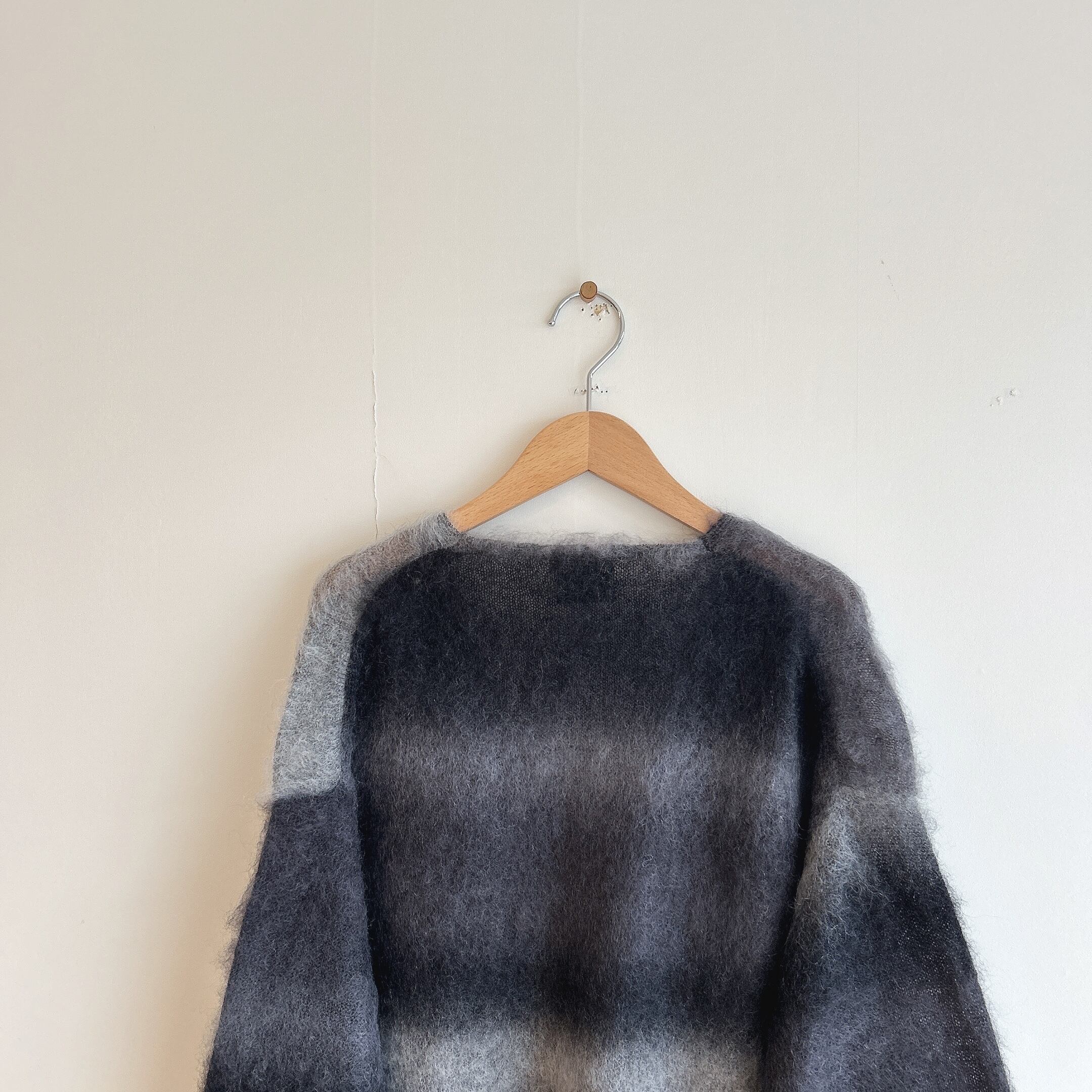 素材にはニュージーランド産ウール主体の糸を、日本伝統染色技法の一つである絣染(かすりぞめ)を施す事で、迫力のある多色染めにしたニット用糸を使用しました。
