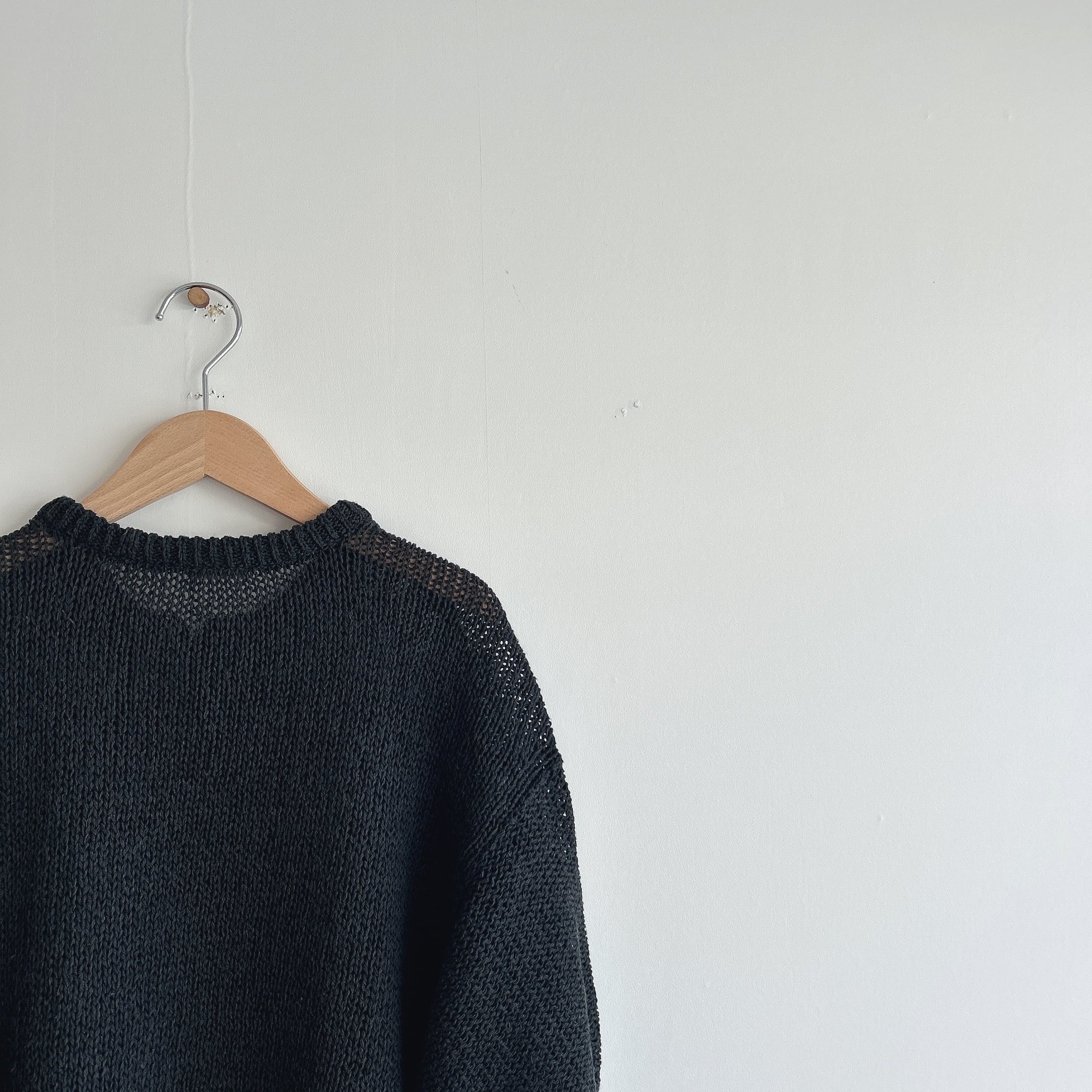 度目も通常より緩めに編む事でより春夏らしい清涼感と軽量感があり、長いシーズンに渡って着ていただきたいスリーブレスPOですね。