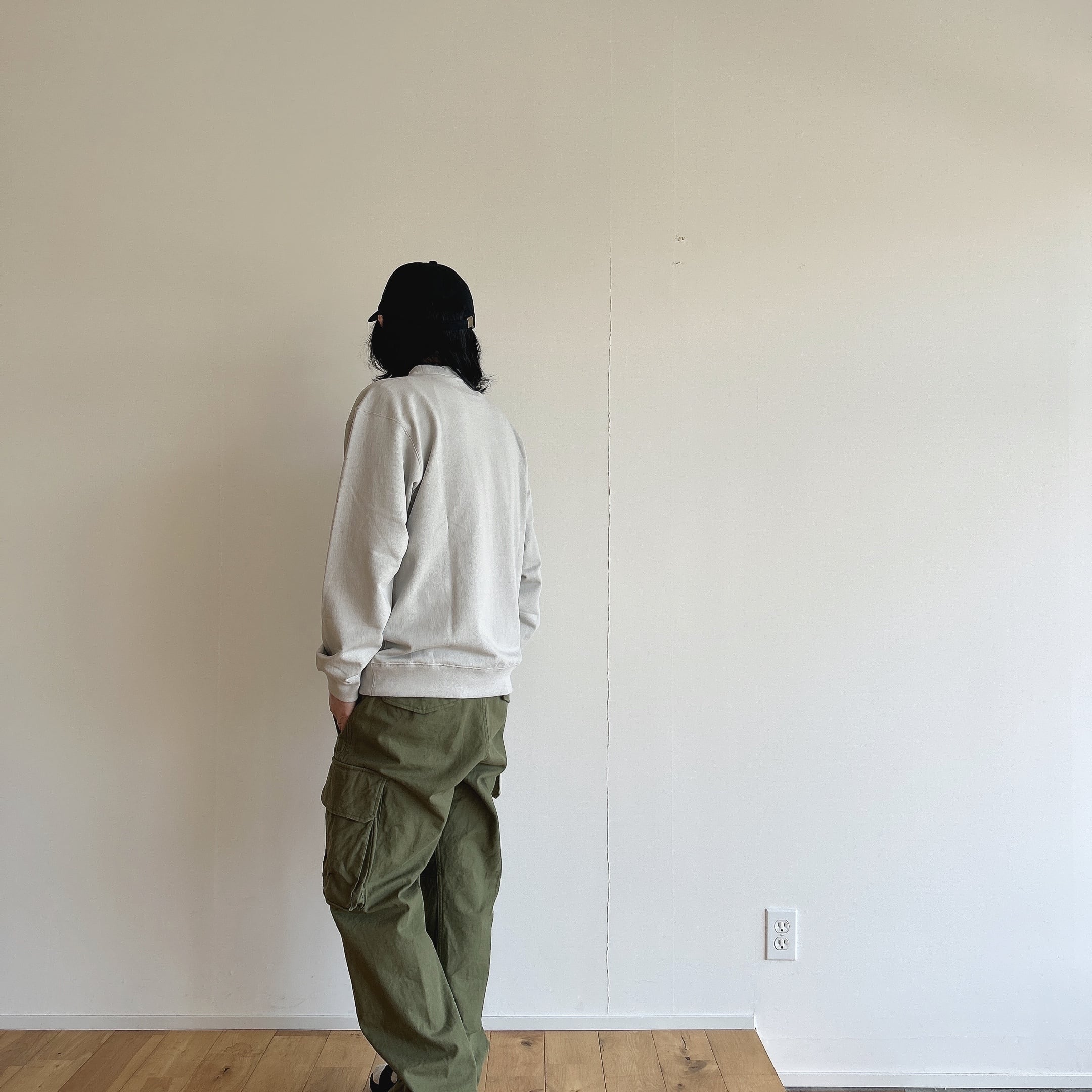 生地の厚さとしてはTシャツとスウェットの間くらいの為、通年使えるような1着です。