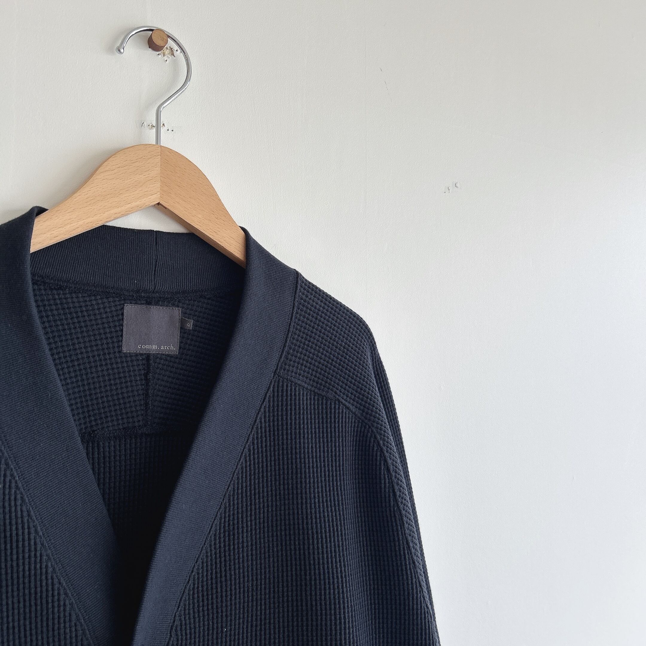 comm. arch. (コム・アーチ)は2014AWからJoe Mc のディレクションによりスタートしたニットウェアブランド。日本国内紡績の糸を厳選し、現存する貴重なニットデザイナーや職人の連携(communication)によりニットウェア(architecture)が製作されている。とにかく、素材、作り、プロセスにこだわり、全てが”Fully Fashioned”(成型編み)された、心地よく長く着られるニットウェアを作っている。comm.arch. のニットウェアコレクションは、いわば日本の”BORN KNITTERS”の集大成ともいえる。