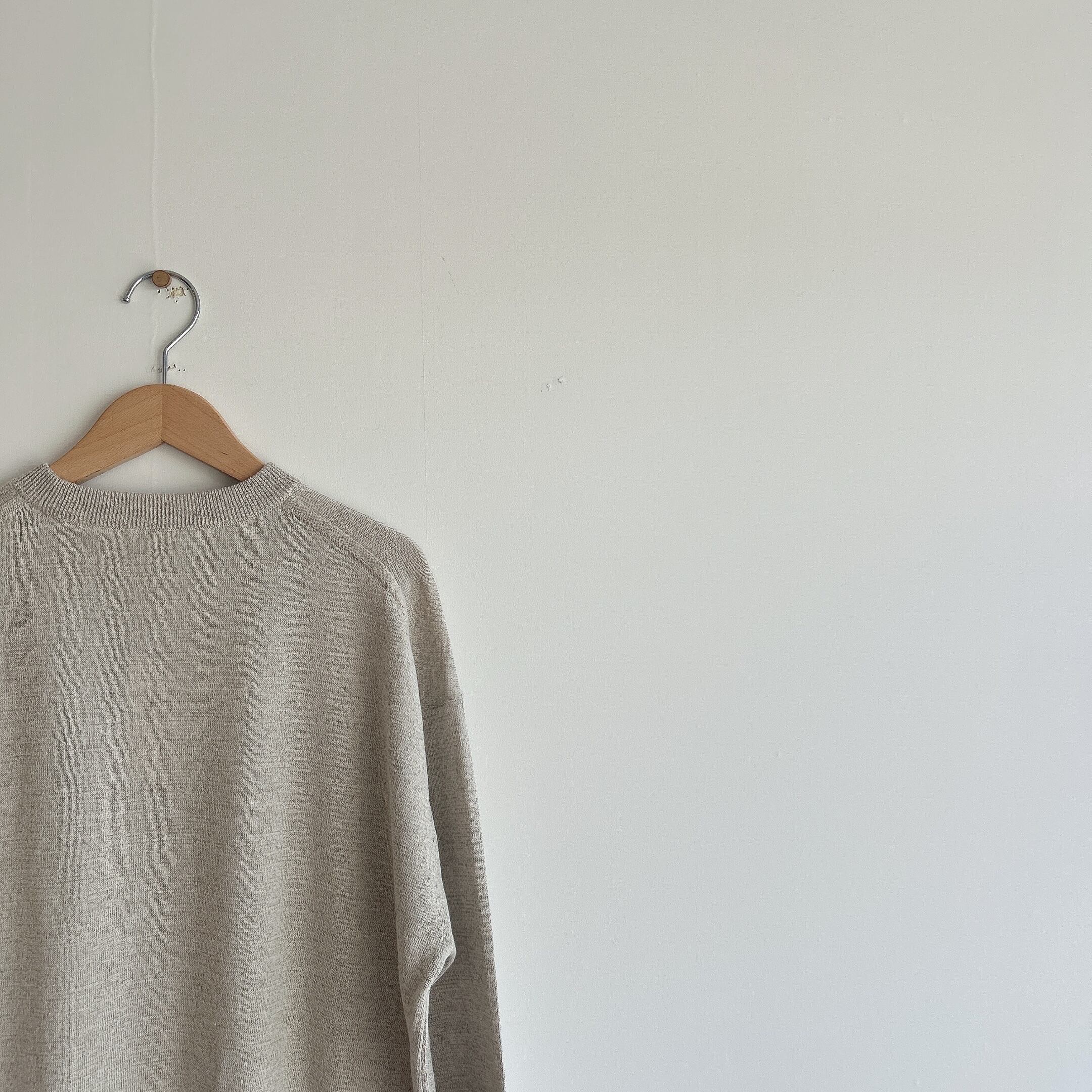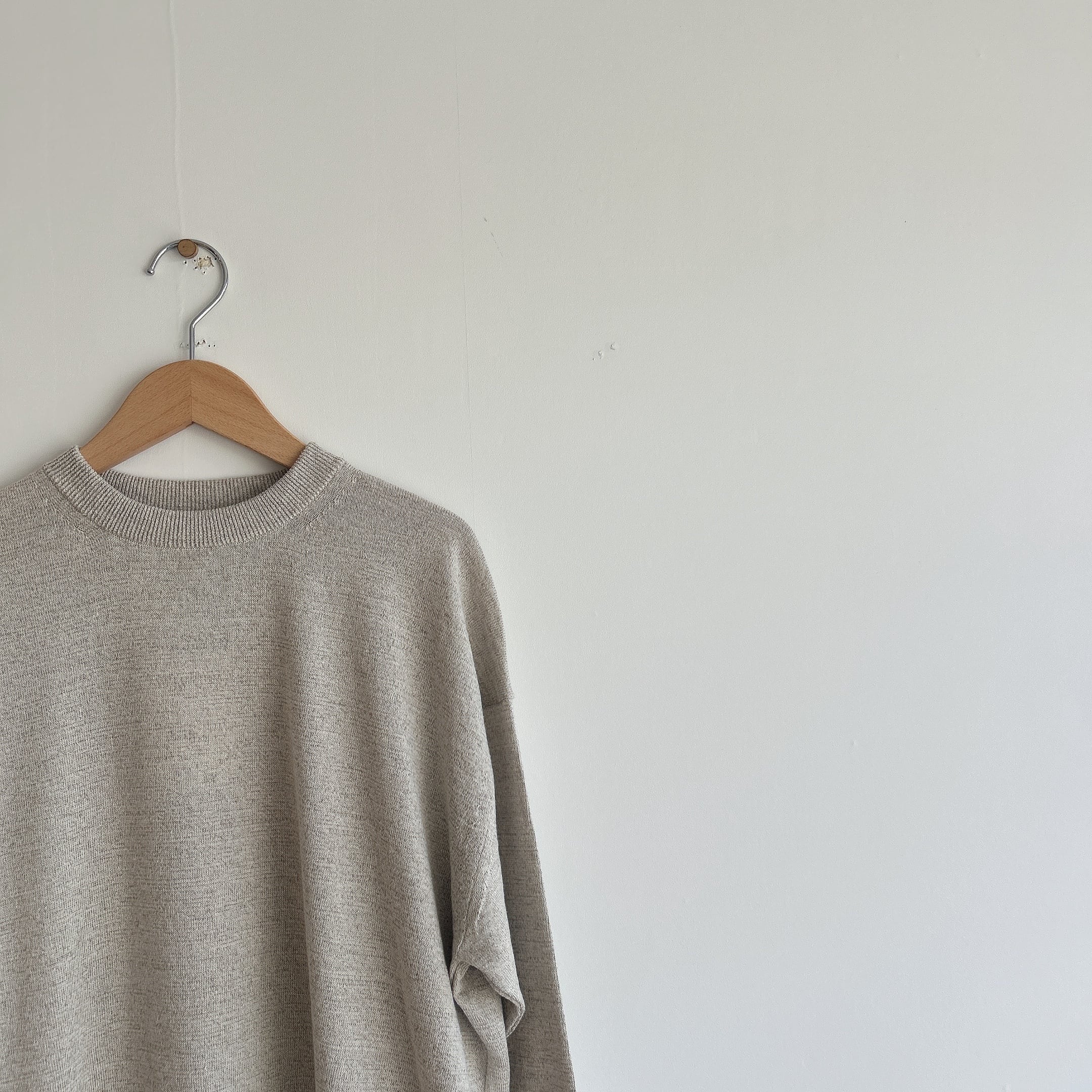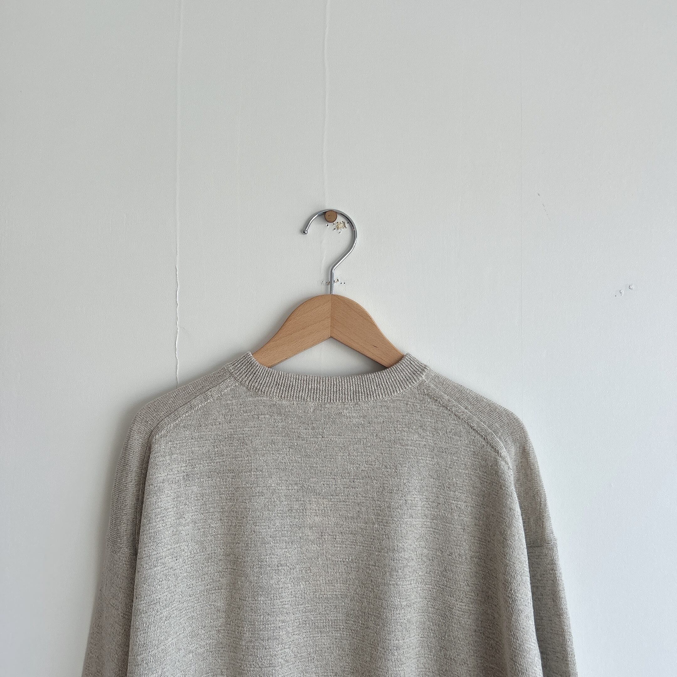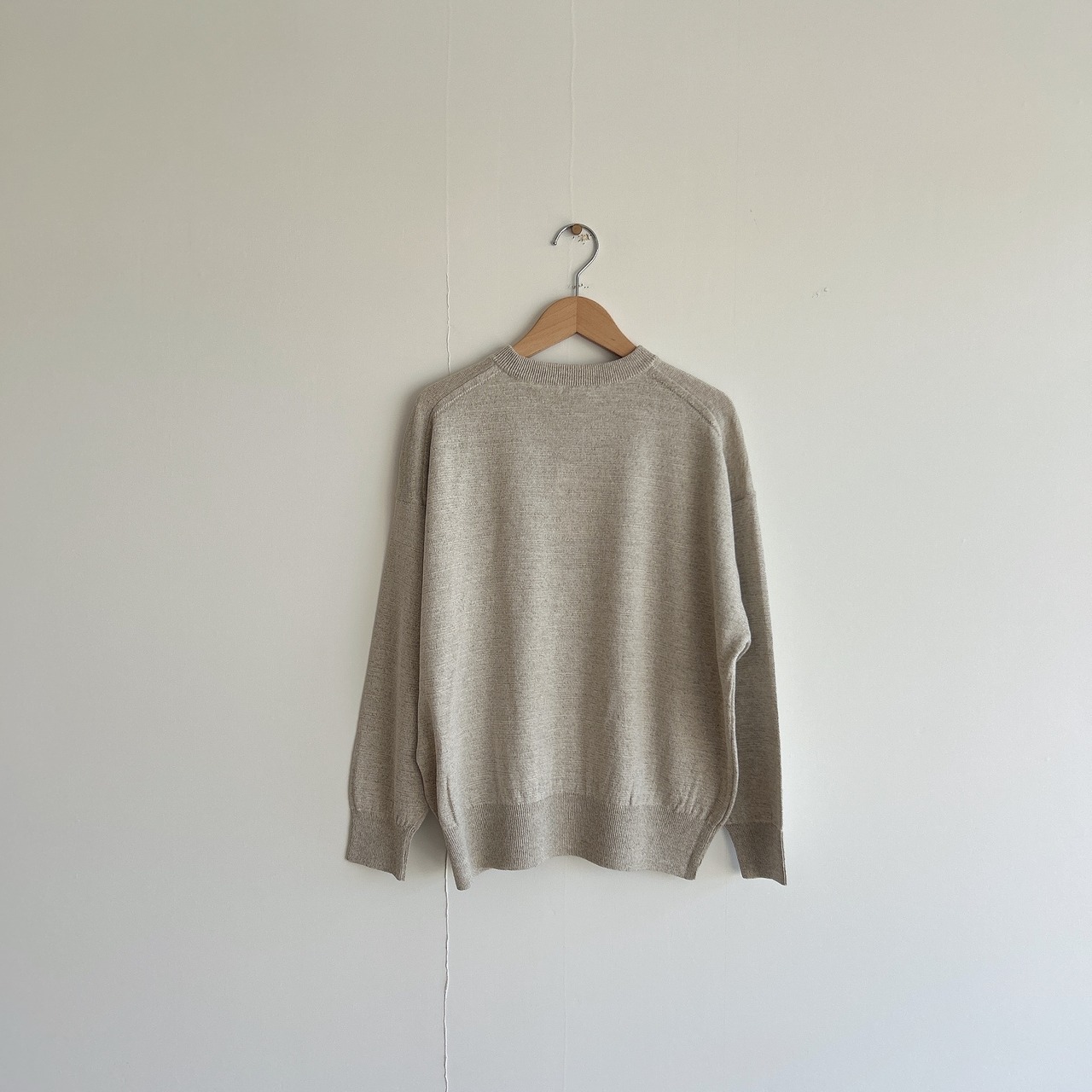 コムアーチのハイゲージなリネンシルクニットプルオーバー。