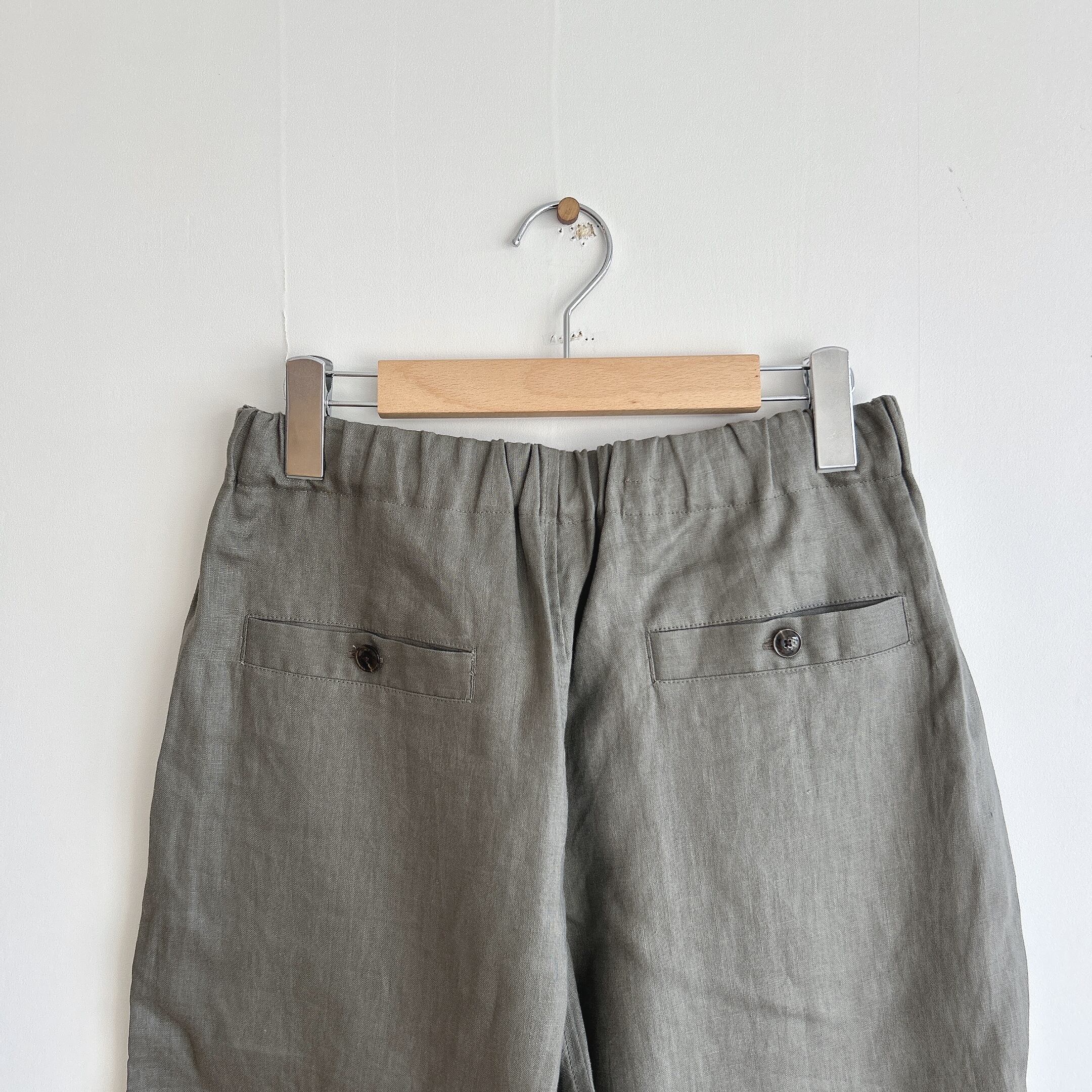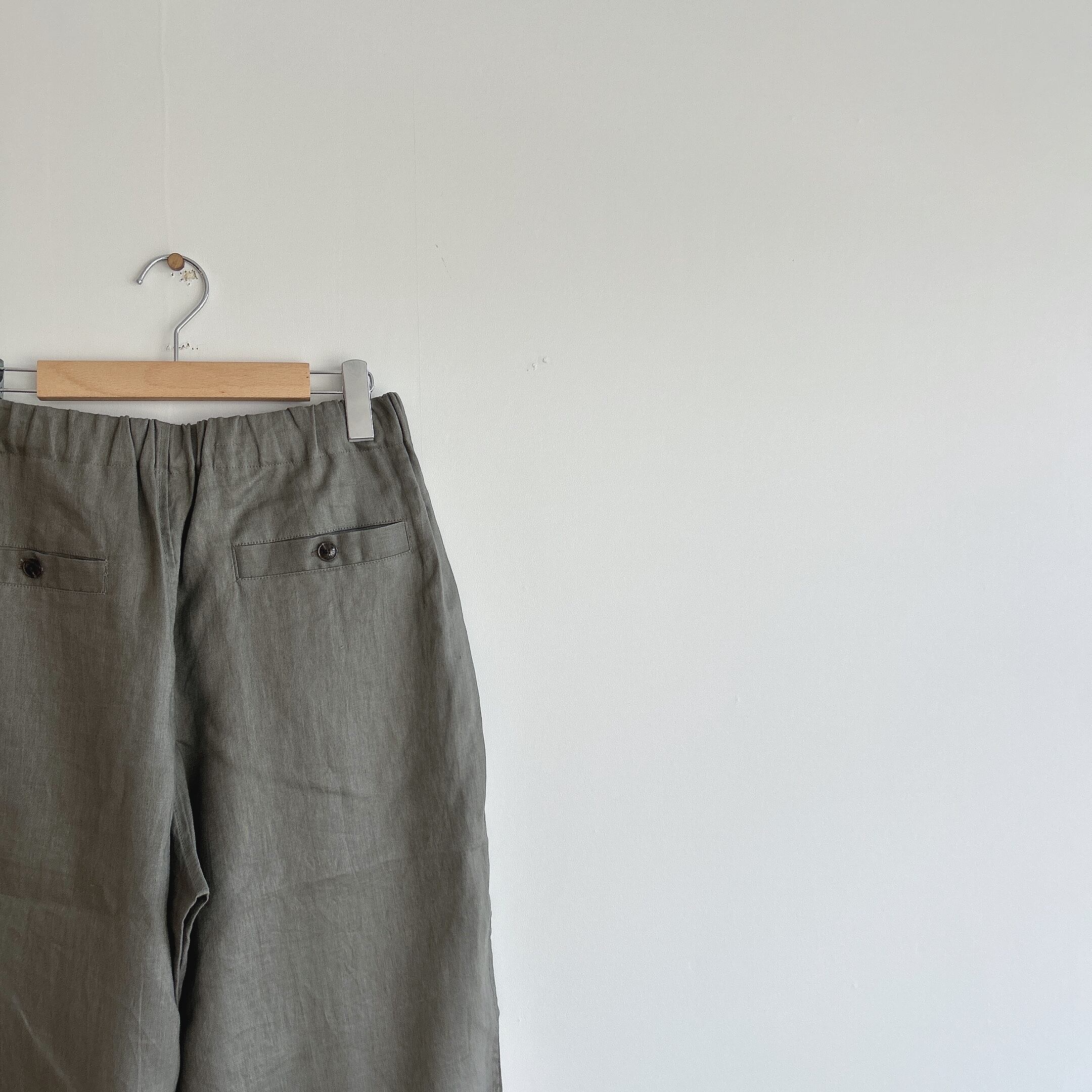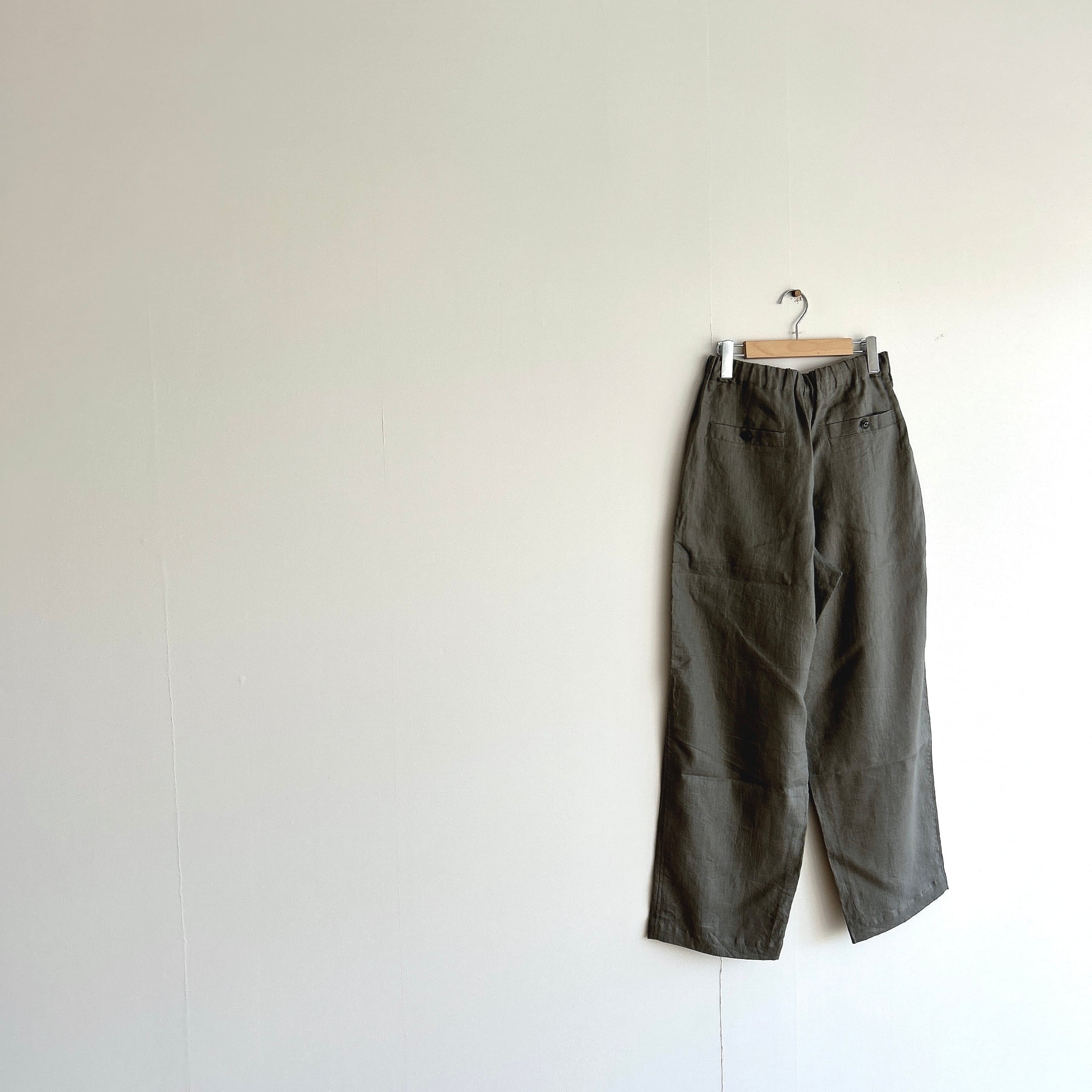 フレンチリネンを使用したコムアーチのイージーパンツ。