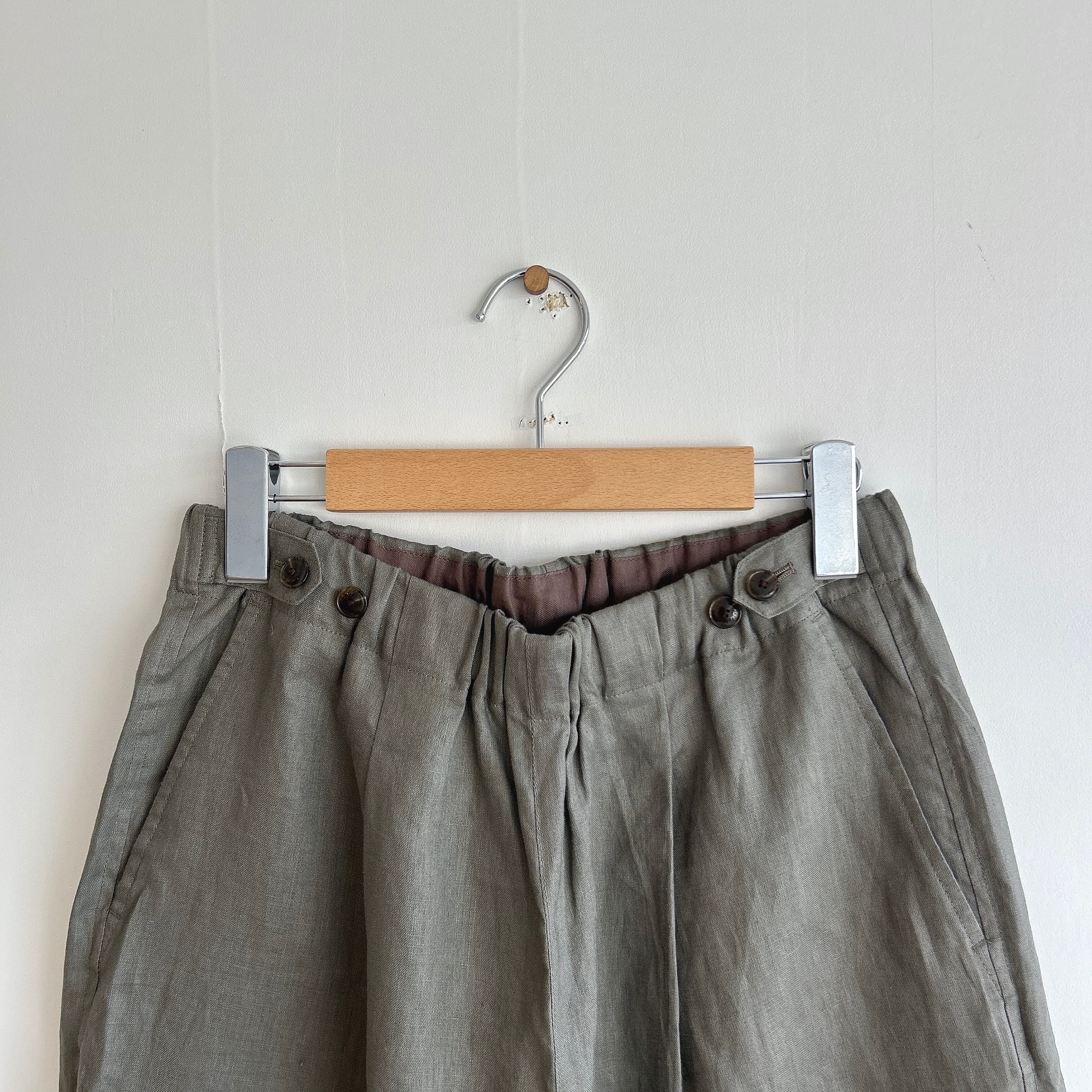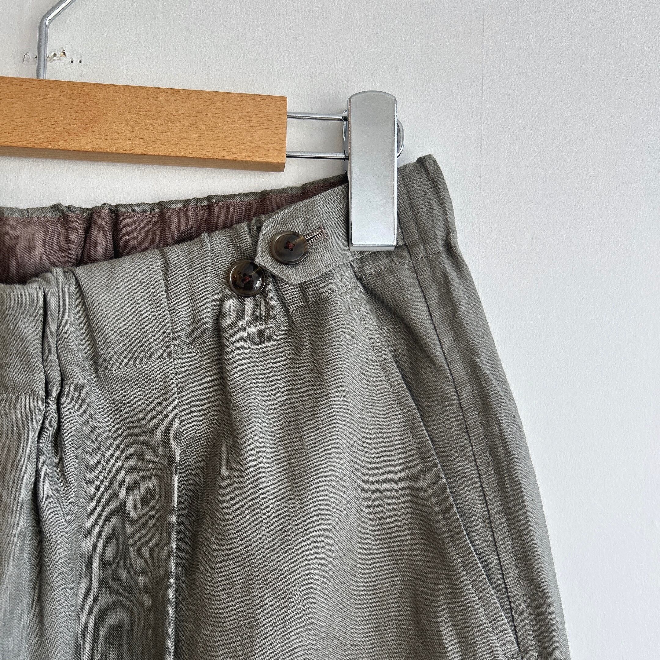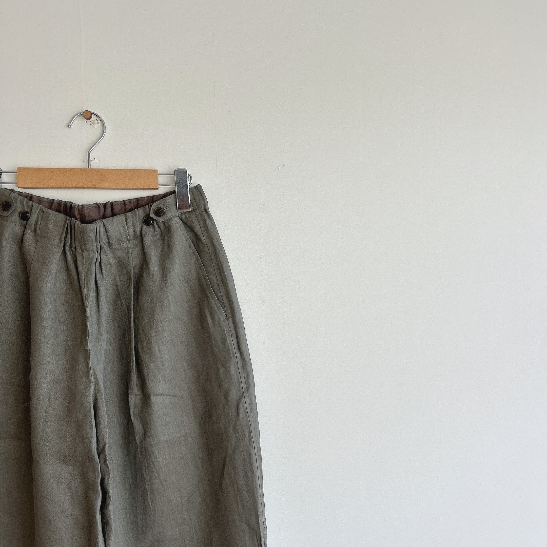 フレンチリネンを使用したコムアーチのイージーパンツ。
