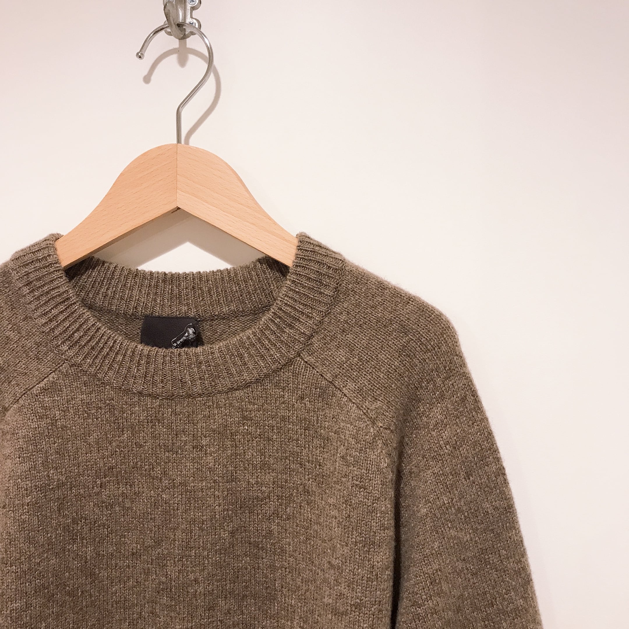 それを東北地方でハンドフレーム(手横編み機)のみでニットウェアを制作している職人さんの手によって作られました。