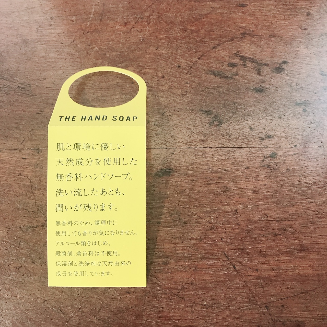 肌への刺激を減らすため、アルコール類や殺菌剤、着色料は一切不使用。保湿剤と洗浄剤には、天然由来の成分を採用。水で洗い流した後も、肌に潤いが残ります。 あえて無香料にすることで、食品への匂い移りが気になる調理中や小さなお子さまの手洗いにも配慮しました。