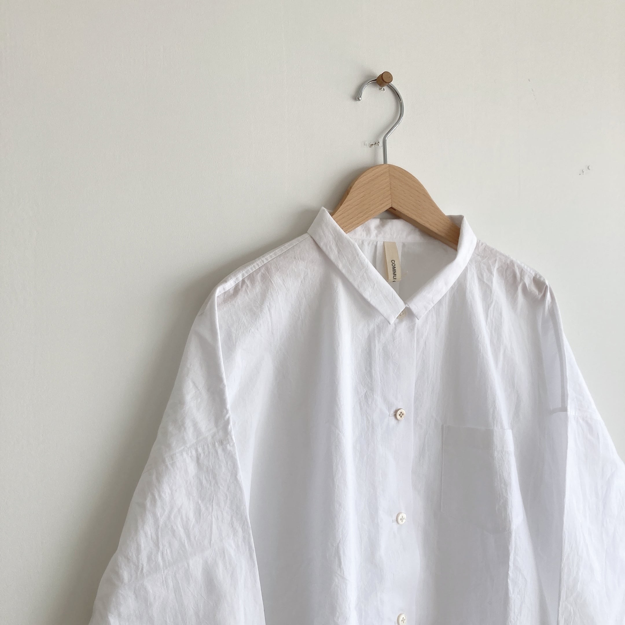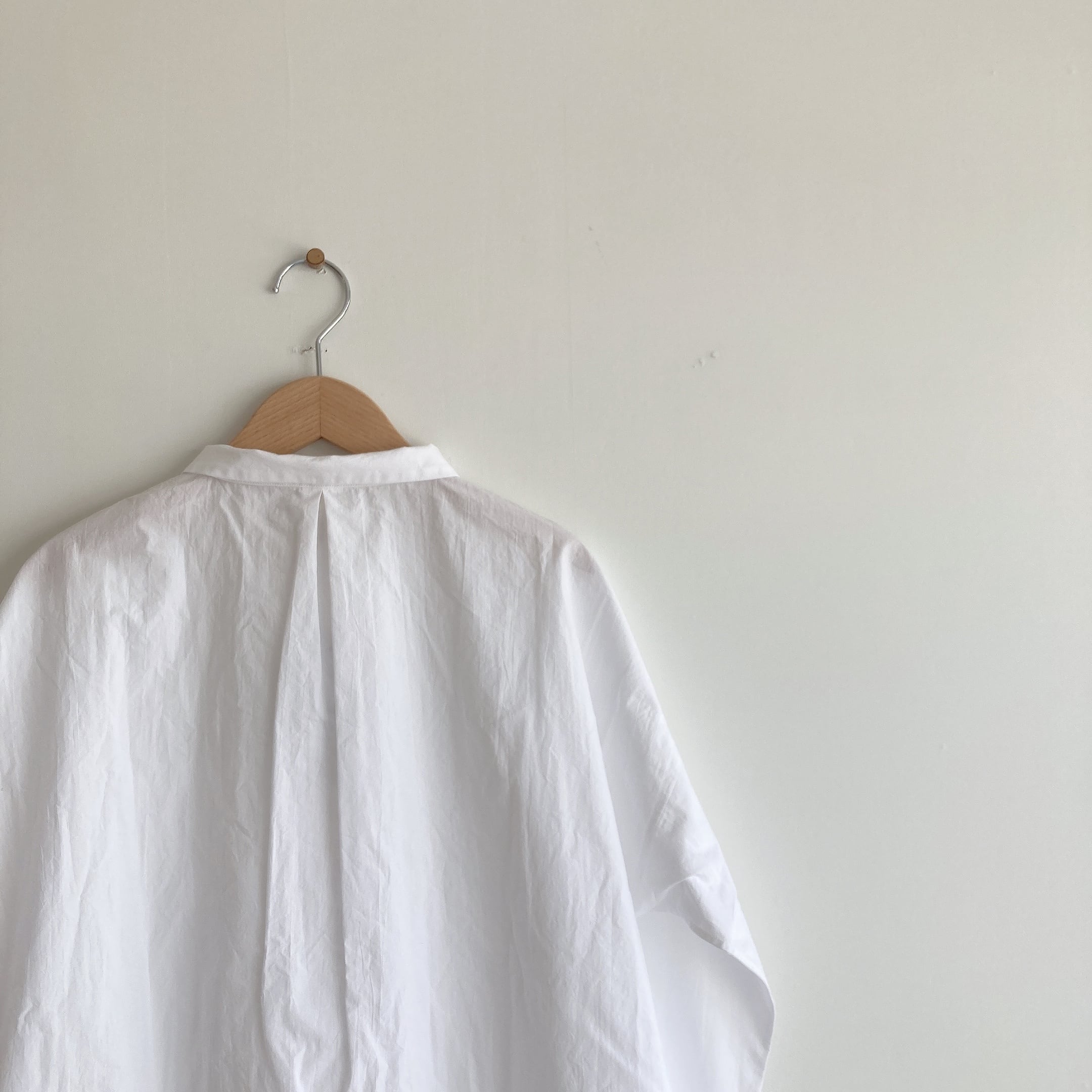 アイロンをかけてパリッとした素材感で着るのもいいですし、洗い晒しで着ていただけるとまた違う雰囲気にもなっていいかなと思います。