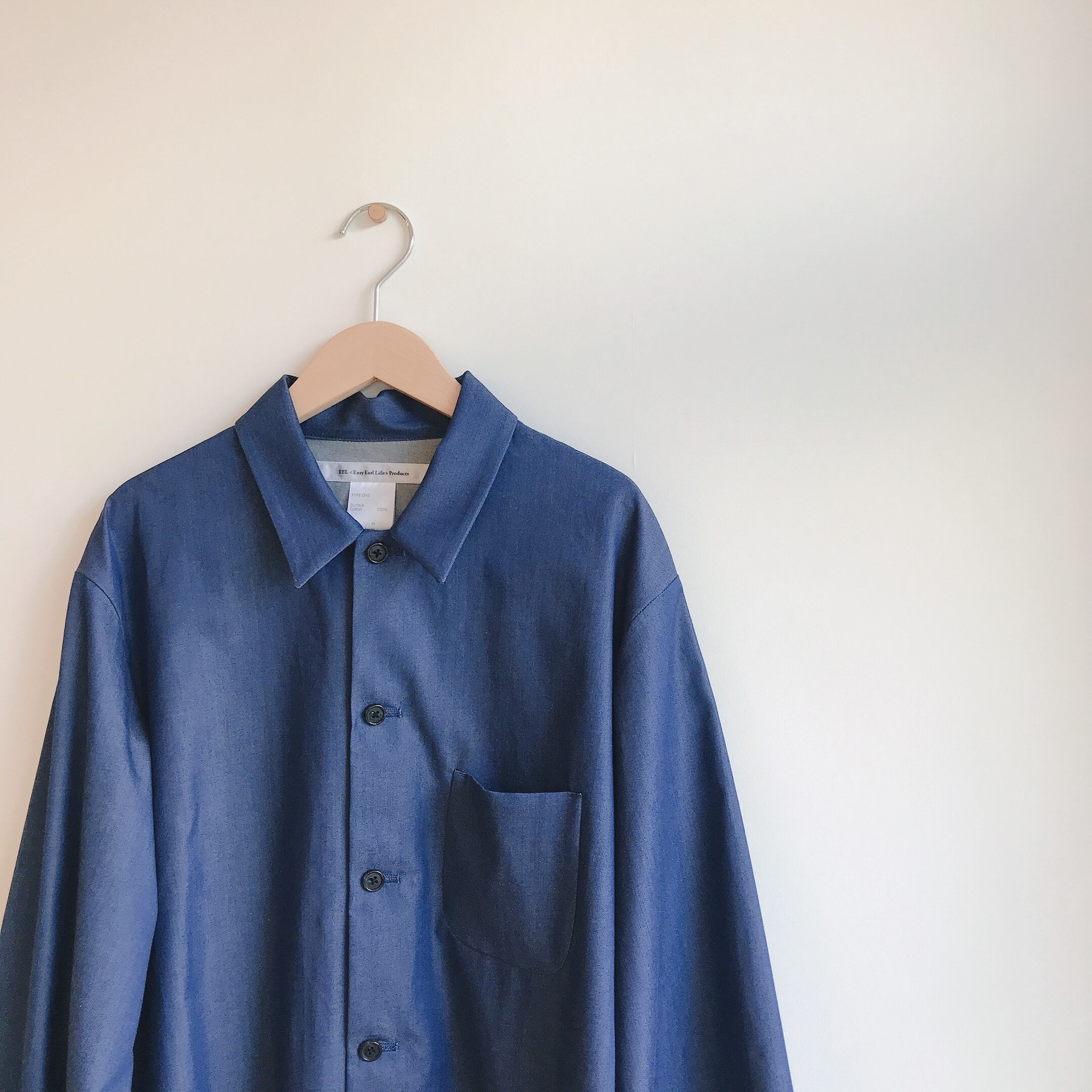 色はキレイなデニムブルー、着て洗っていくと色の落ちも少しずつ出てくるので生地の変化を育てていくのも楽しみかと。