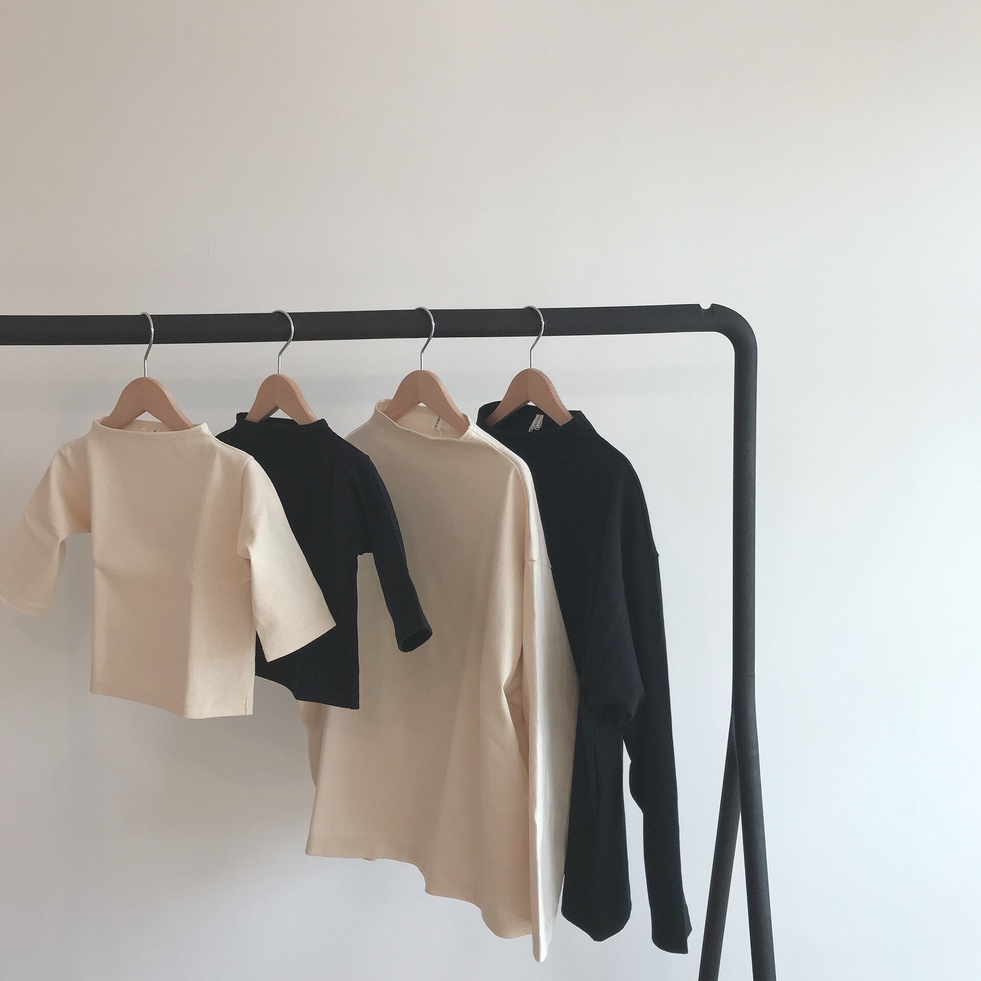 型は肩の落ちがあるゆったりとしたシルエットに特徴的なモックネック。