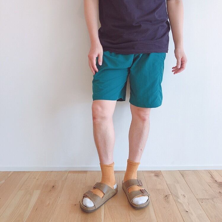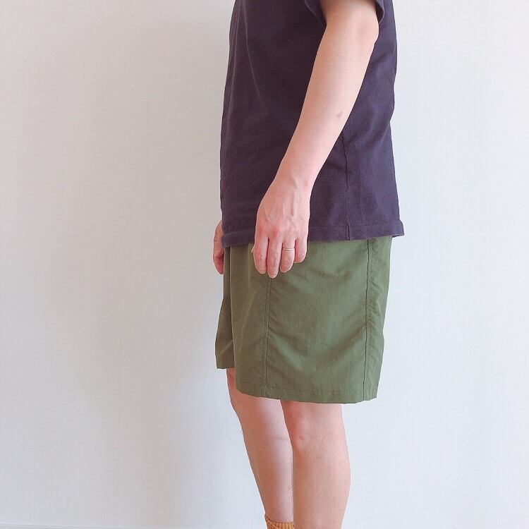 ナイロン100%の軽やかな生地に、ウェストはゴム(紐で絞れます)で、太もも、裾幅はしっかり取ってあるので汗をかいても肌離れしやすく着心地抜群です。