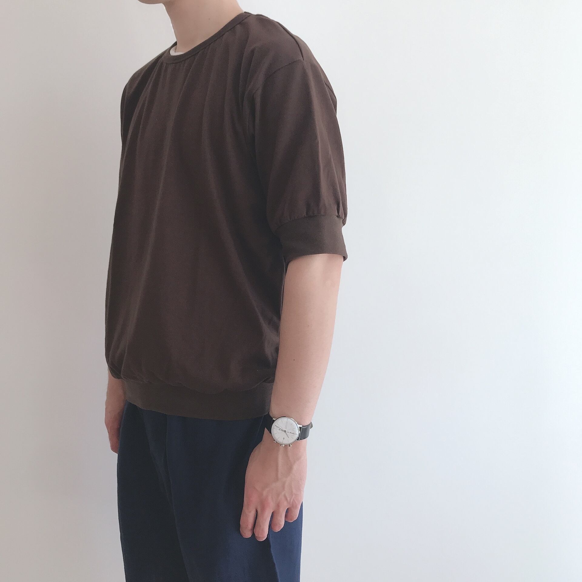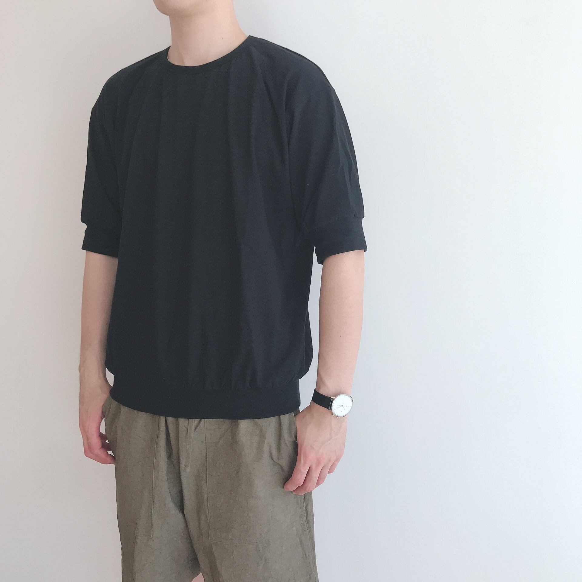 伸縮性のあるコットン生地は柔らかくて着心地が良く、袖のリブはスッキリとした印象にしてくれるS/S Tシャツです。