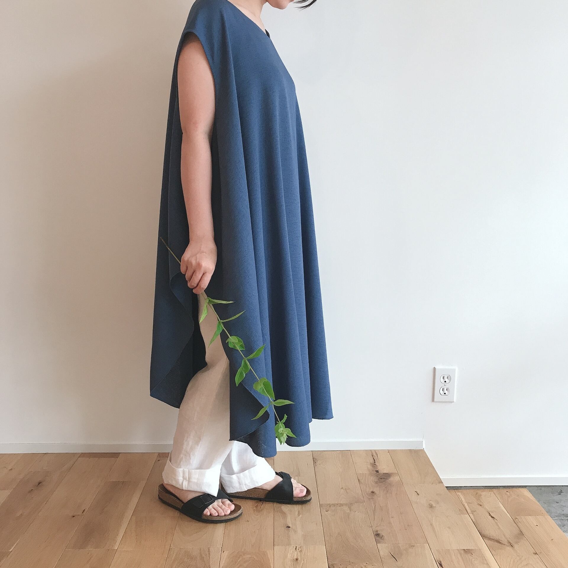 袖は肩が隠れるくらいの袖感に、脇下からはゆったりとし、サイドから見ると特徴的な綺麗なカットがしっかり分かります。