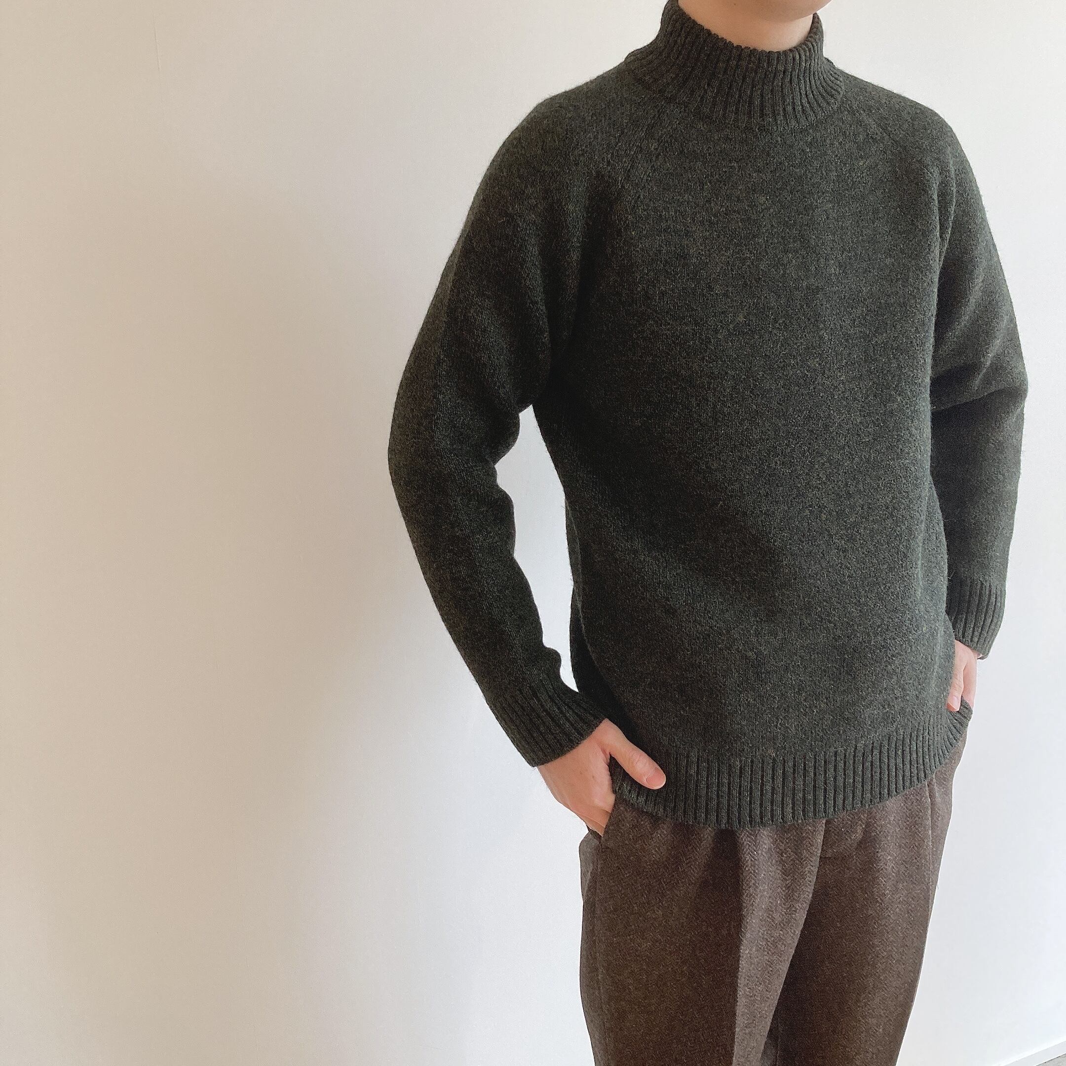 肉厚で温かなハイネックセーター。