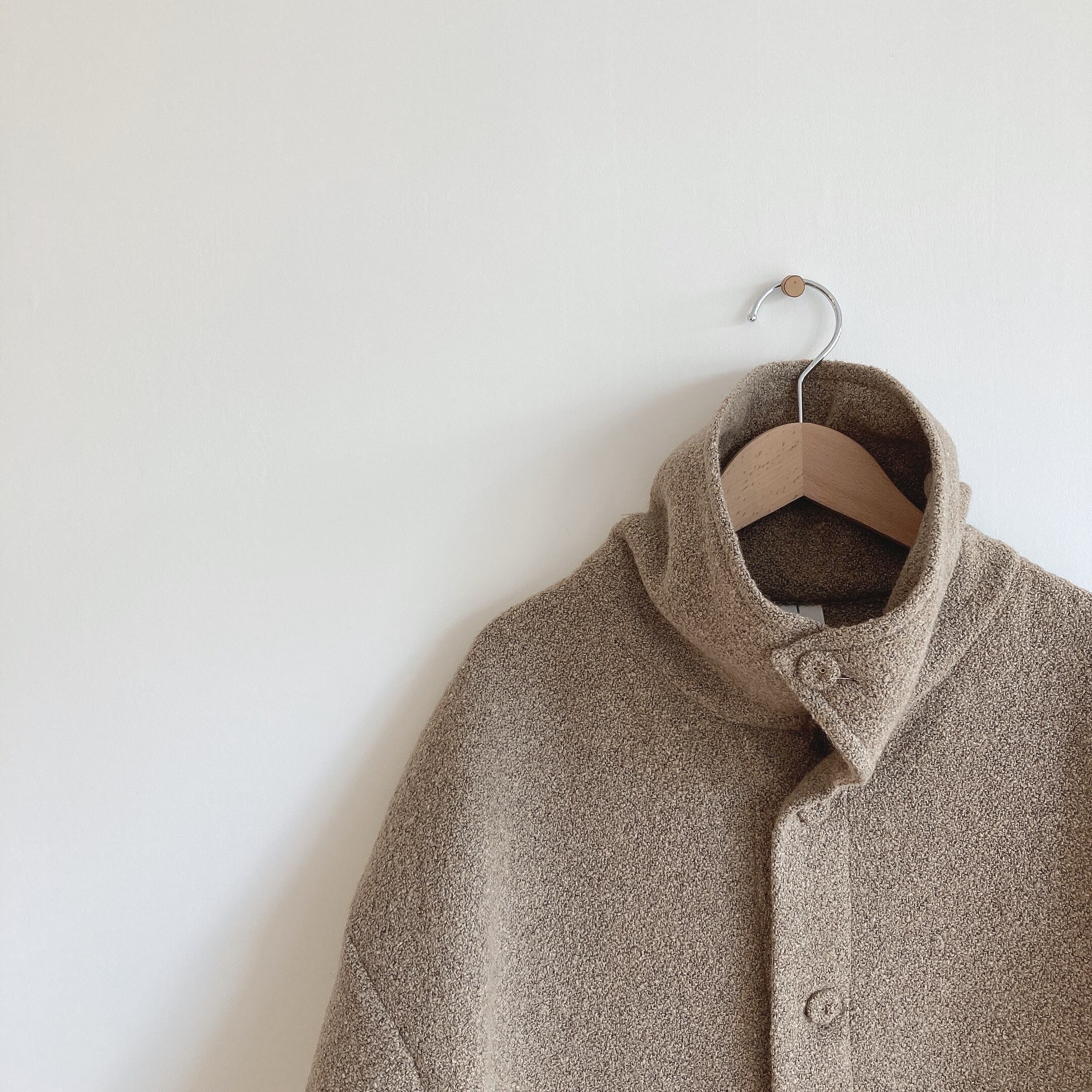 襟元は寝かせてもイイですが、釦を留めてスタンドで着るとまた雰囲気も変わりますよ!