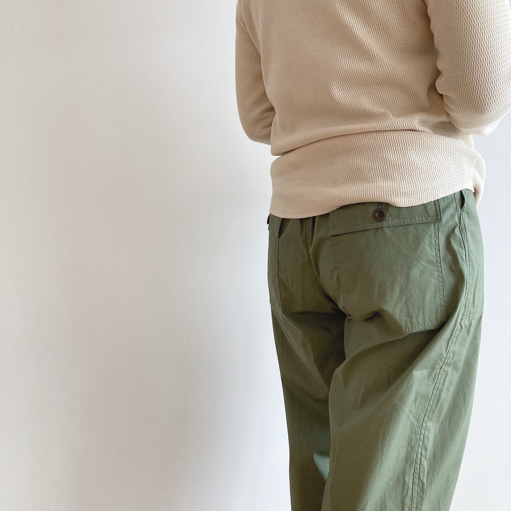 ほどよいシルエットの緩さ、生地の軽さ、ウェストの後ゴム、楽に穿けて春から夏にかけて使える1本です。