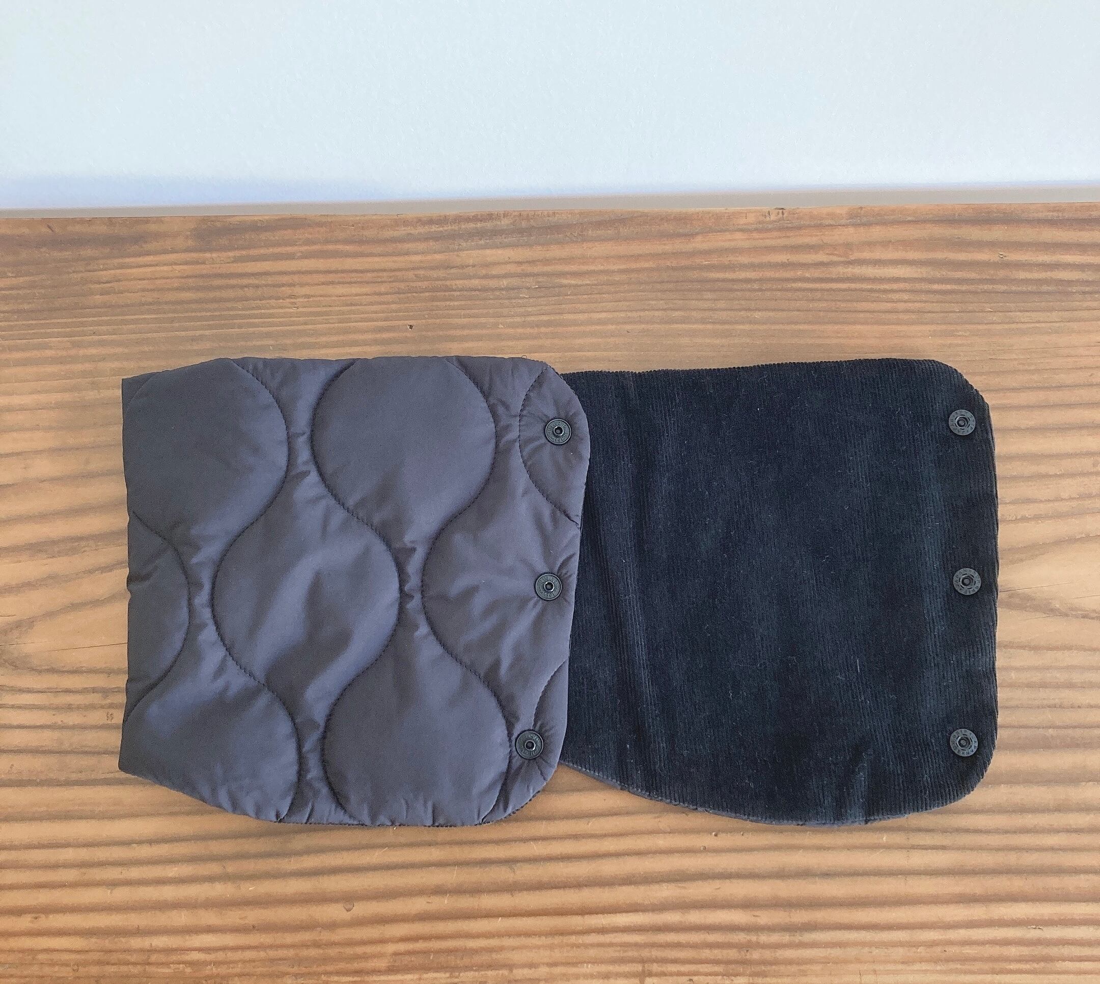 表地はキルトウォーマーの中綿キルト、裏地はコーデュロイ。