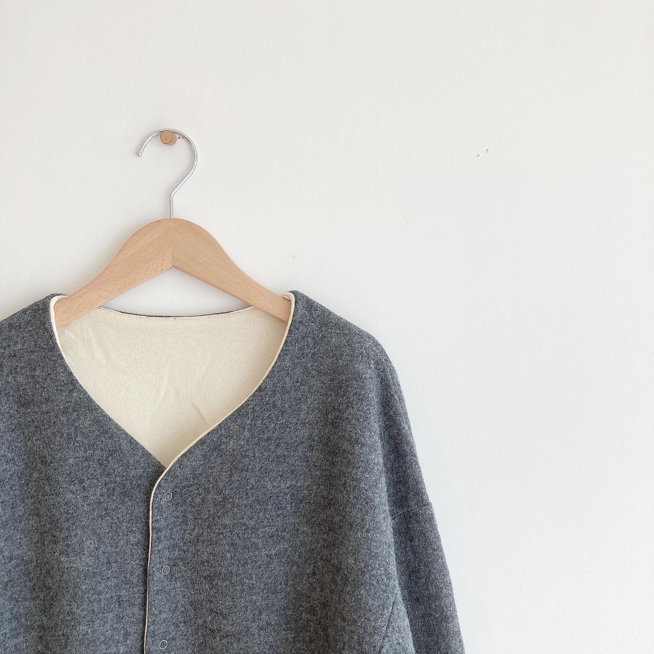 EEL Productsでは長年に渡る定番のアウンシリーズ、初めてのリバーシブル仕様のカーディガンが出来ました。
