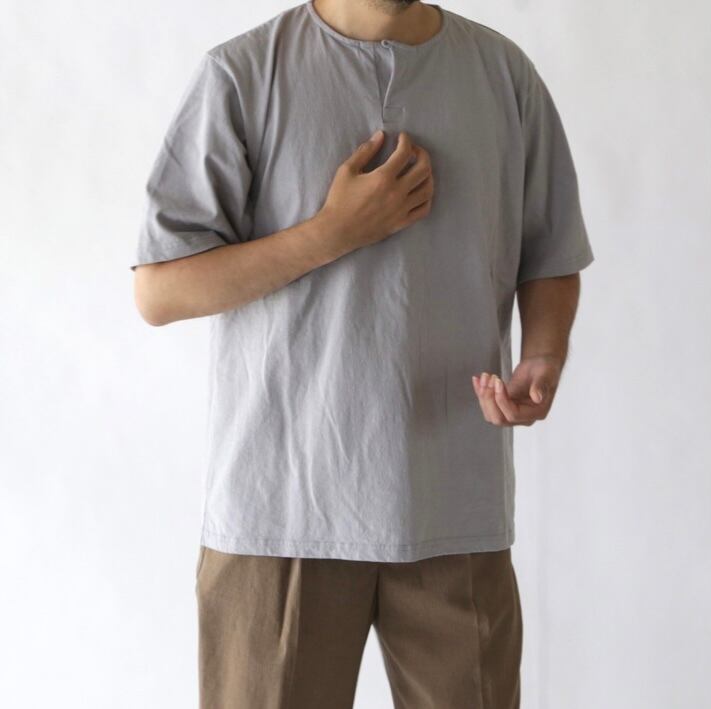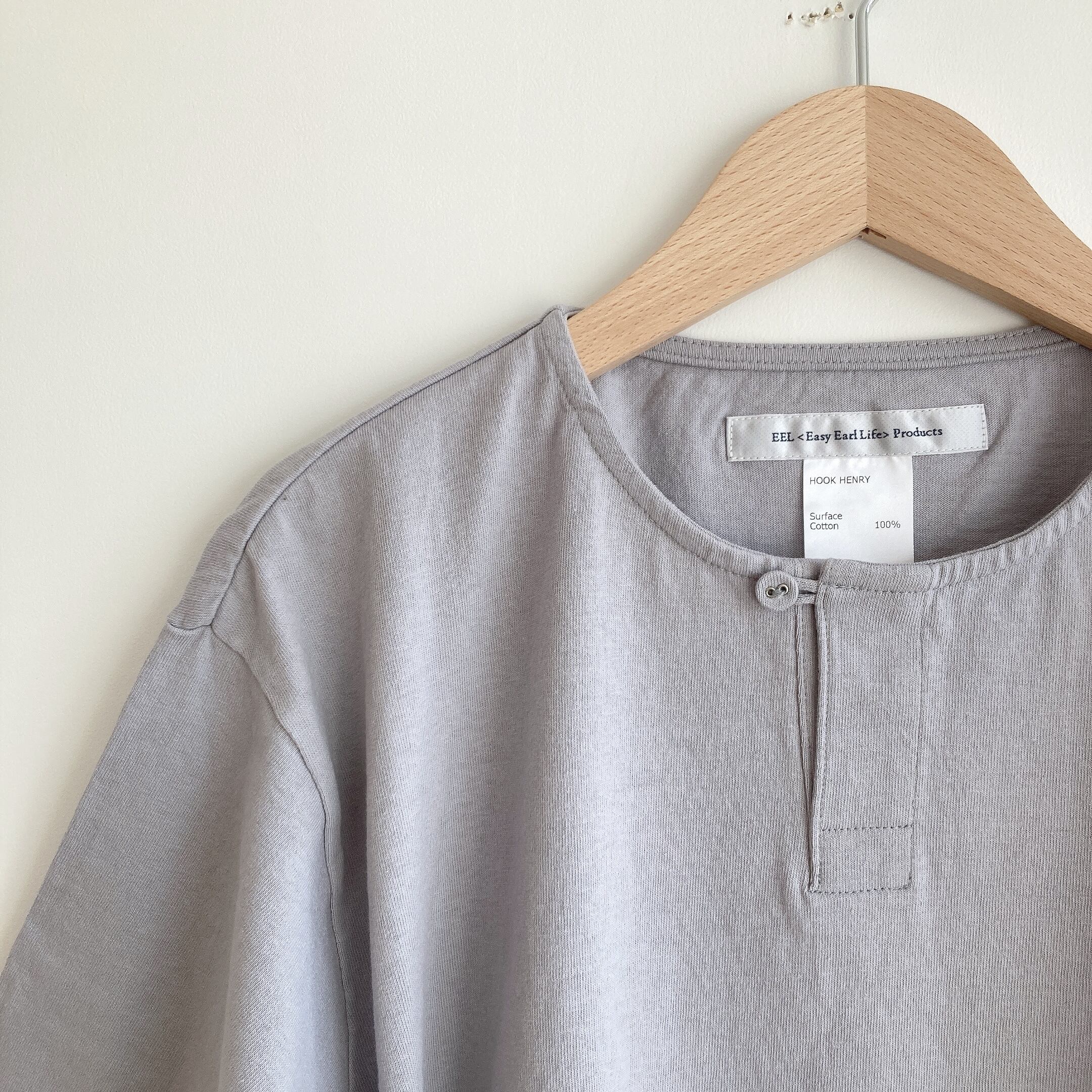 EEL Productsらしいタフなコットン生地に胡桃ボタンをフックに掛けて留めるシンプルなTシャツ。