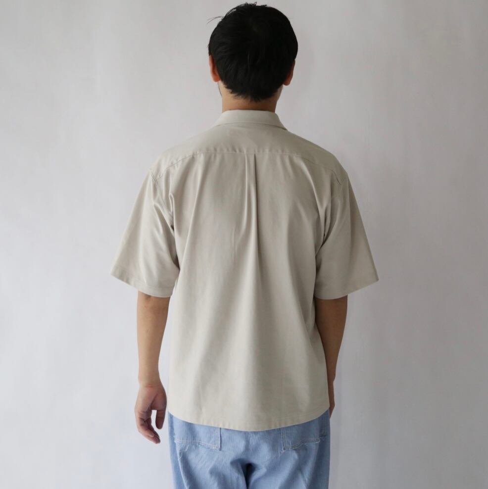 シャツとは言っても布帛ではなくストレッチの効いたコットンポリジャージーを使用。先日ご紹介したcovenience pantsと同素材のトップスで、セットアップでも着用可能です。