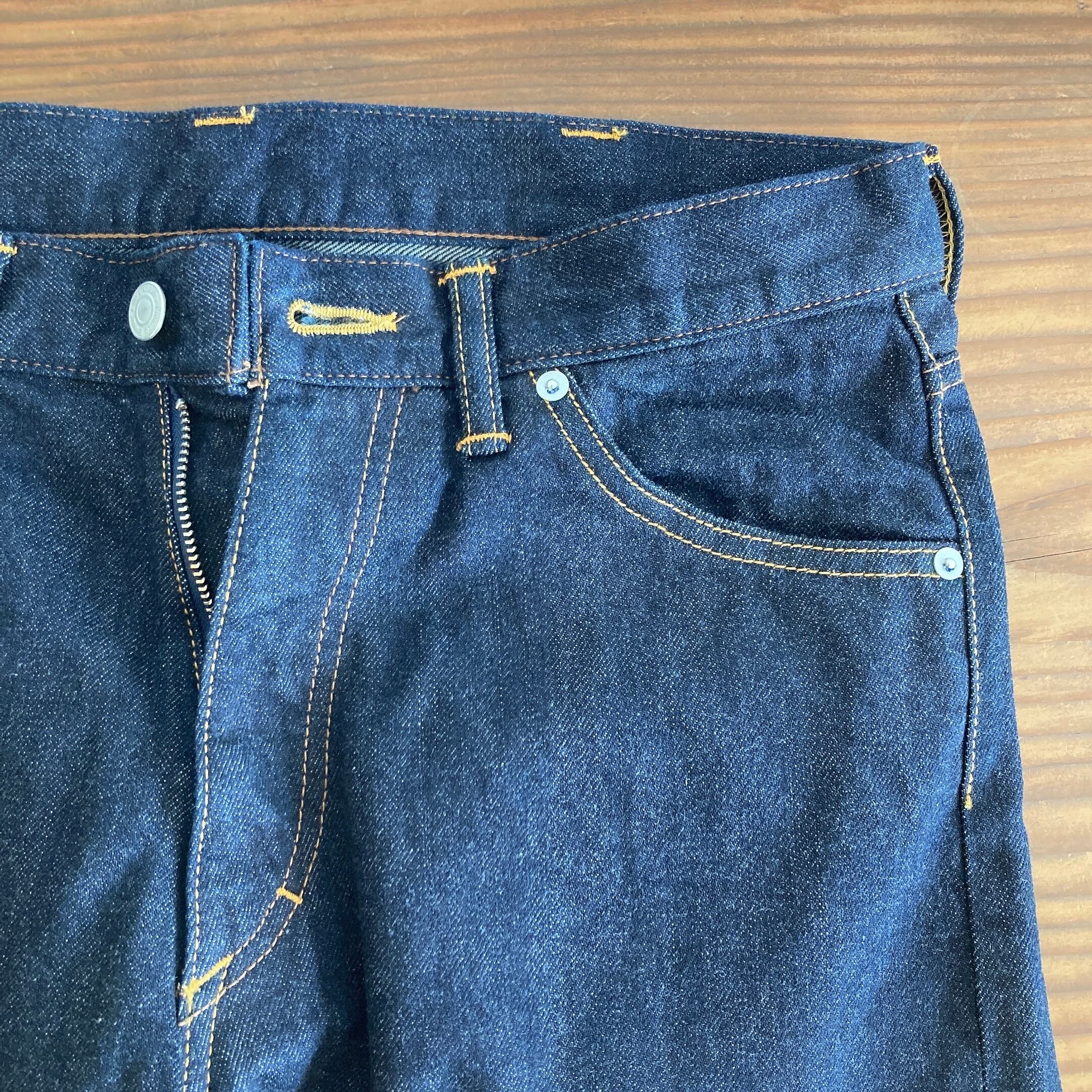 EEL Productsのロゴが入った革パッチ(色の変化がございます)や裾にはセルヴィッチを使ったりと細かい仕様もEEL Productsらしさを感じれる1本です。