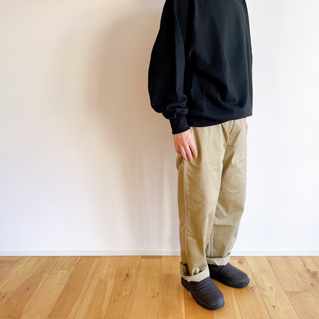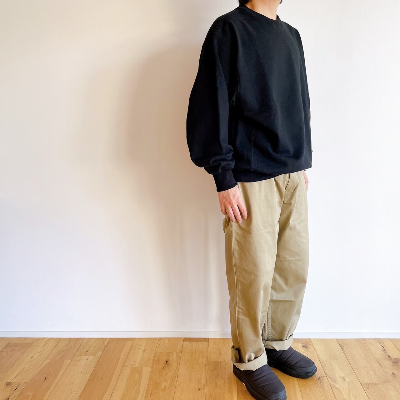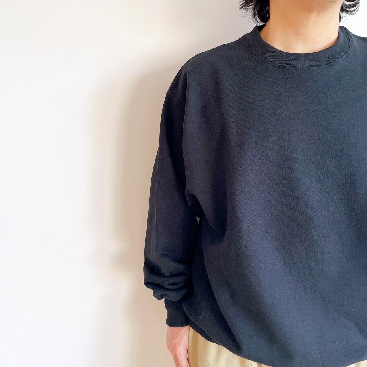Sサイズのみですが、サイズ感は身幅、肩幅、袖幅はゆったりとしています。少し長めの袖丈に袖口のリブがしっかりと効いてたわみが出来る雰囲気がまた絶妙ですね。
