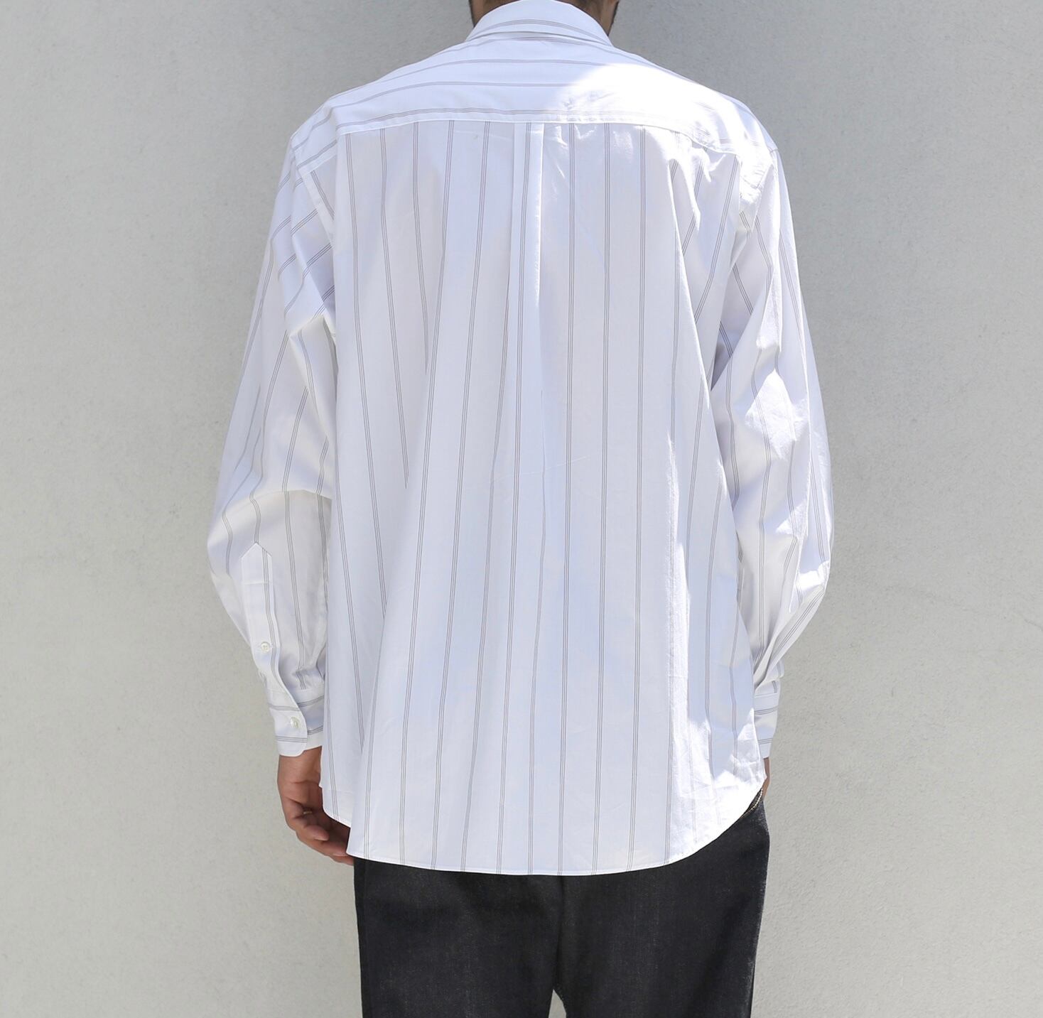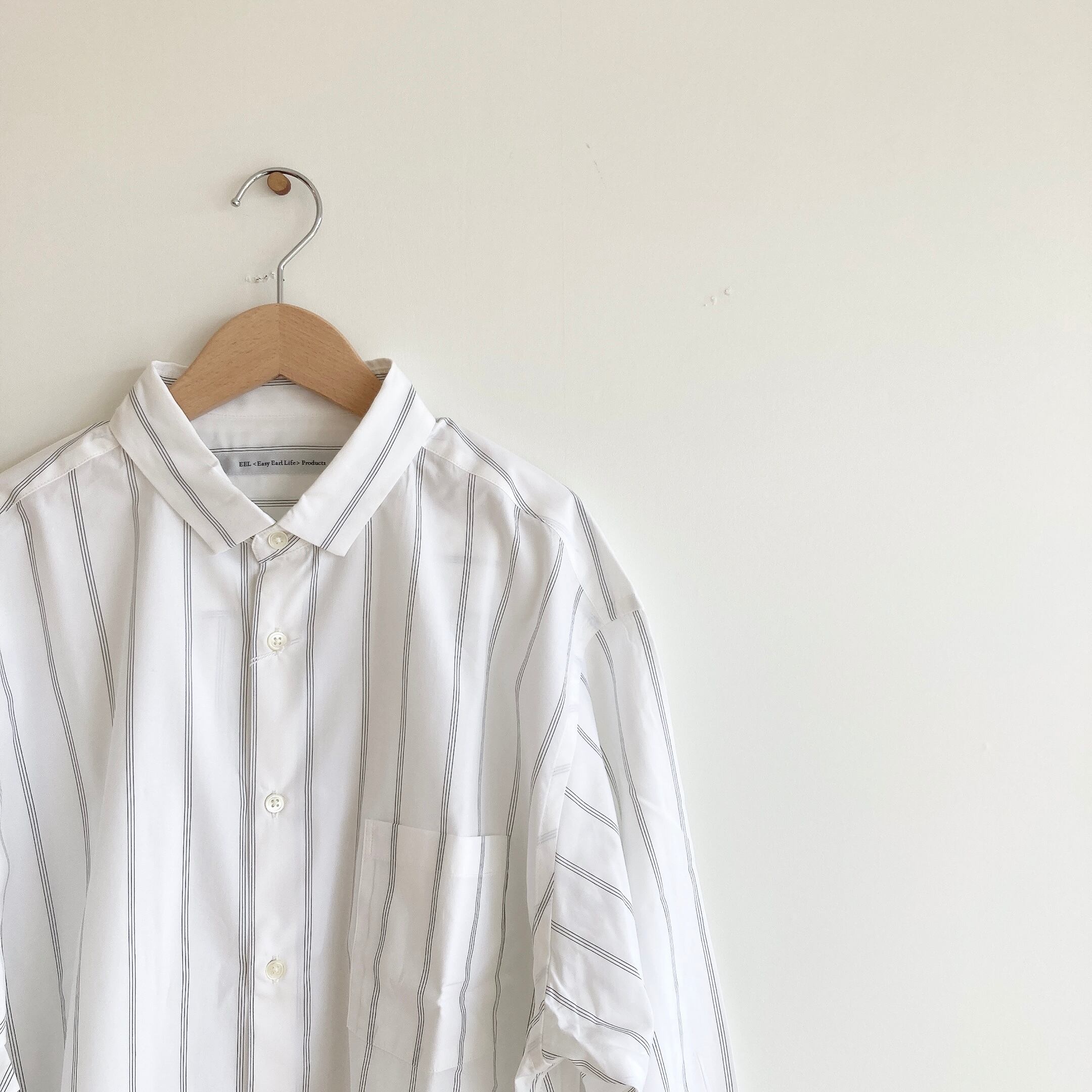 今回は白地に黒のストライプ柄のクラシックなシャツを。