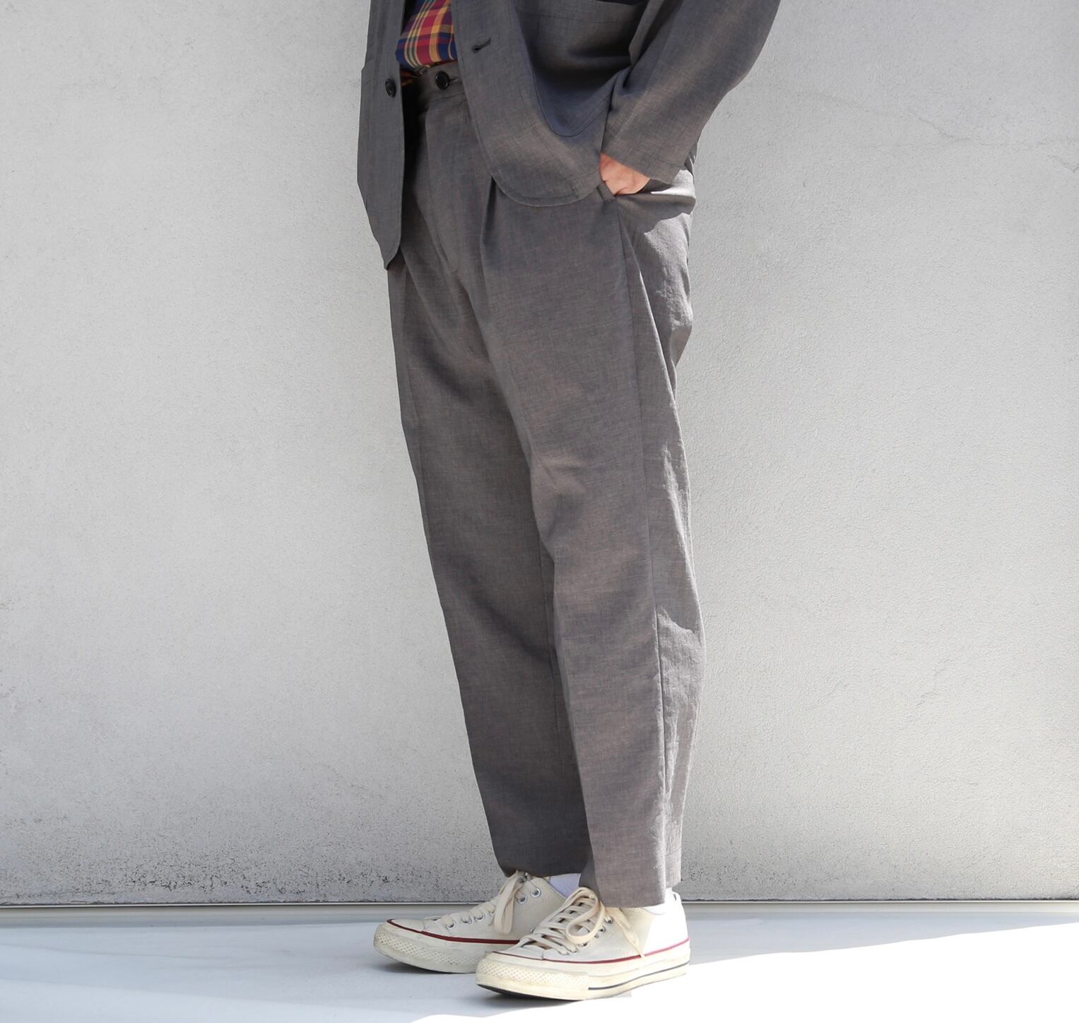 型は今まで通りで、ウエスト、ヒップは少しゆったりとしていて、裾に向かってテーパードの効いた8分丈〜9分丈のスラックス。