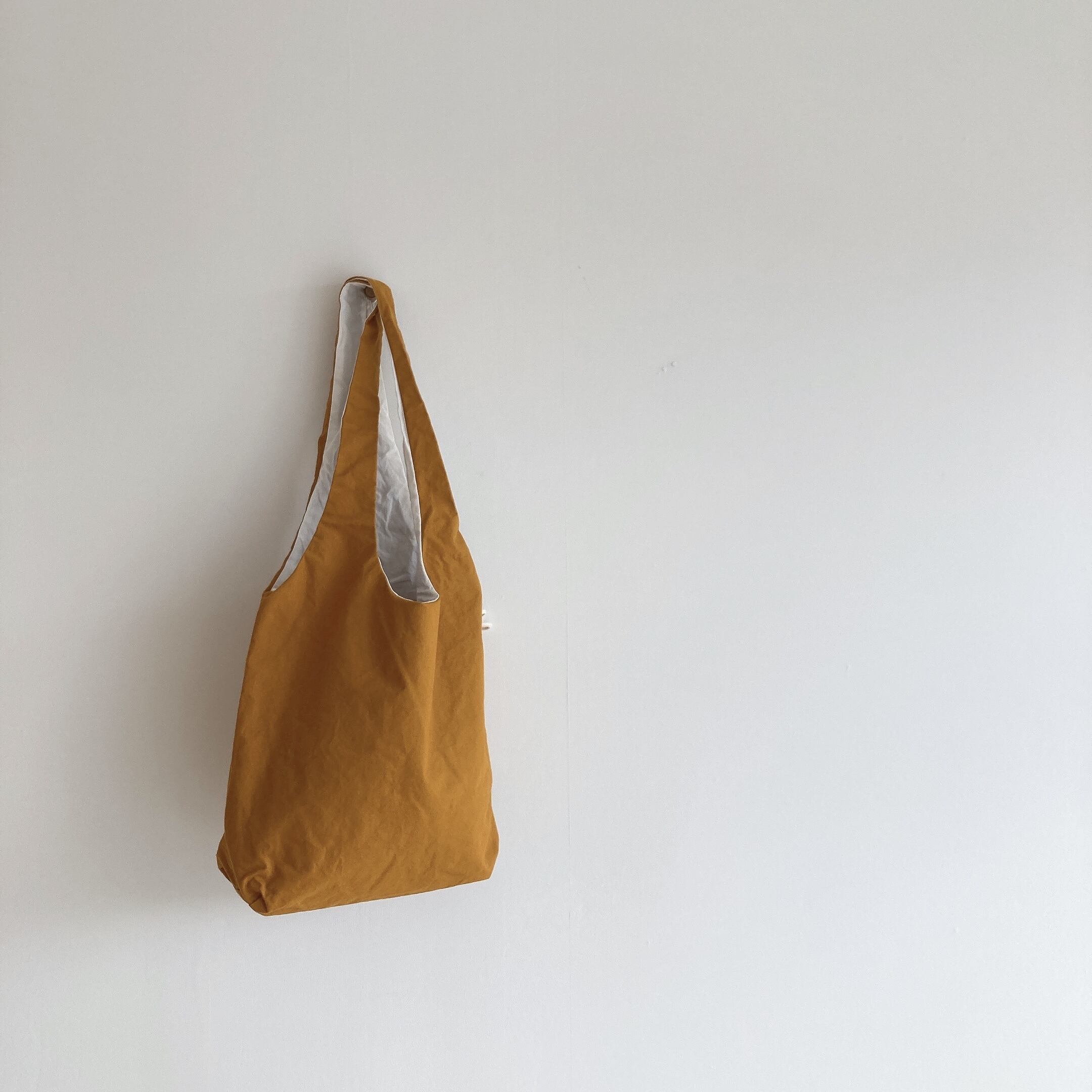 サクラコートの表地馬布(コットン100%)を使用したタフな生地に、袋縫いの丁寧な仕上がりのバッグです。家での洗濯も可能です。