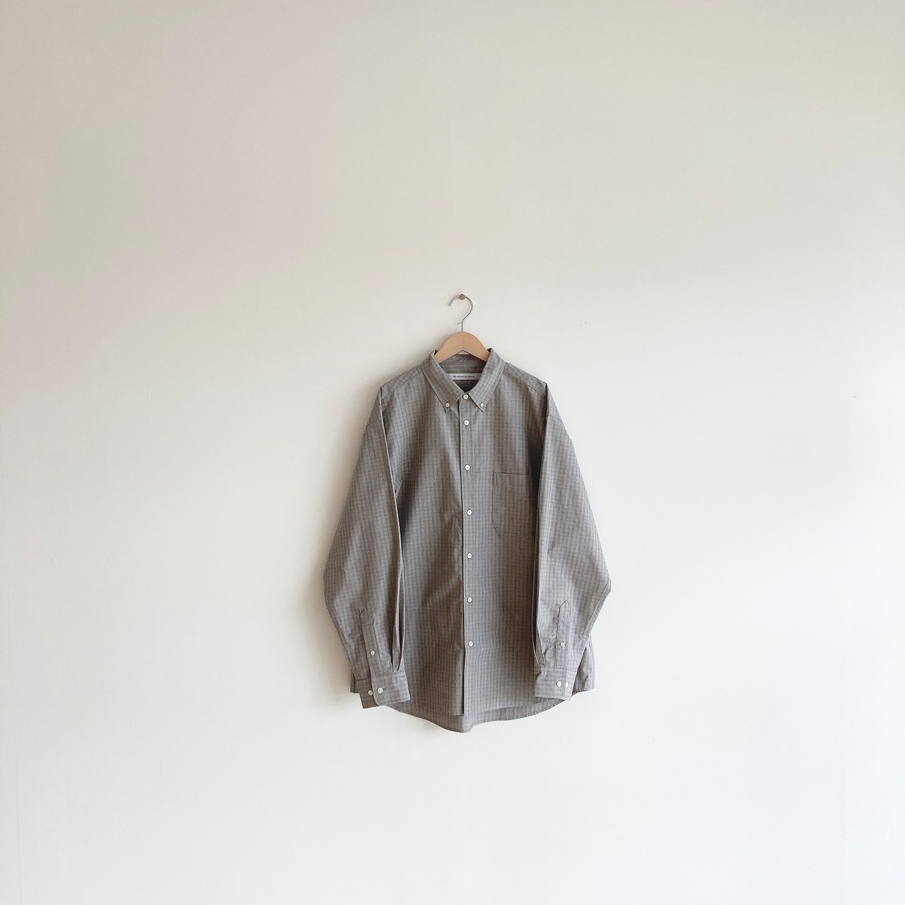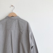 パリッとした張り感のあるコットン生地のサックスグレーなチェック柄をドレスシャツ工場で縫製した上品なシャツ。