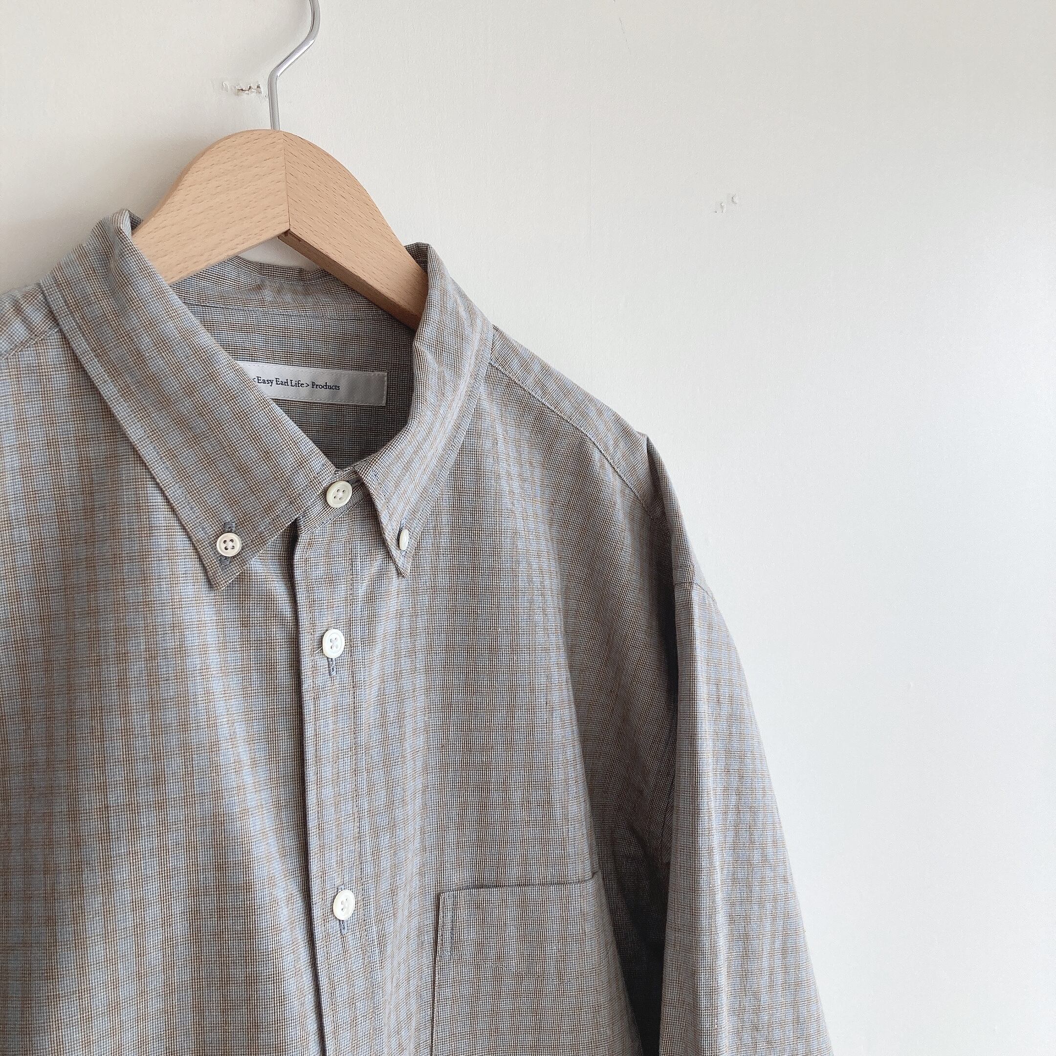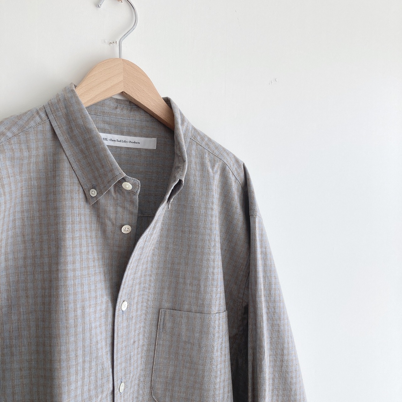 特徴として、ボタンダウンシャツの顔となる襟は程よい台襟の高さと、第一ボタンを外した時の綺麗なロールする襟元。身幅はEEL Productsらしくゆったりとしたシルエットに仕上がっています。