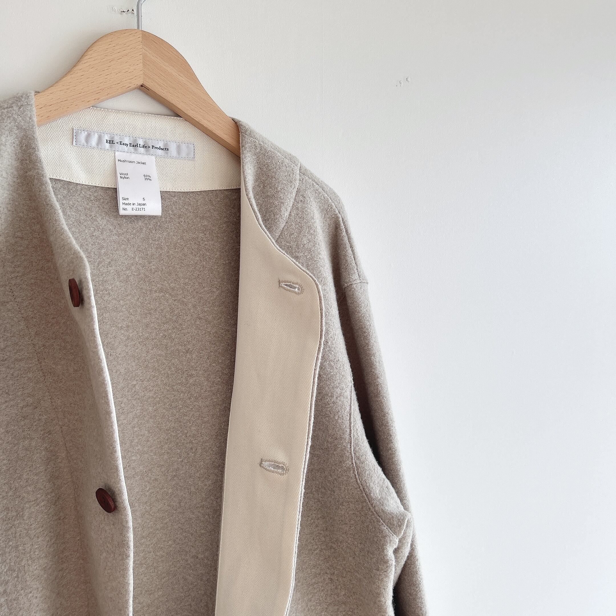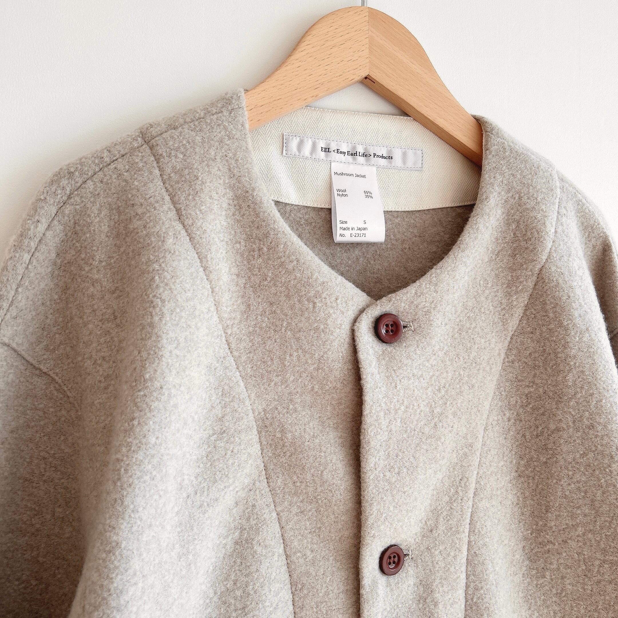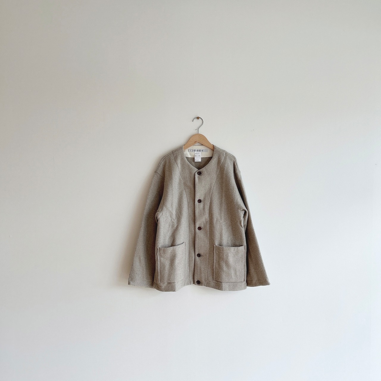ノーカラージャケットとカーディガンを融合したマッシュルームジャケット。
