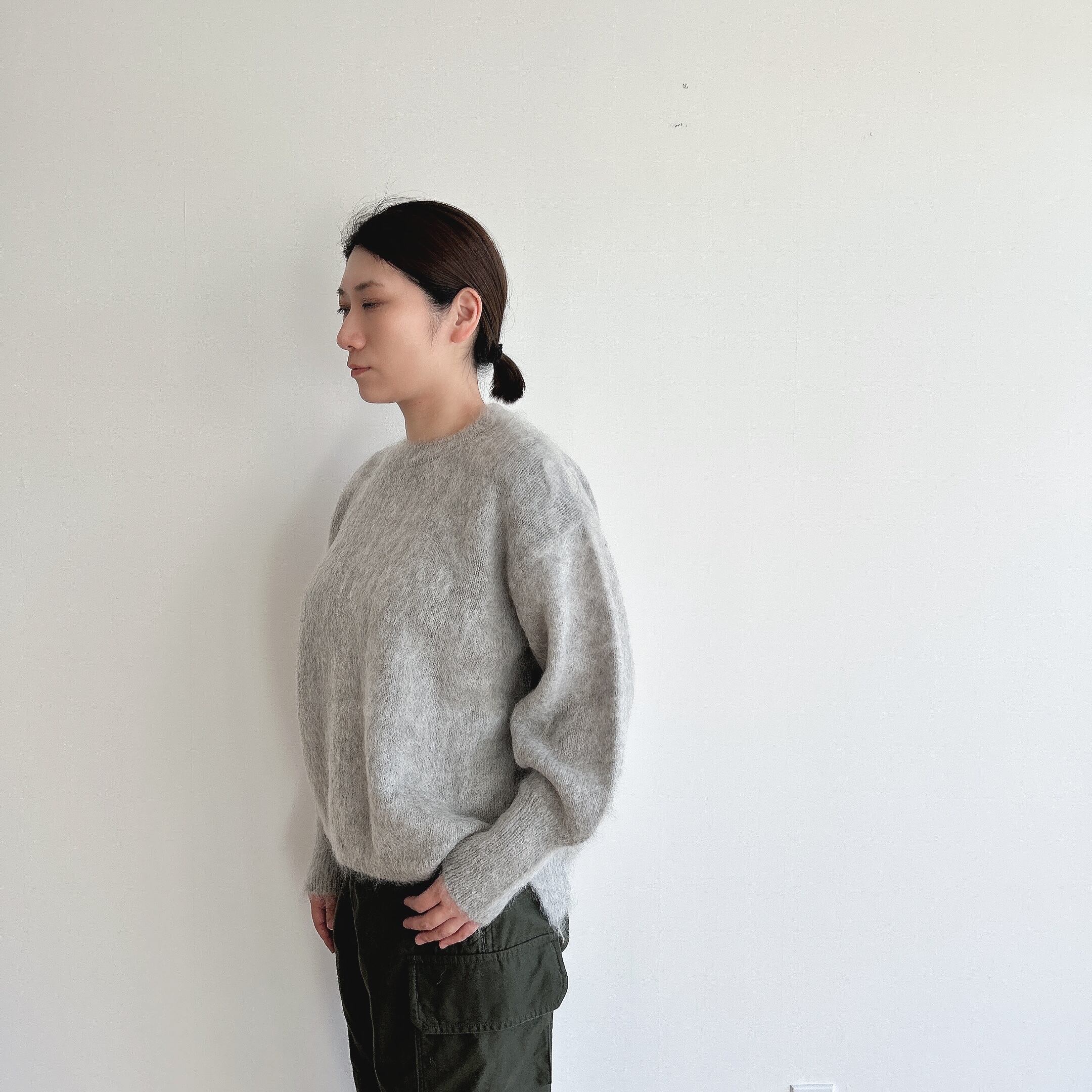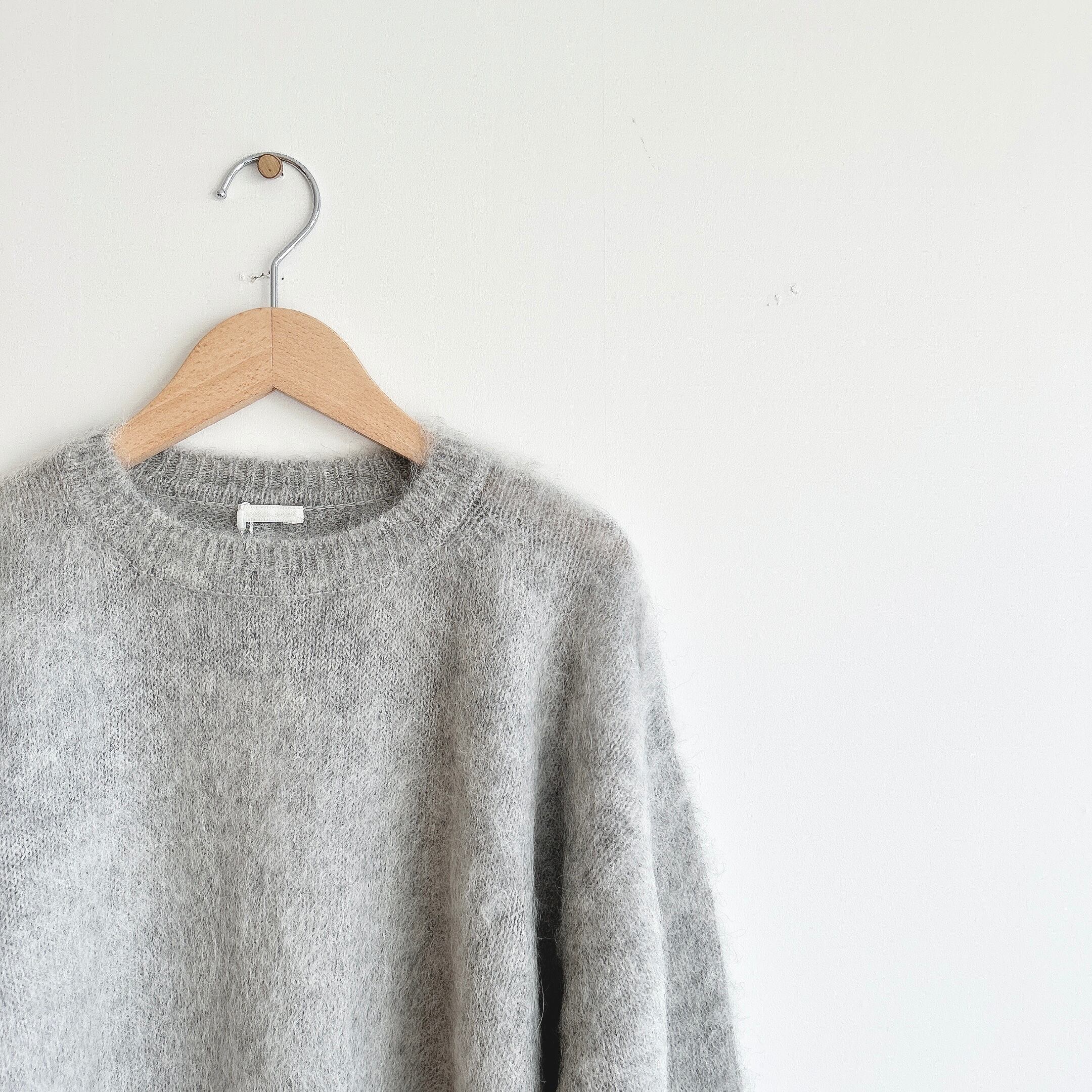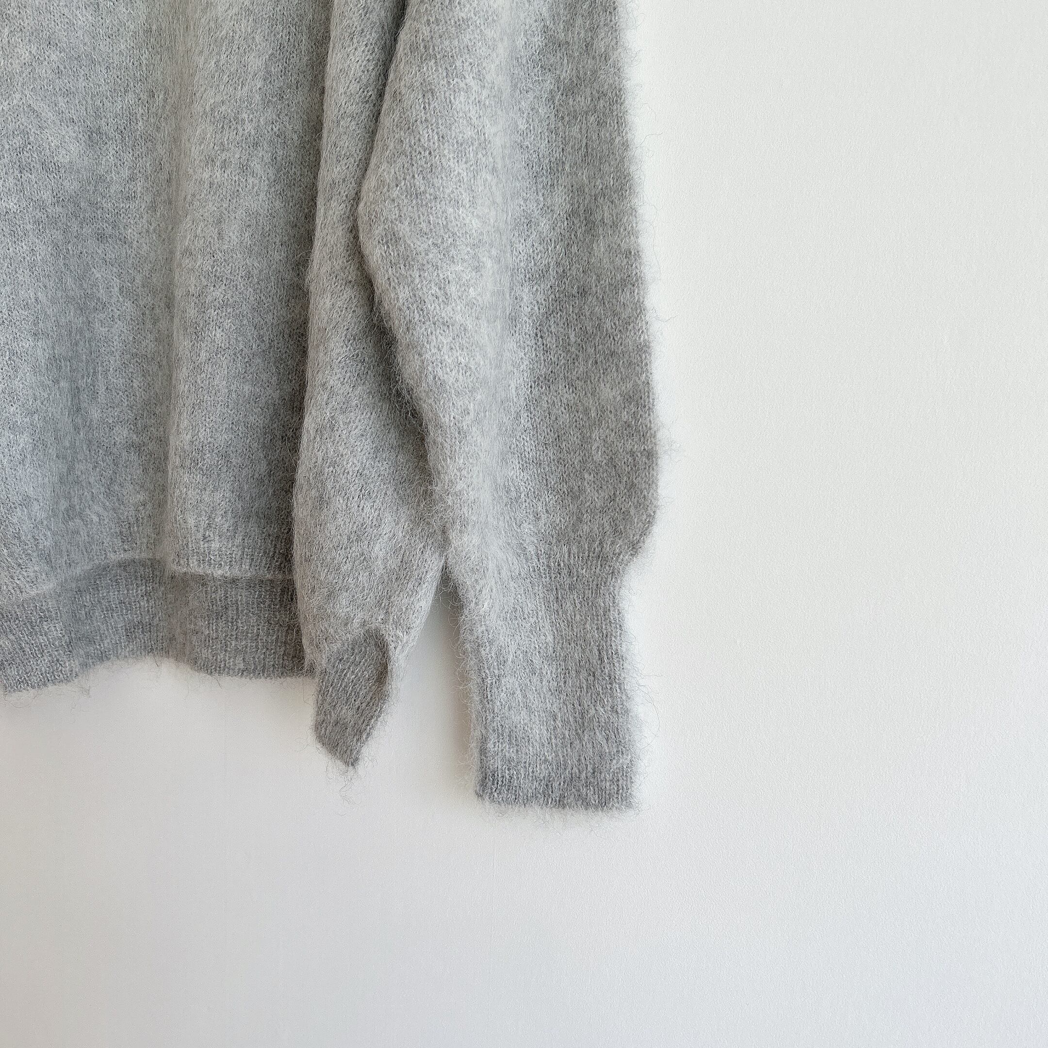 編み上がったニットウェアを1枚ずつ起毛職人がチーゼル(植物)の実の起毛機で加工をして仕上げているので、一着に対してたくさんの職人の方が関わっているニットプルオーバーです。