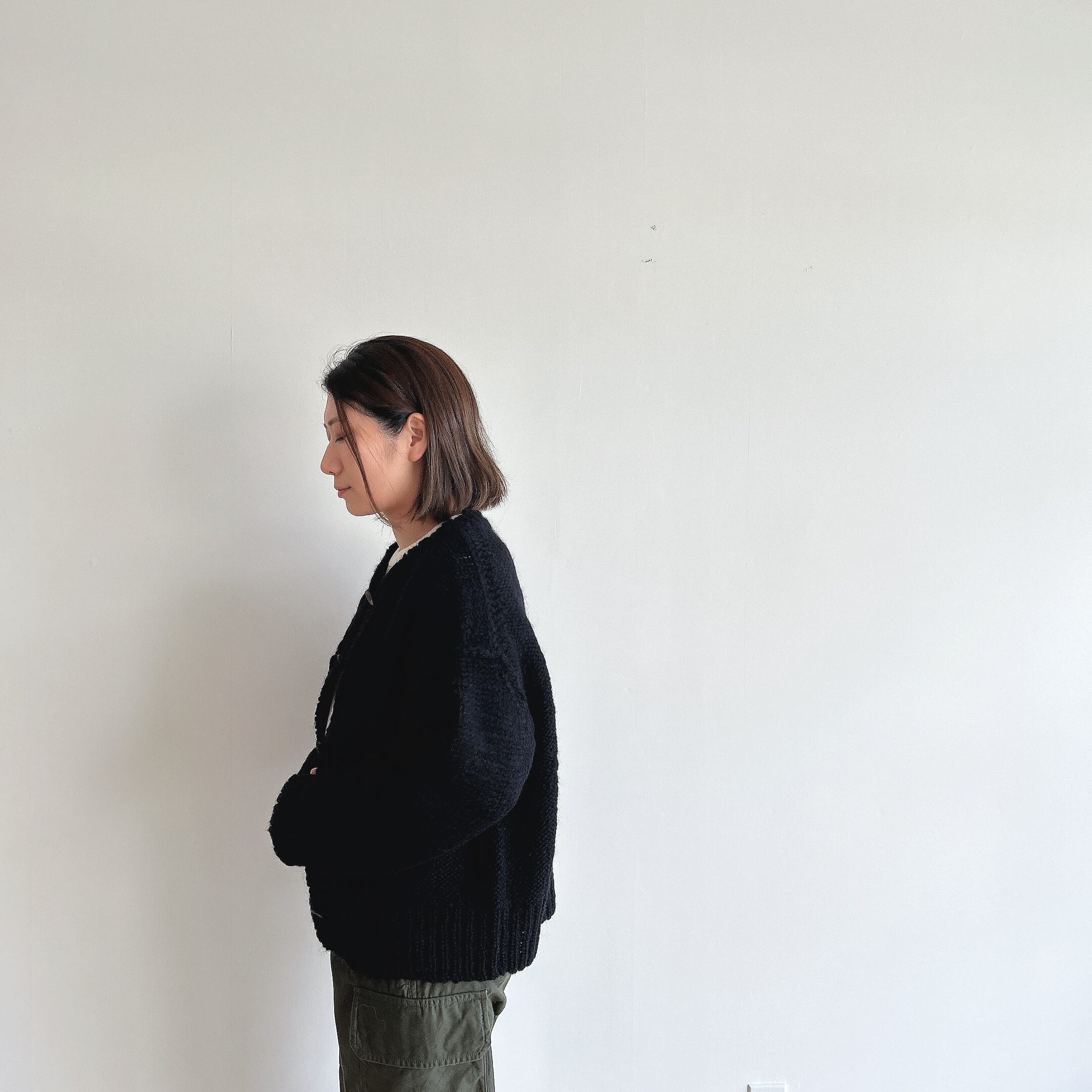 コムアーチのハンドフレーム(手横編み機)で編まれた手編みのような温かみのあるカーディガン。