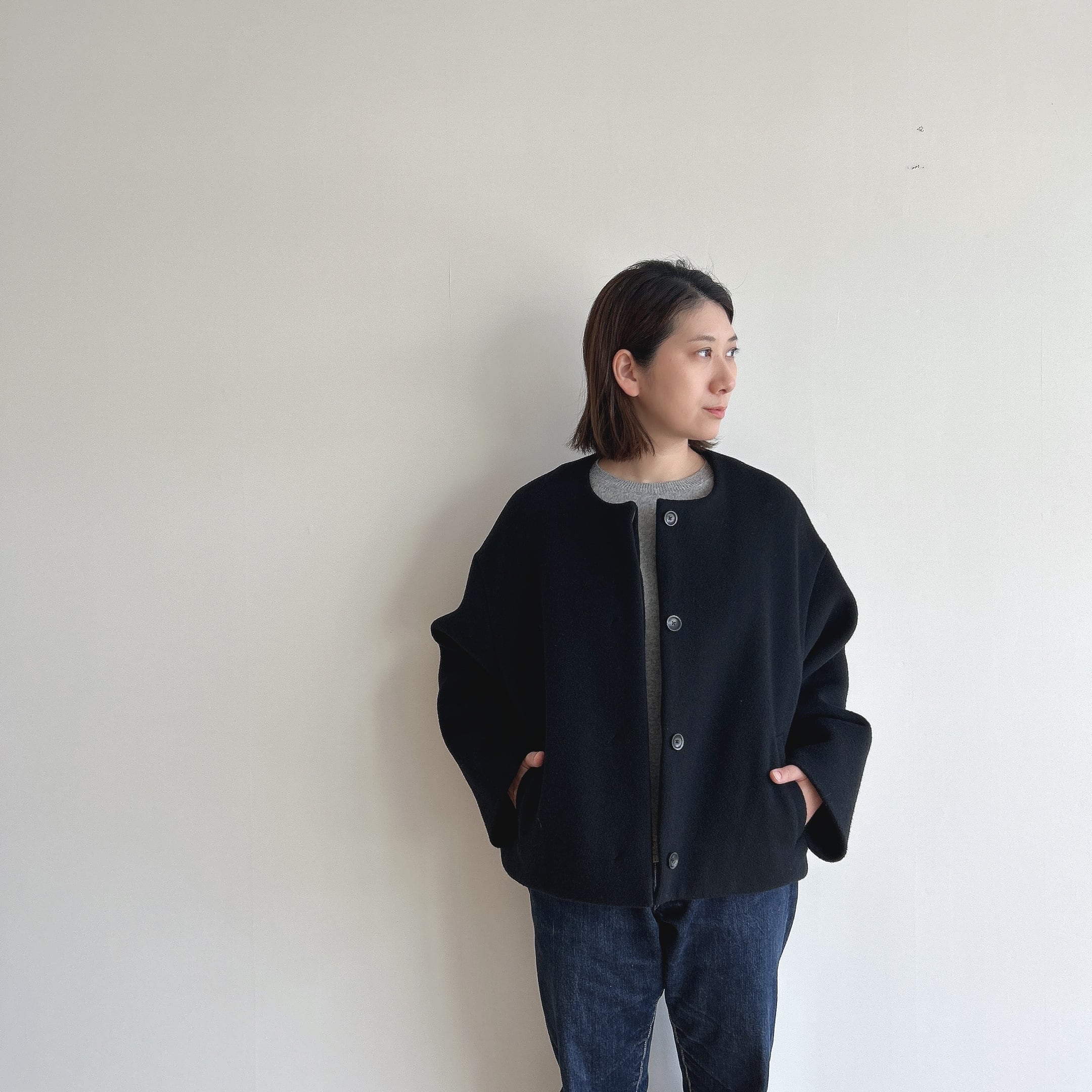comm.arch.women'sでは近年秋冬の定番とも呼べるノーカラージャケットですね。