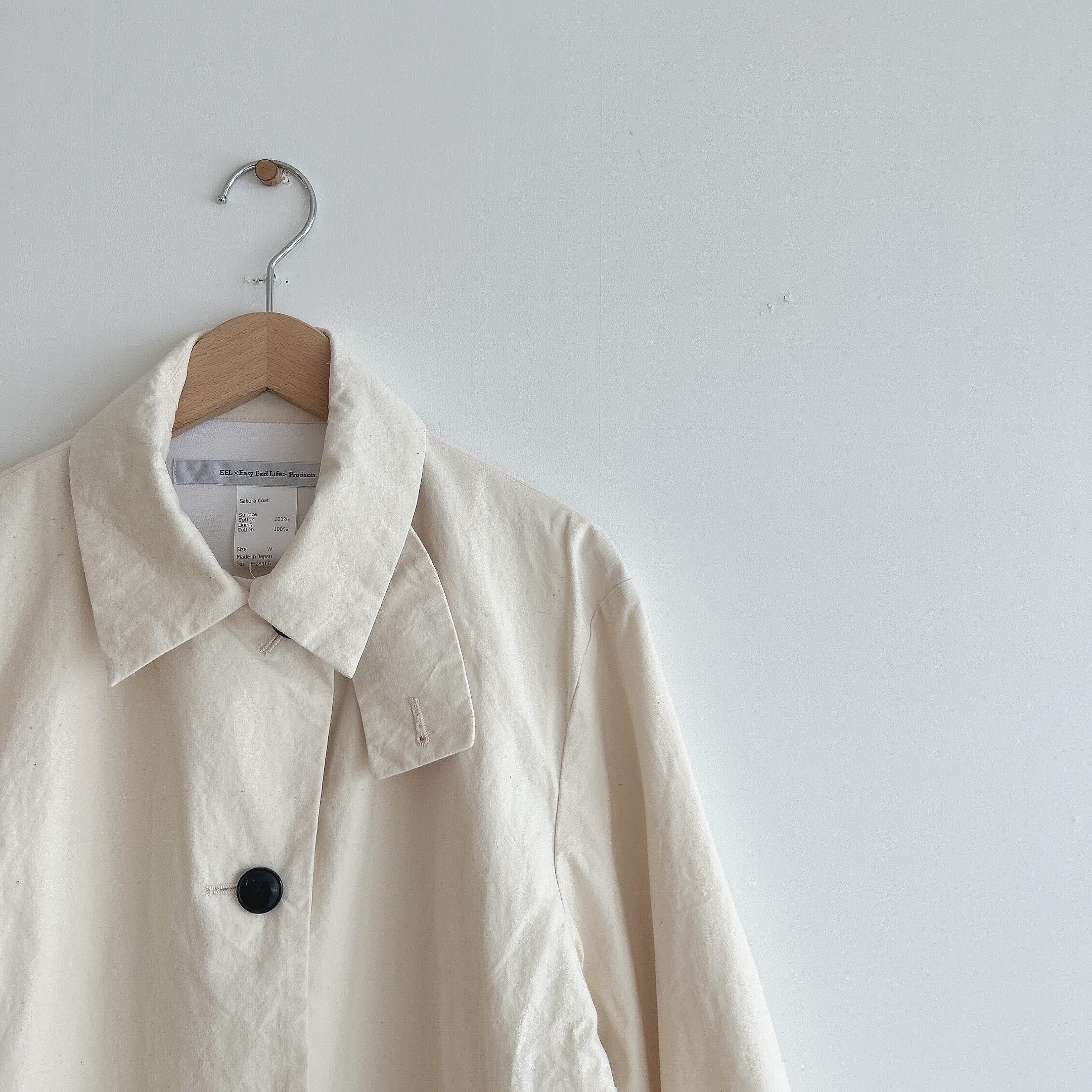 サクラコートの初期に出ていたNaturalが今季復活しました。生成りに黒のボタンがまた良いですね!