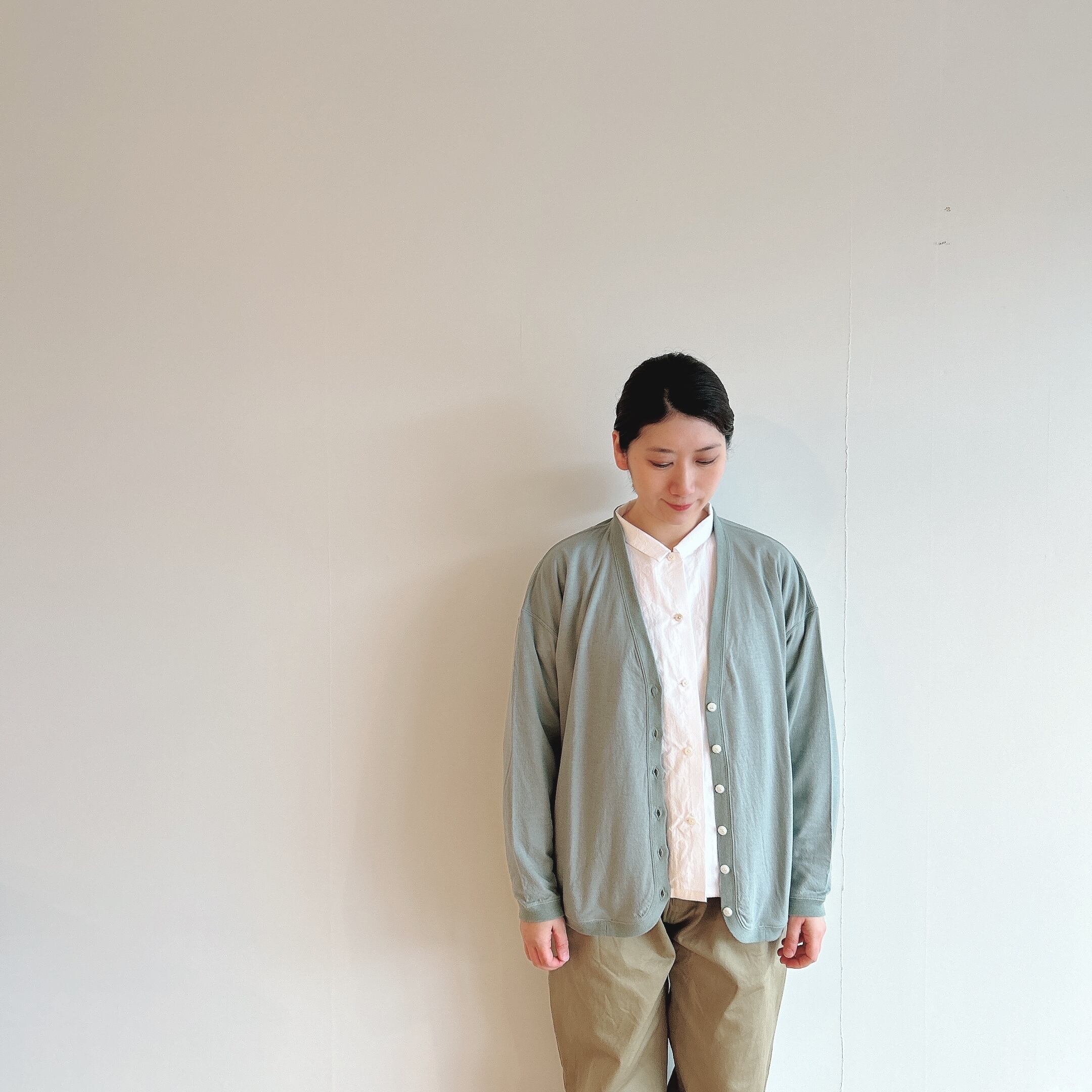ゆったりとしたサイズ感に、シンプルで使いやすく触っていただくと生地の上質さが分かる1枚です。