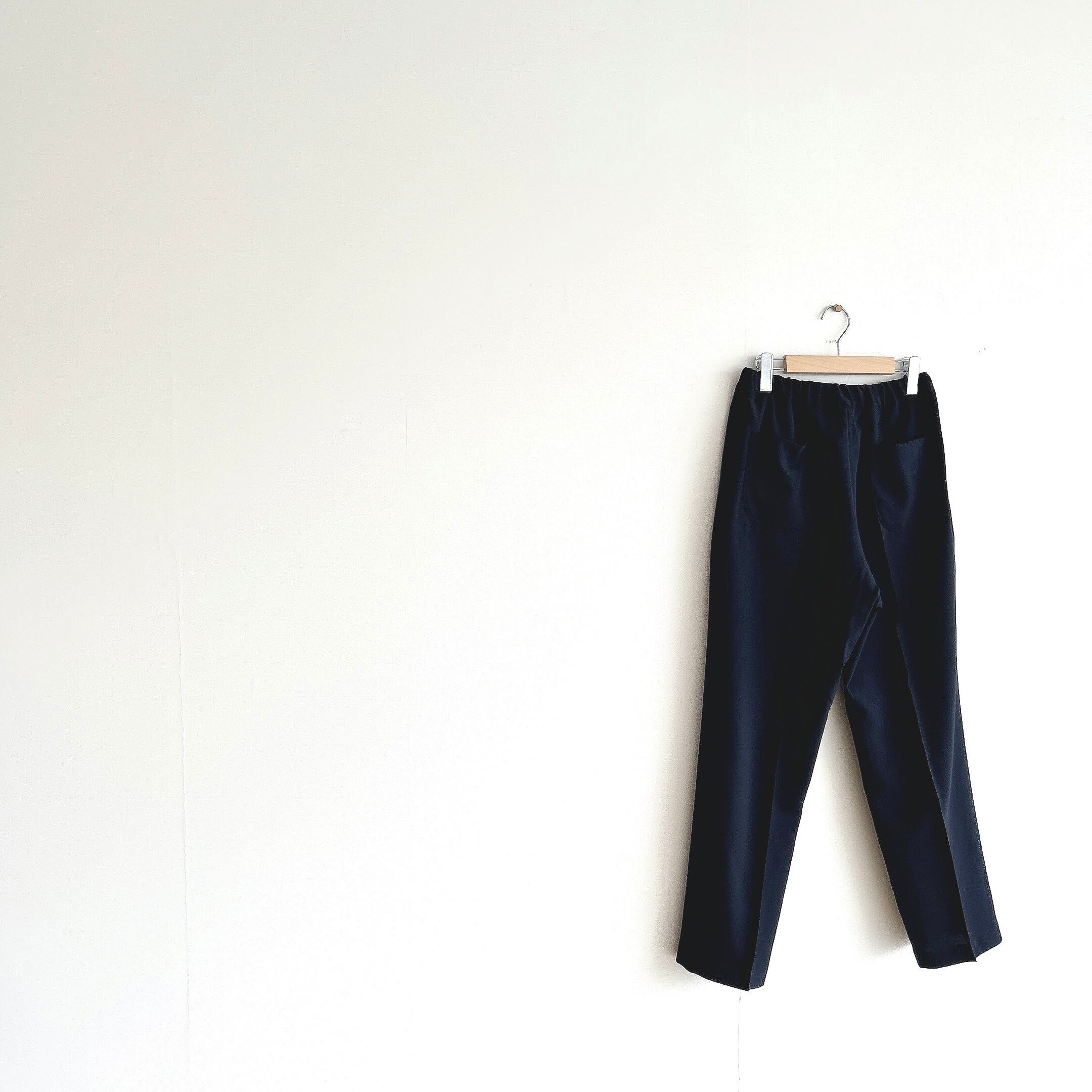 ポリエステルでありながら、ウールトロピカル調の肌触りのイージースラックス。