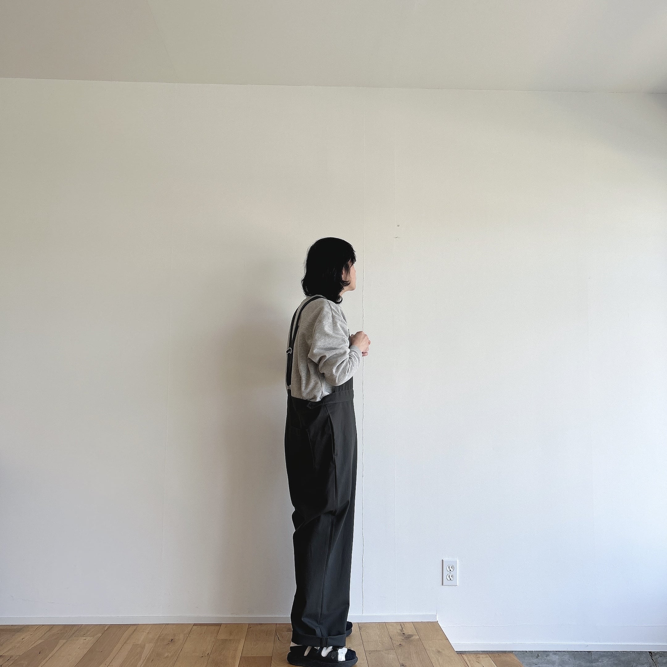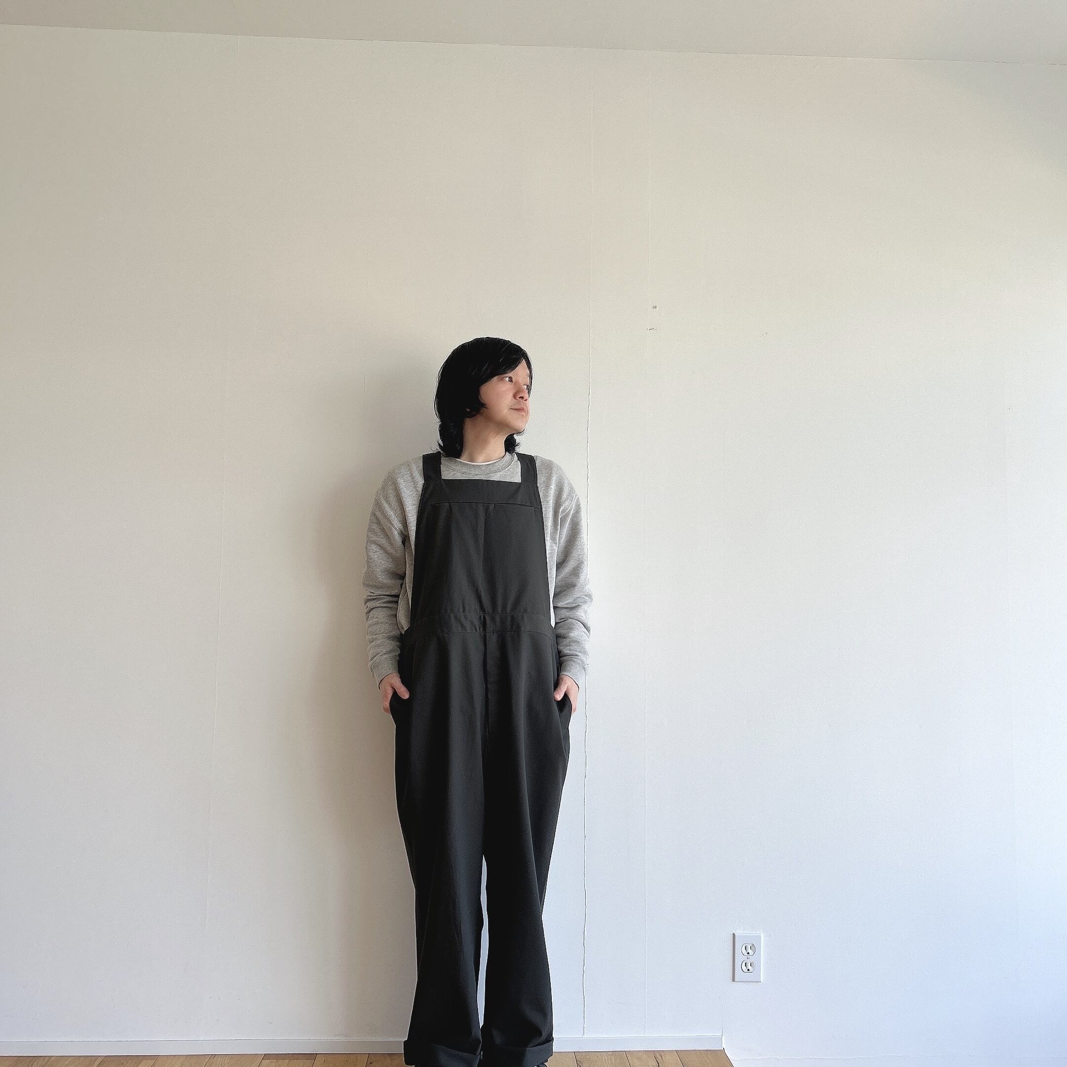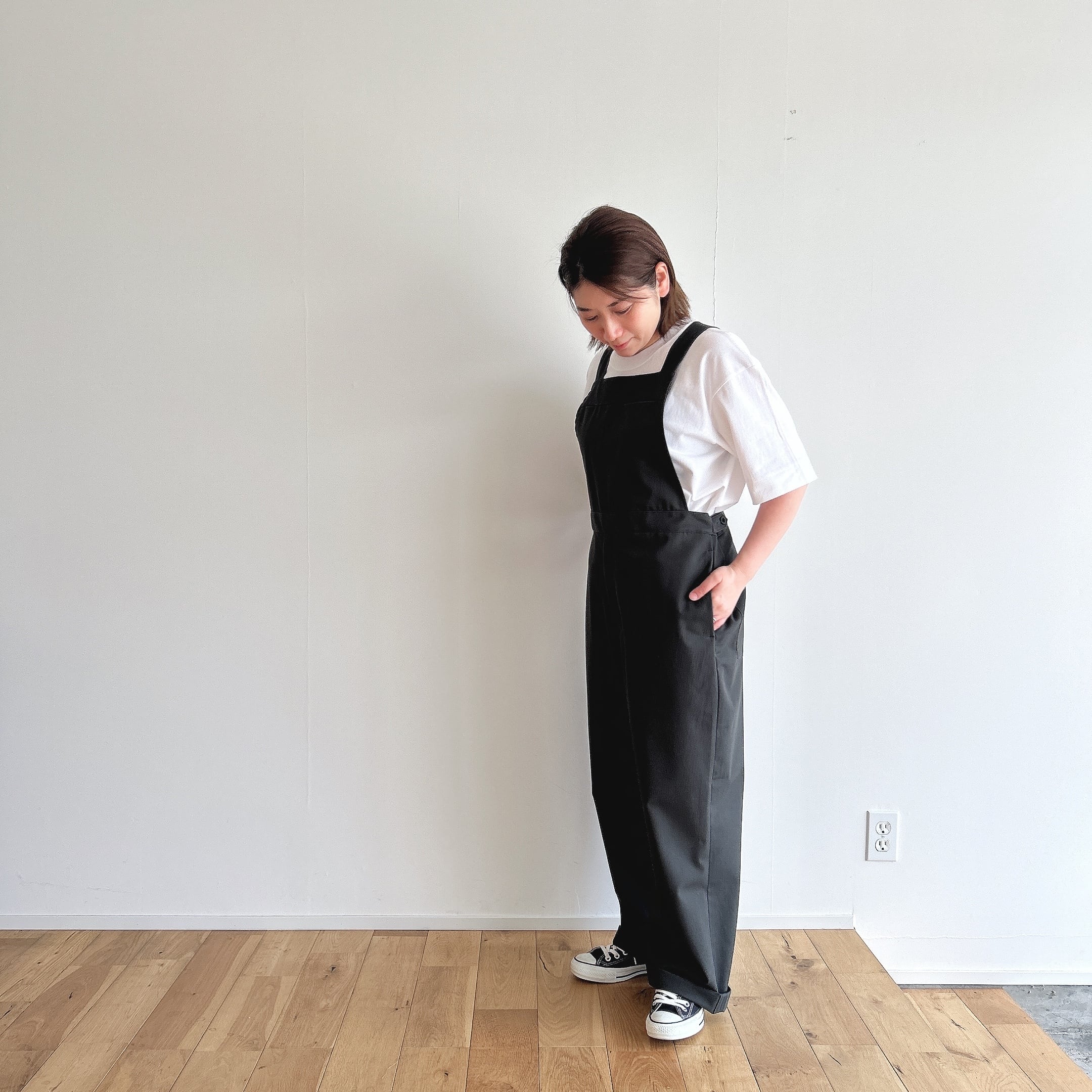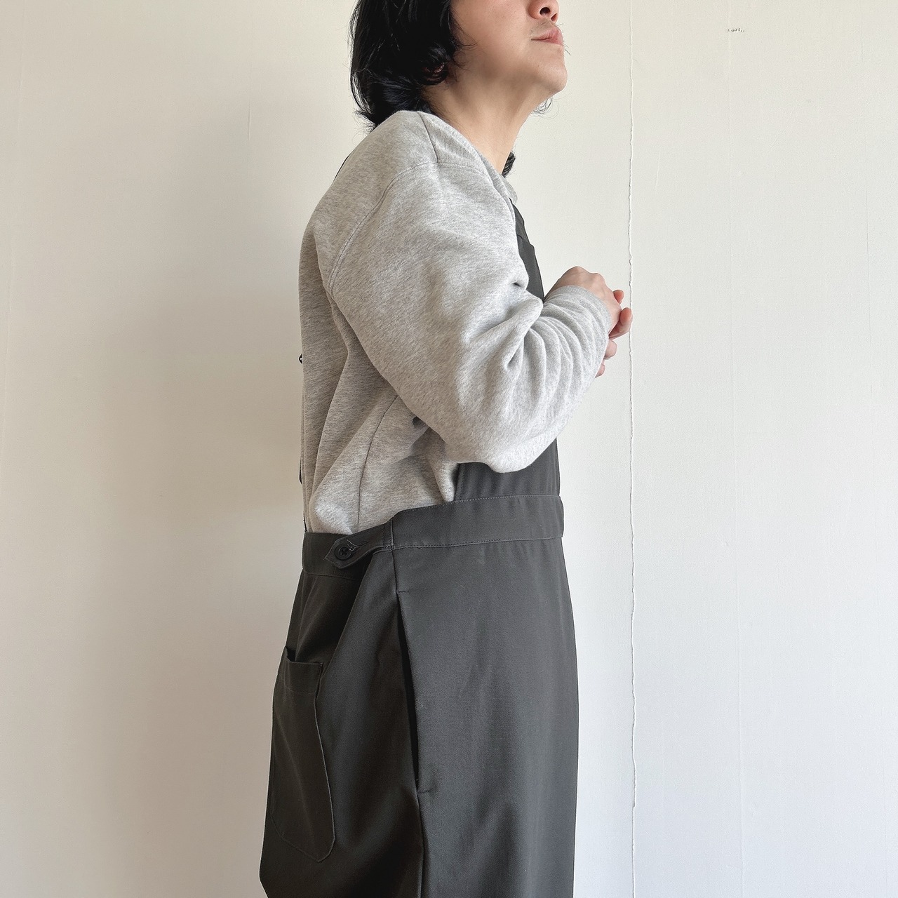 ウエストはゆったりと着用出来ますが、サイドボタンによって調整も出来ますので幅広く着ていただけるかと思います。