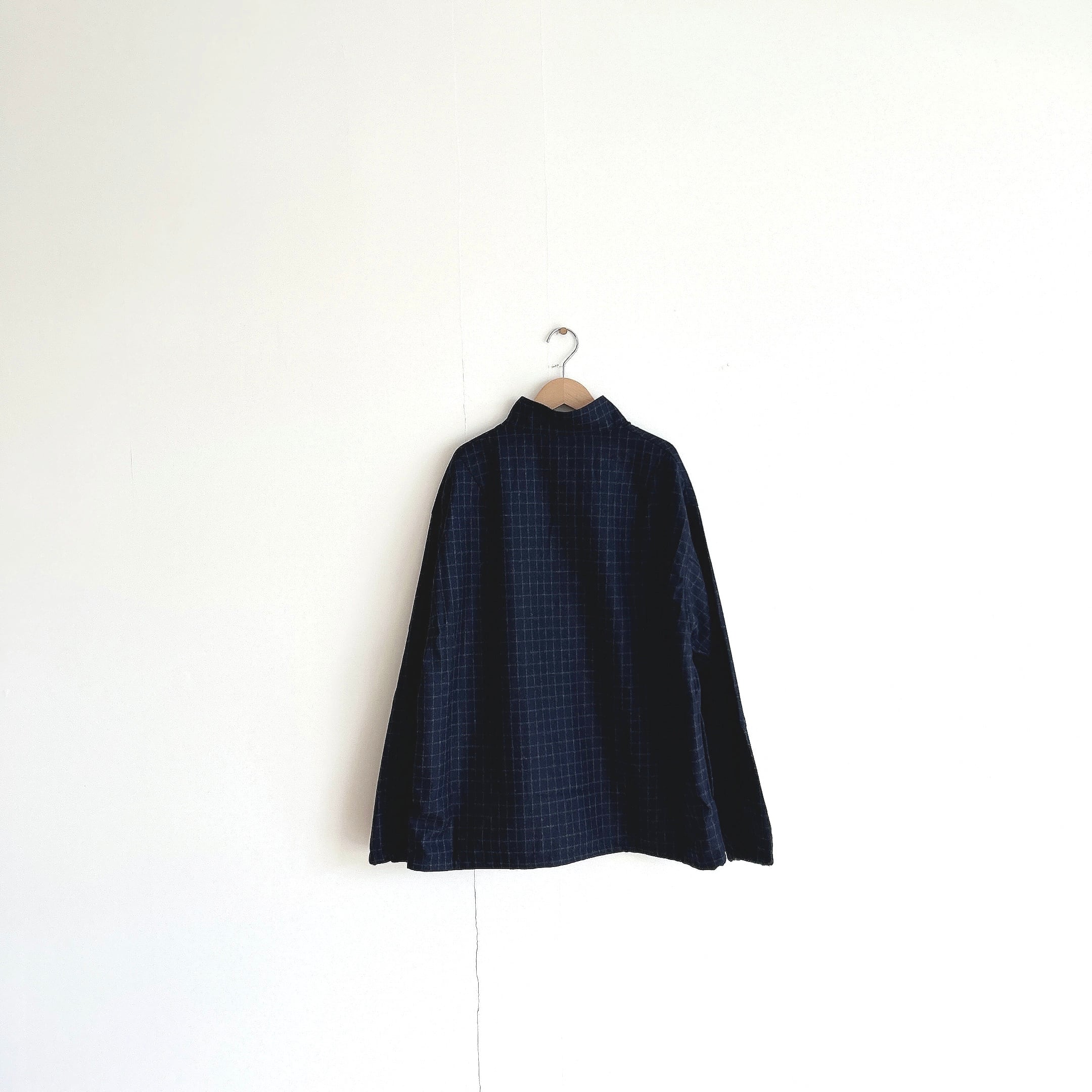 スタンドの襟裏にはコーデュロイ生地を付けているので、折って着ていだくとまた雰囲気が変わりますね。