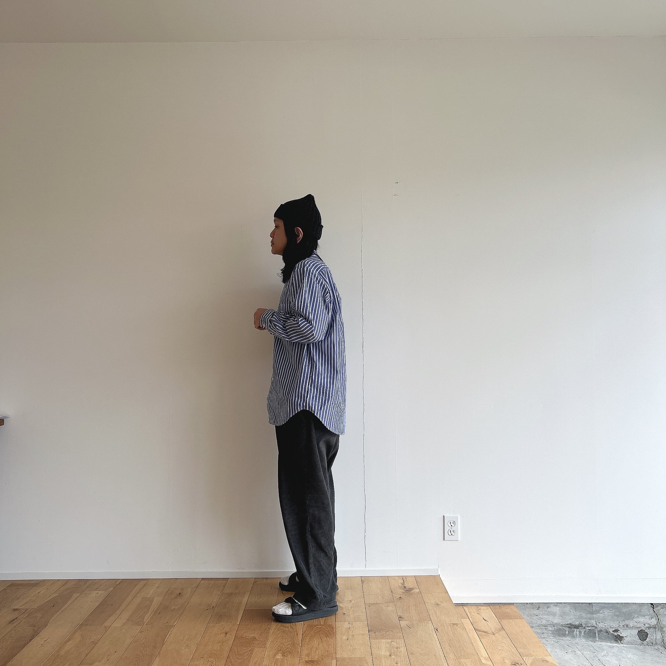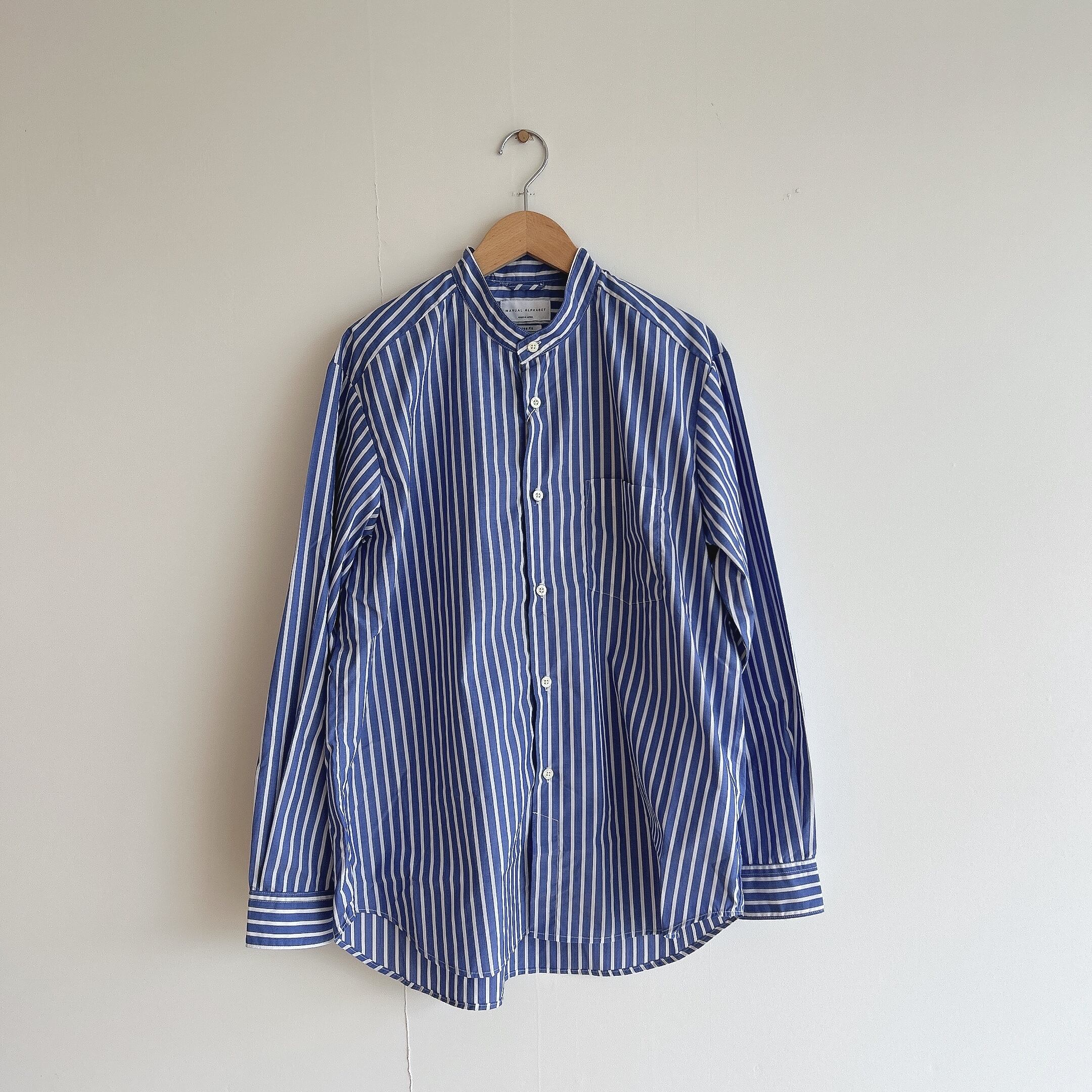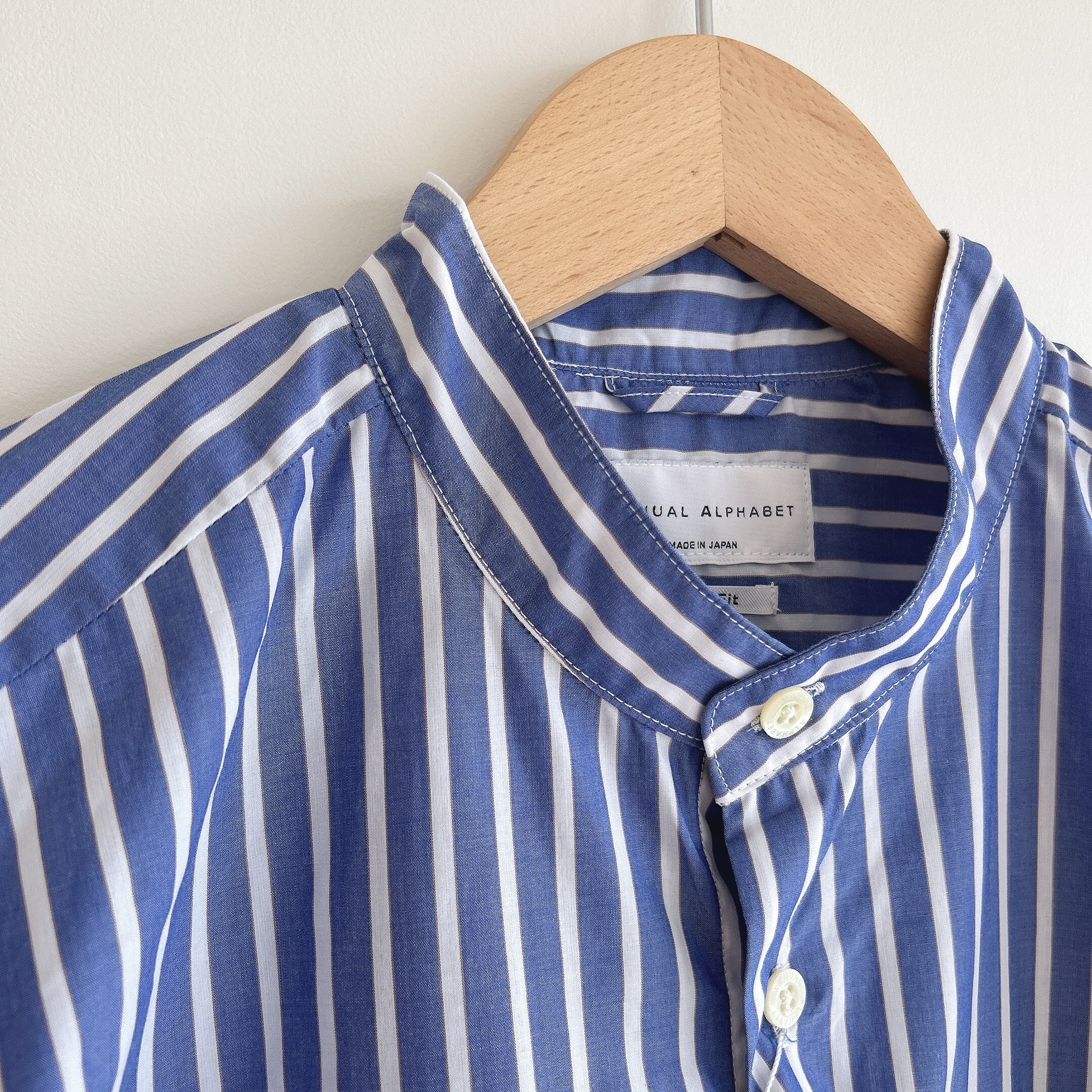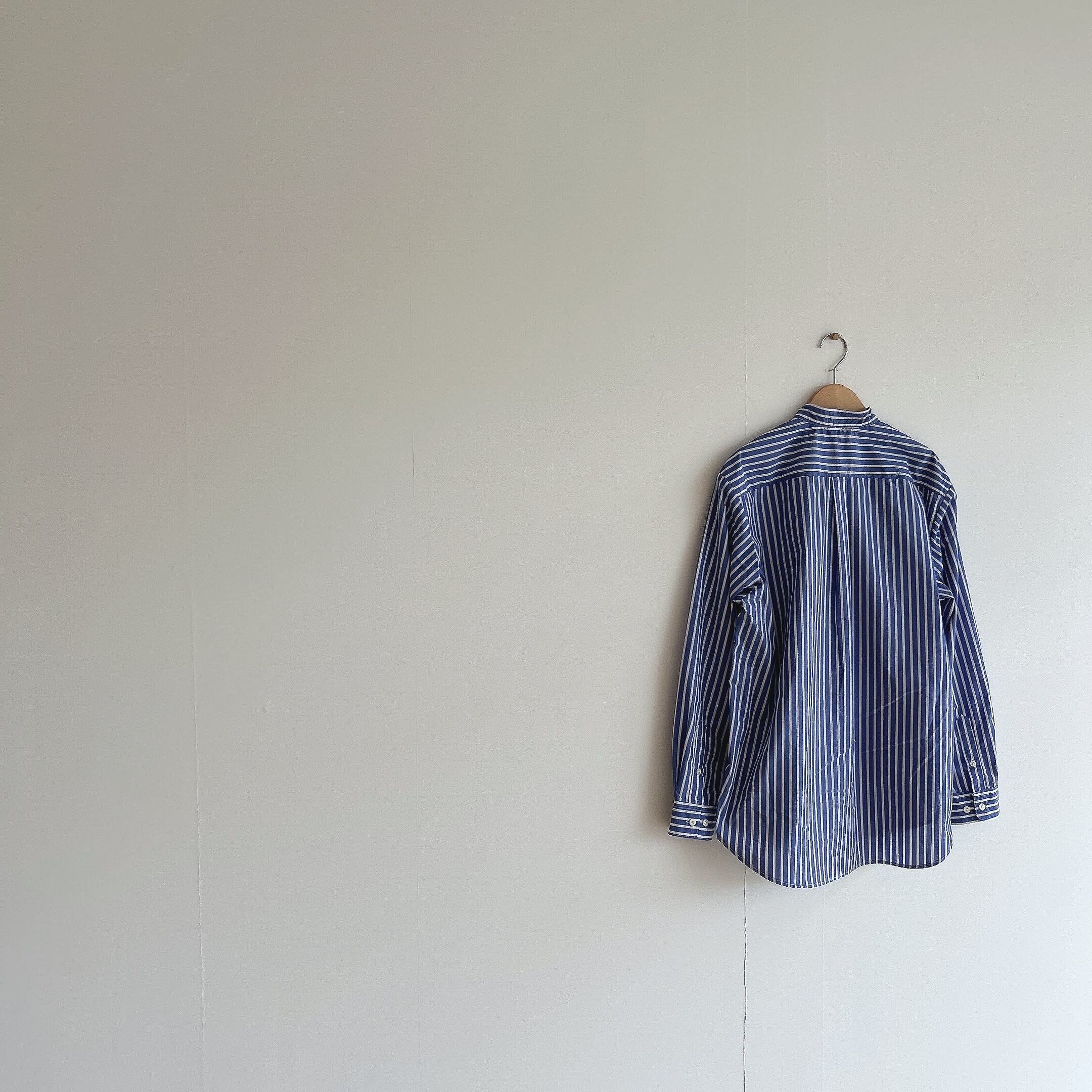 T/CタイプライターストライプのLOOSE FITバンドカラーシャツ。