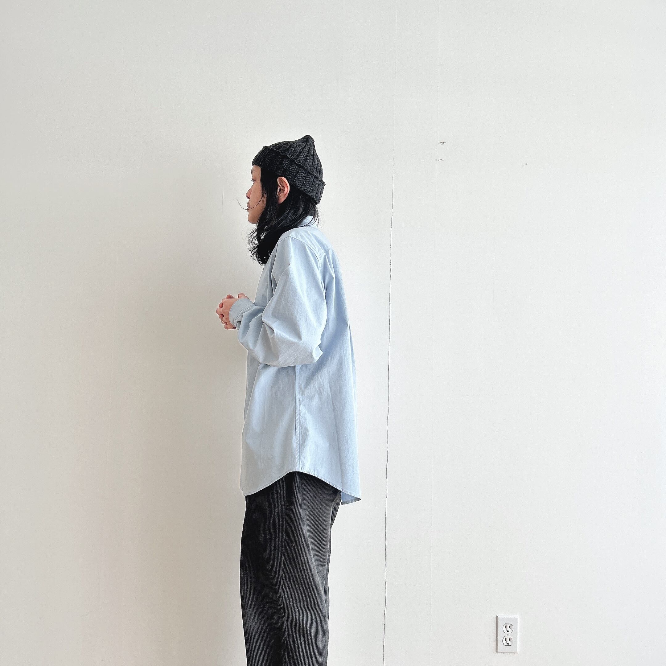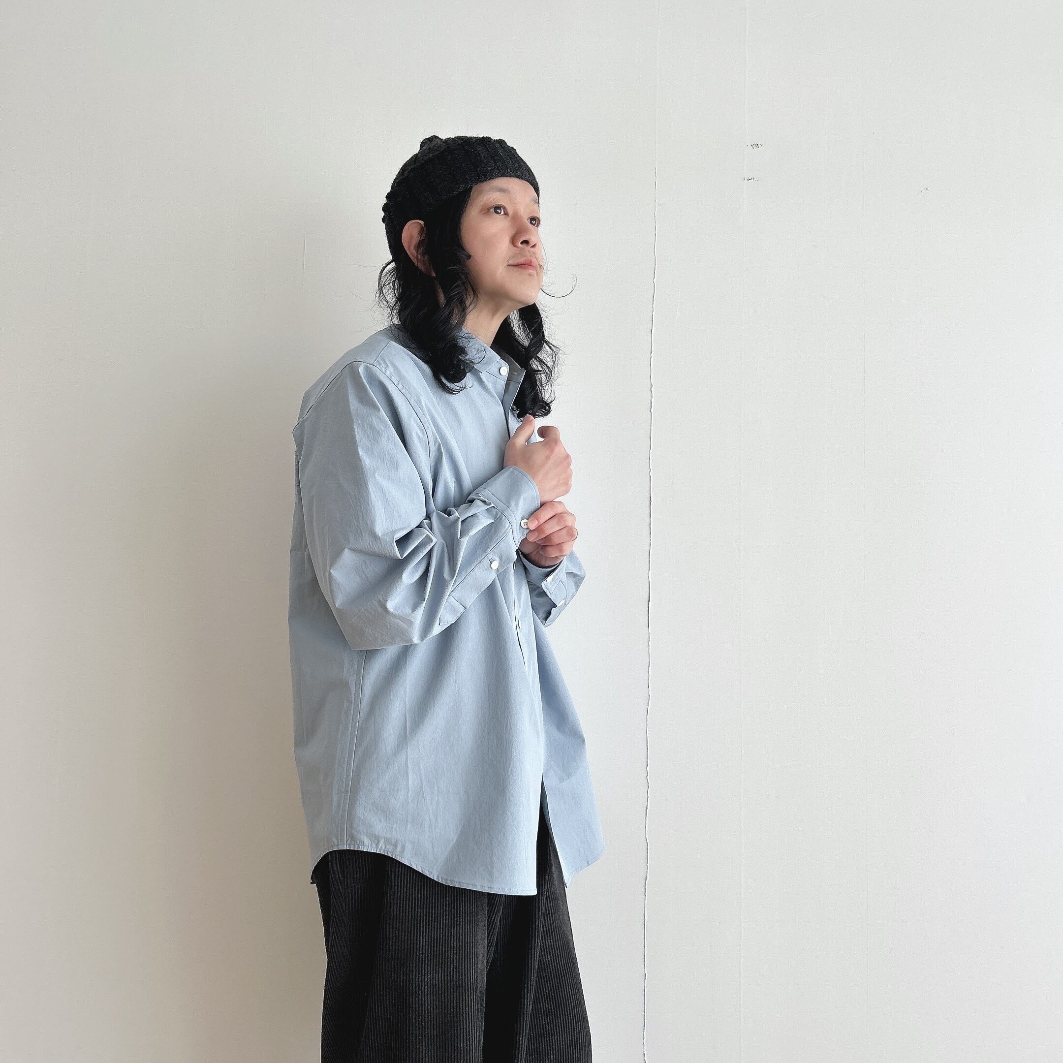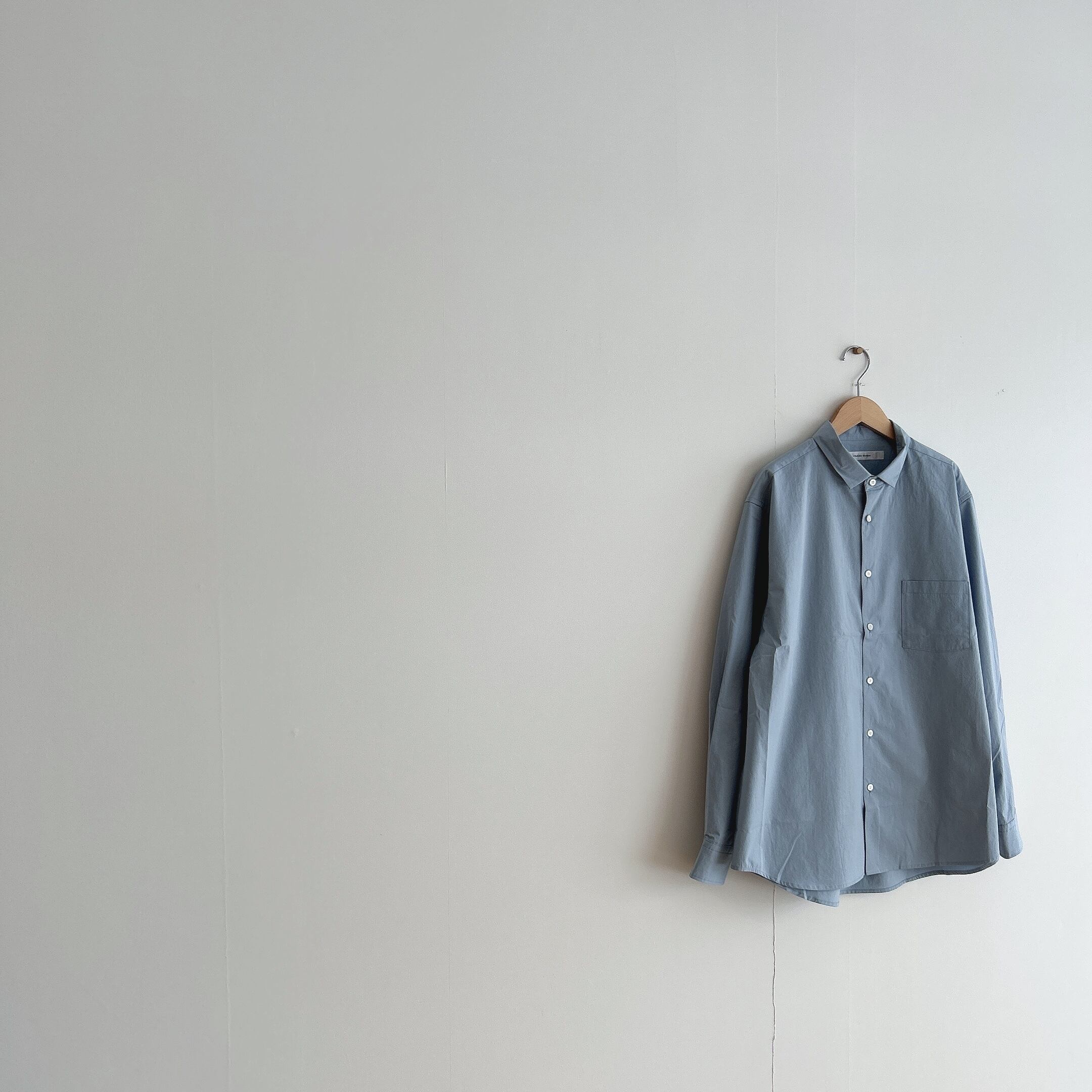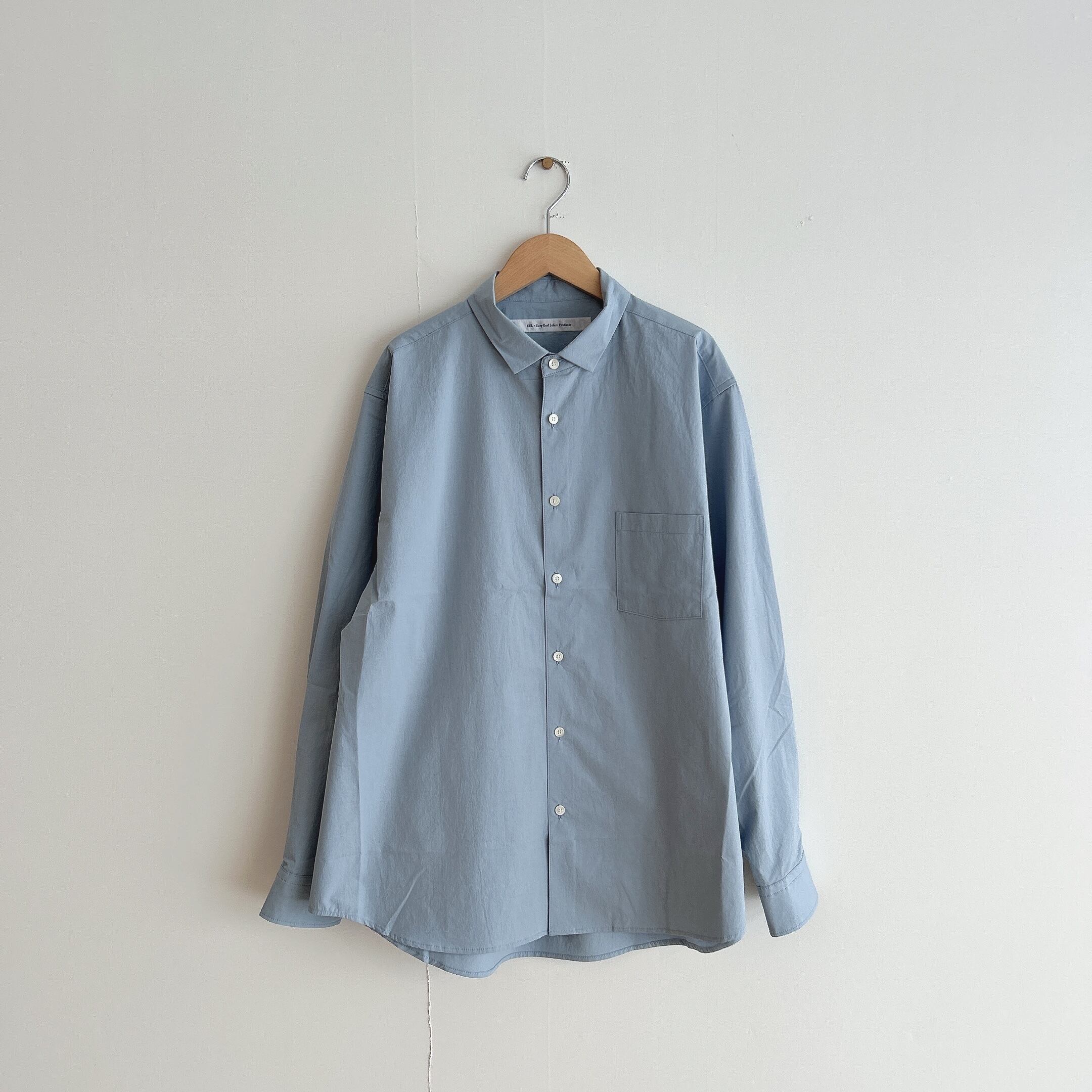 小ぶりなレギュラーカラーと少しゆったりとリラックスして着れる身幅と袖幅。